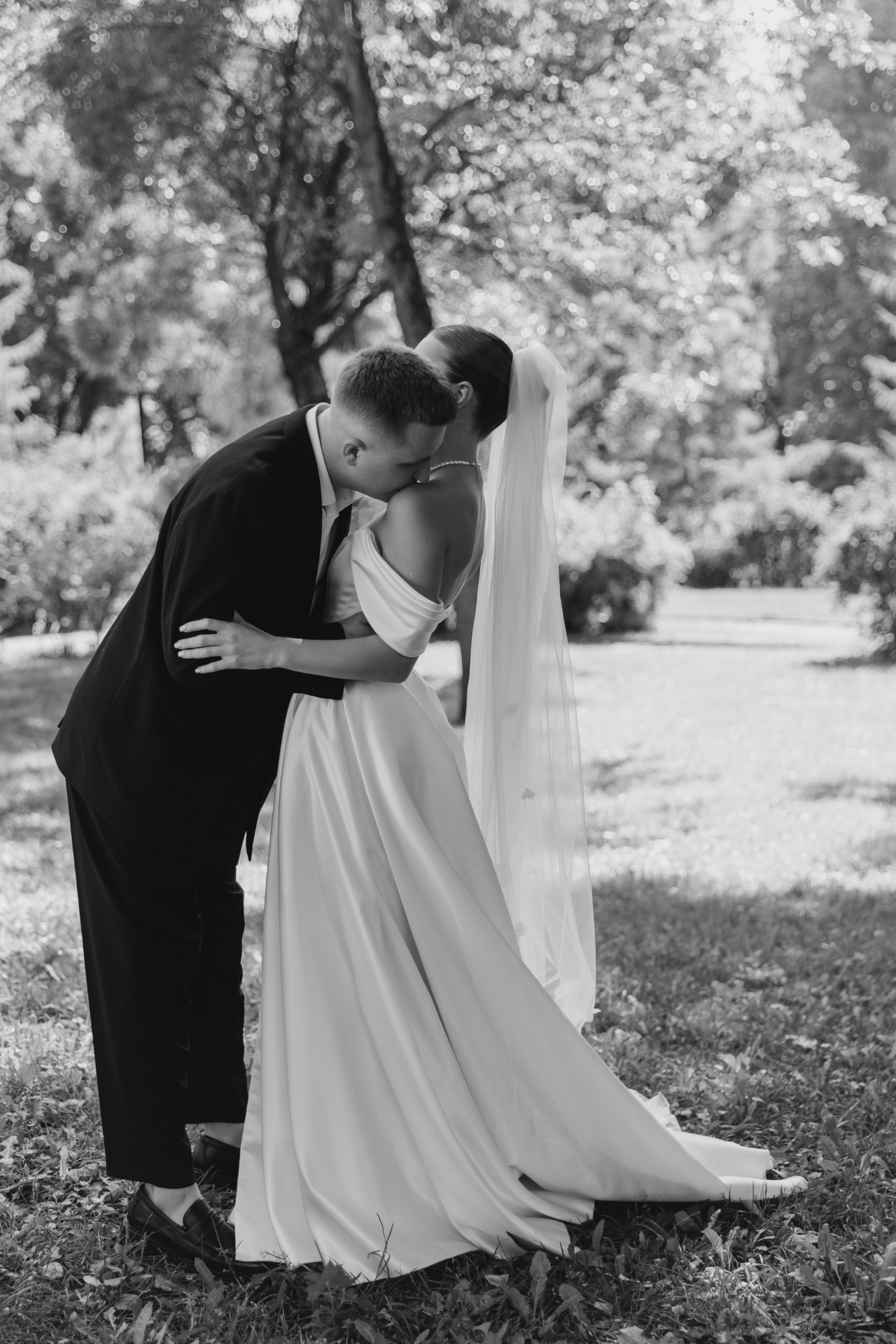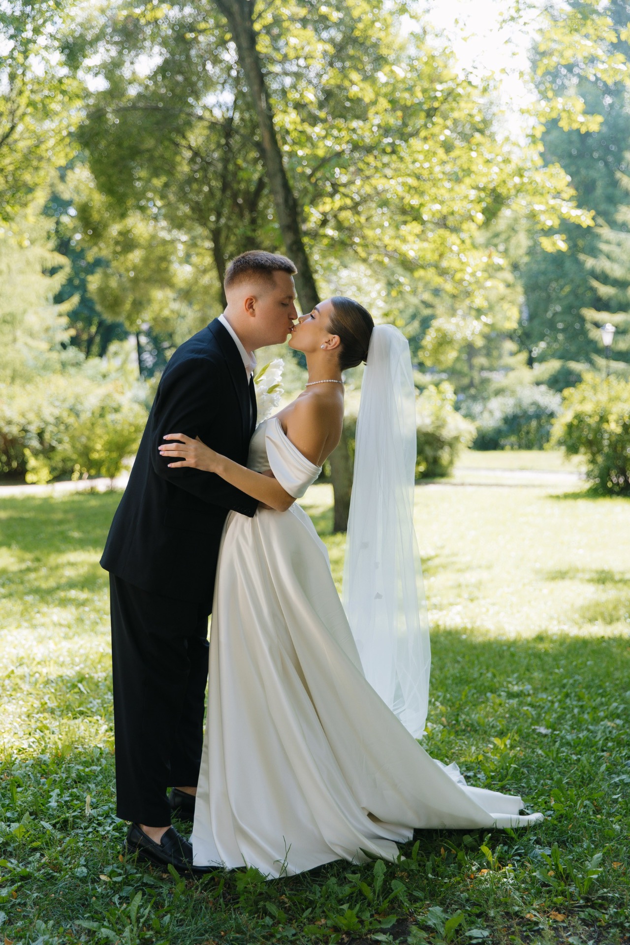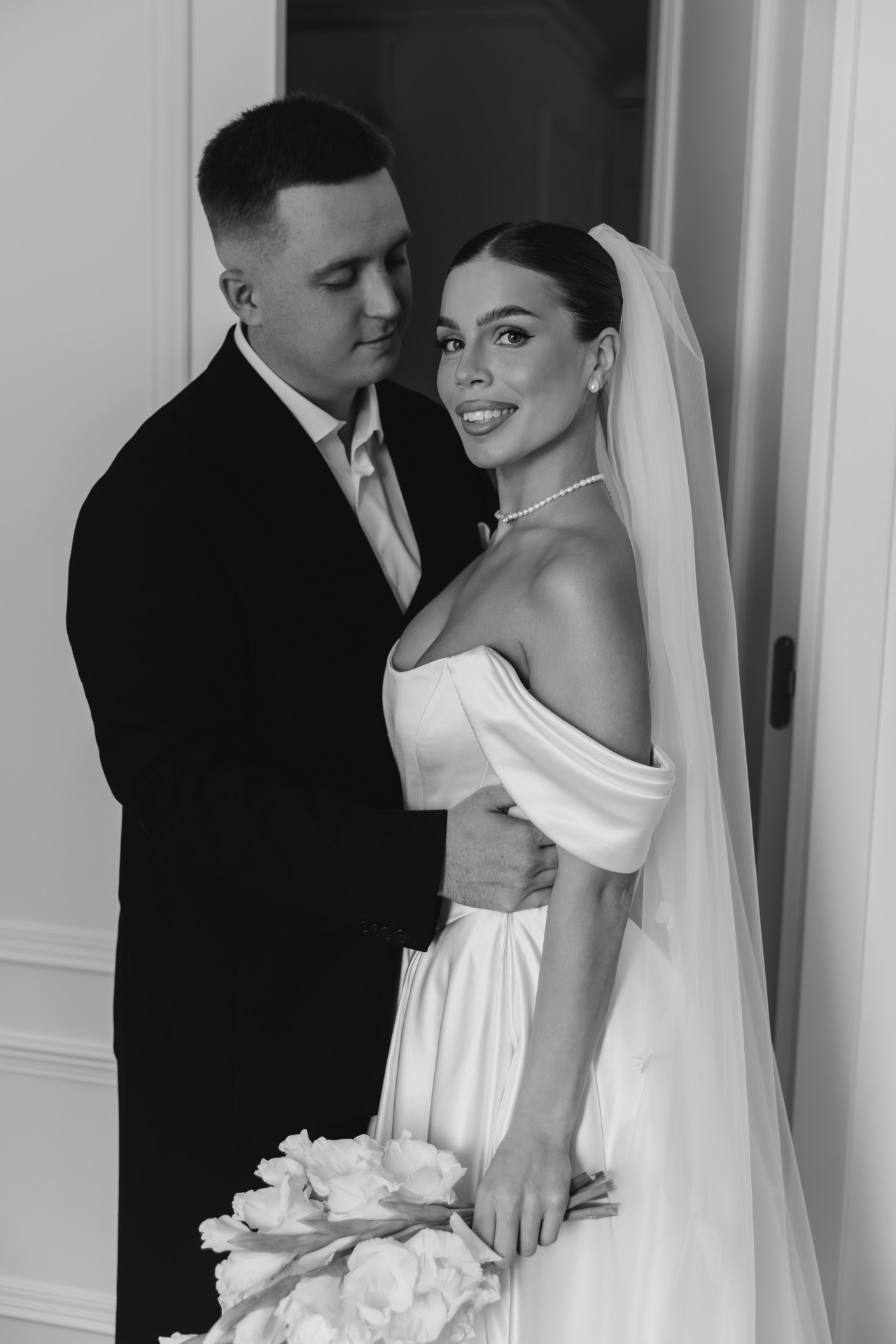 Над образами нам долго думать не пришлось. Моей неизменной иконой всегда была свадьба родителей: белое пышное платье с акцентным корсетом у мамы и строгий чёрный костюм у папы. Именно такие образы я с детства представляла и для своей собственной свадьбы.