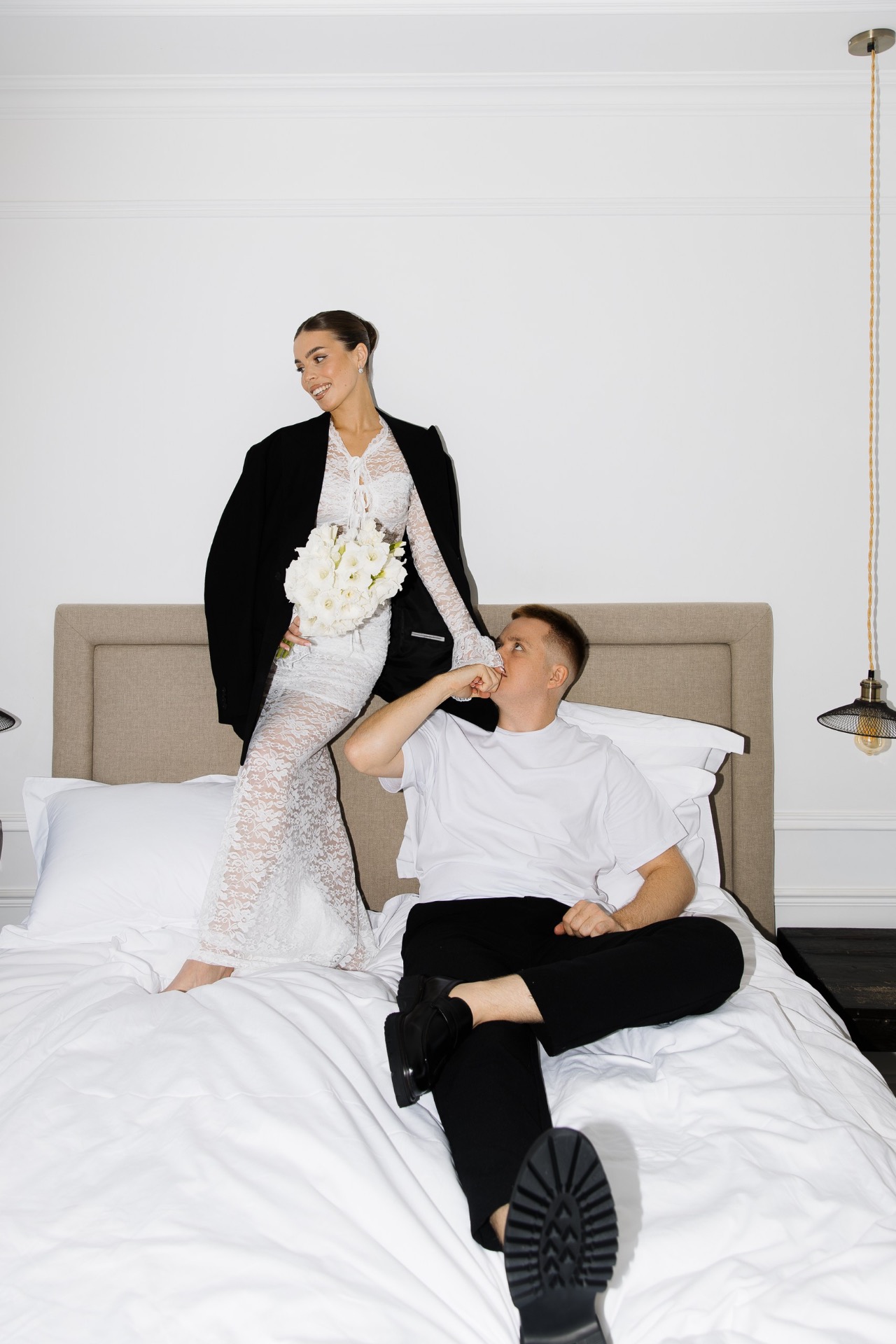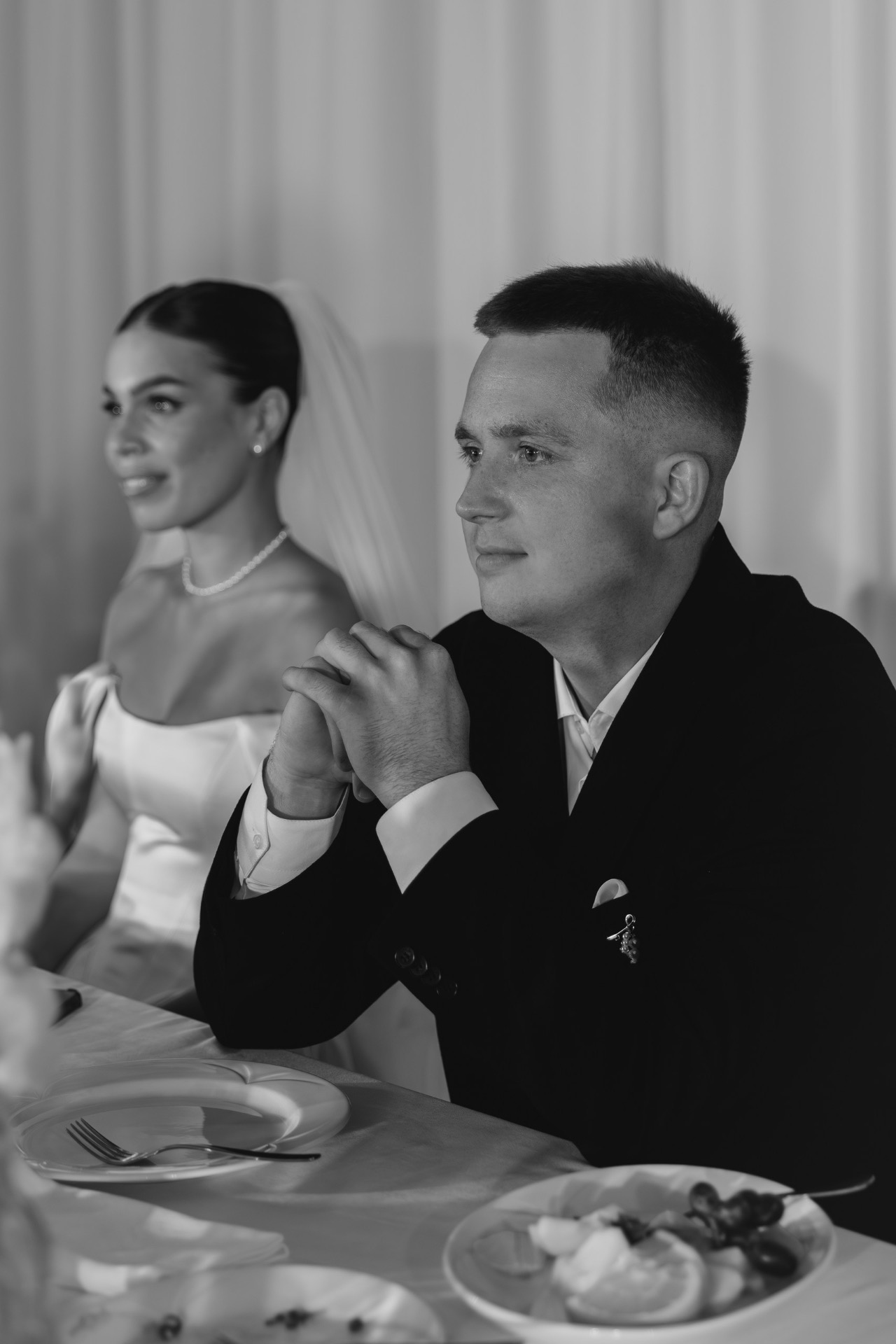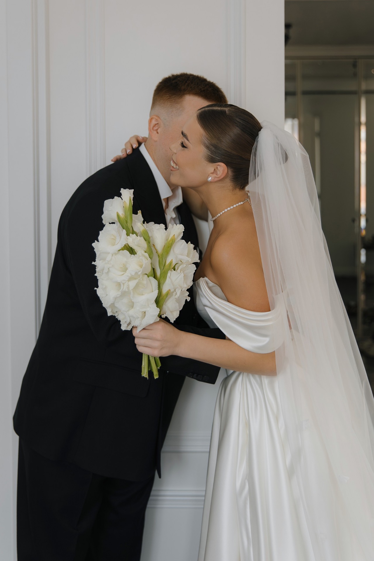 Над образами нам долго думать не пришлось. Моей неизменной иконой всегда была свадьба родителей: белое пышное платье с акцентным корсетом у мамы и строгий чёрный костюм у папы. Именно такие образы я с детства представляла и для своей собственной свадьбы.