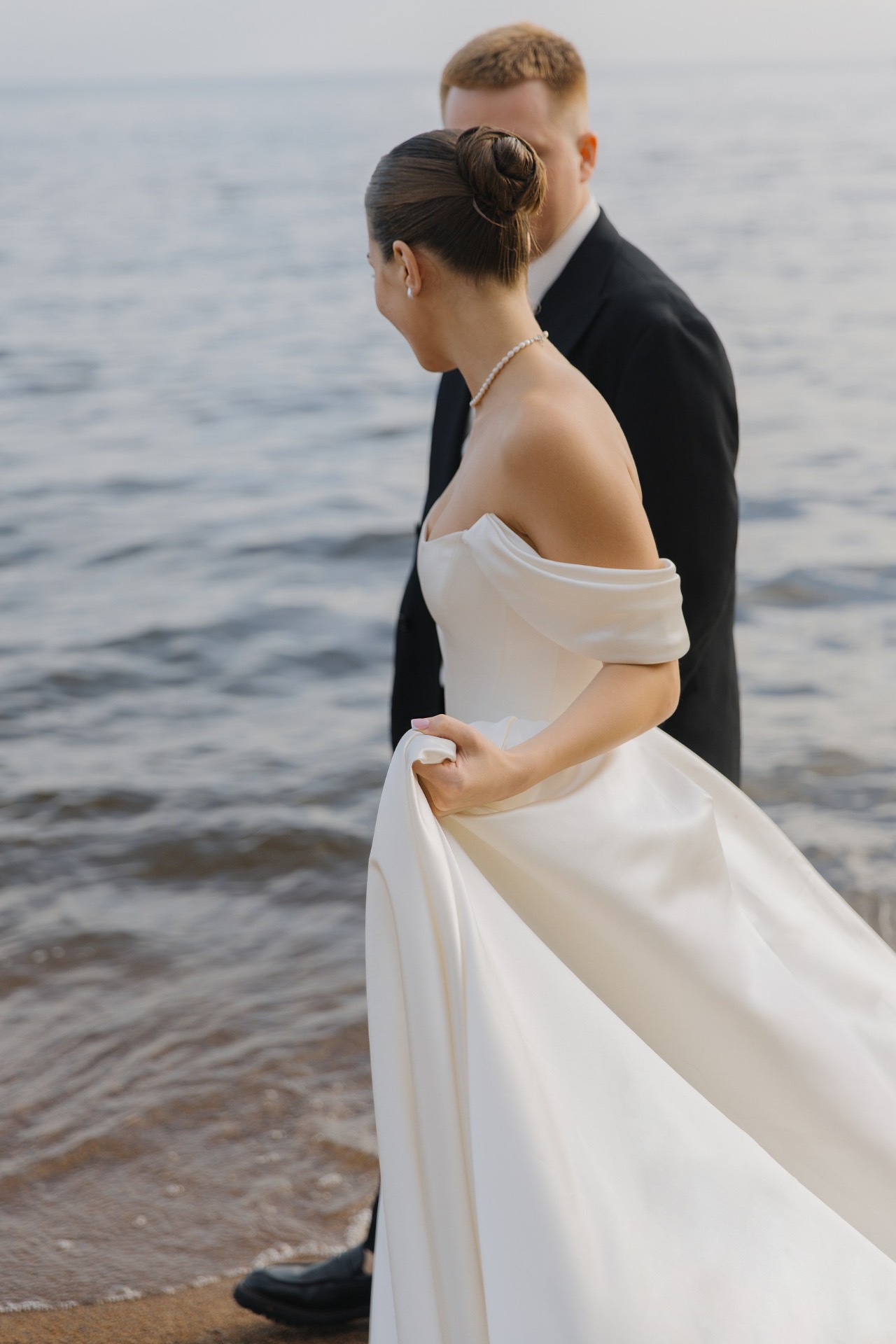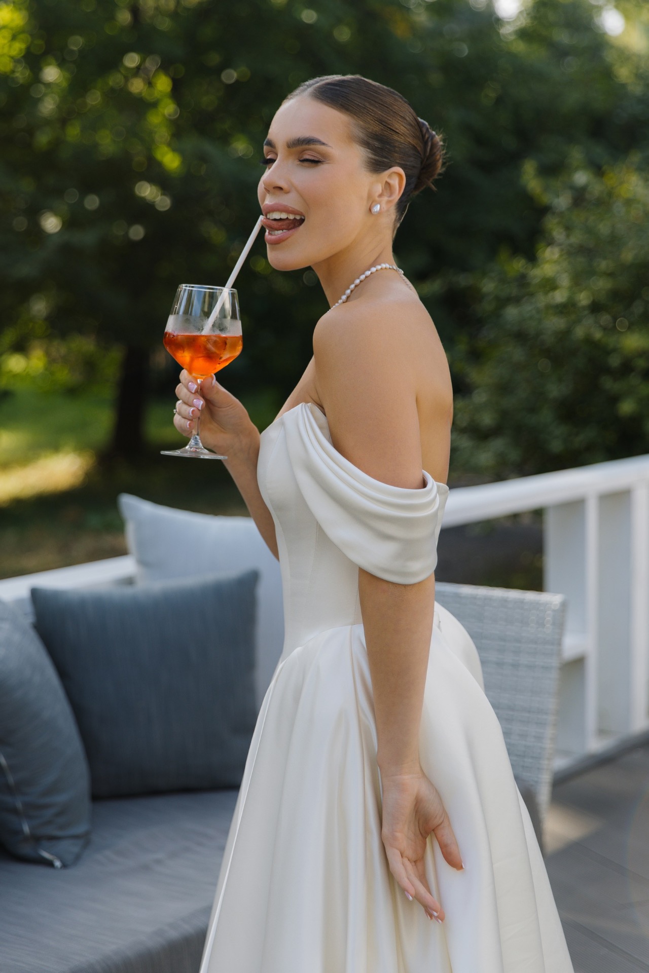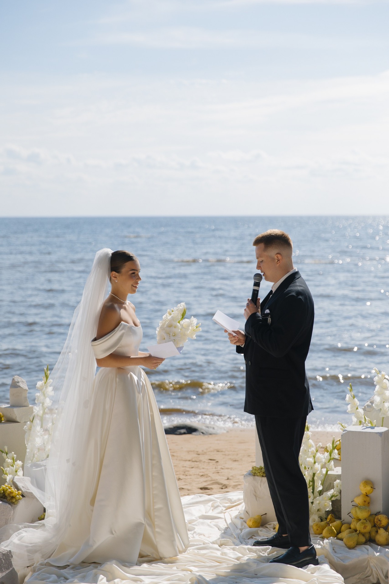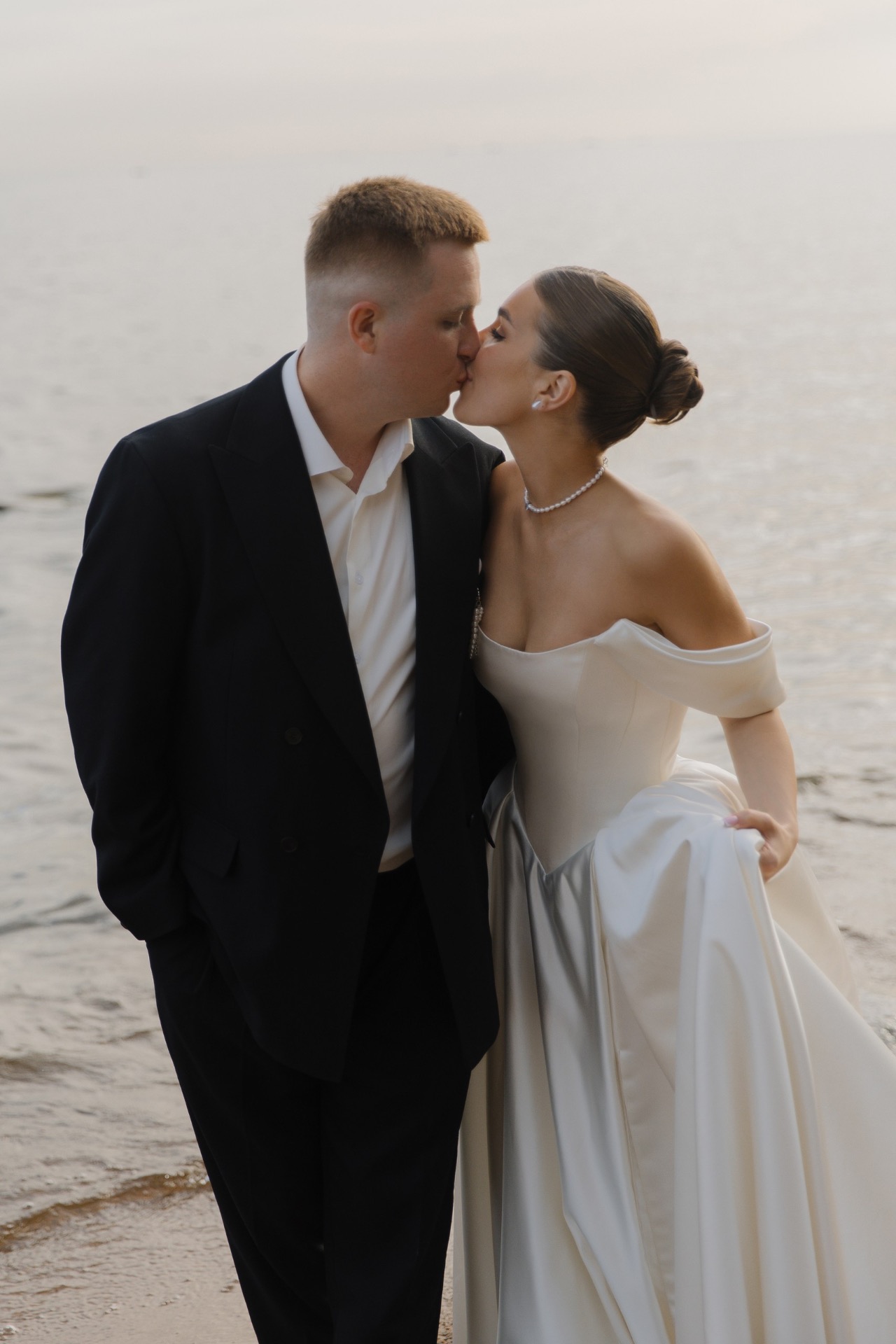 Артём сделал мне предложение в июне 2024 года во время прогулки на катере: под невероятный закат, с видом на Неву и вечерний Петербург. В тот момент у нас не возникло ни малейшего сомнения: мы точно знали, что хотим свадьбу. С этого мгновения родилась и сама концепция: загородная церемония с видом на залив, в кругу самых близких, с яркими коктейлями и танцами до самого заката. Спойлер: всё получилось даже лучше, чем мы могли мечтать.