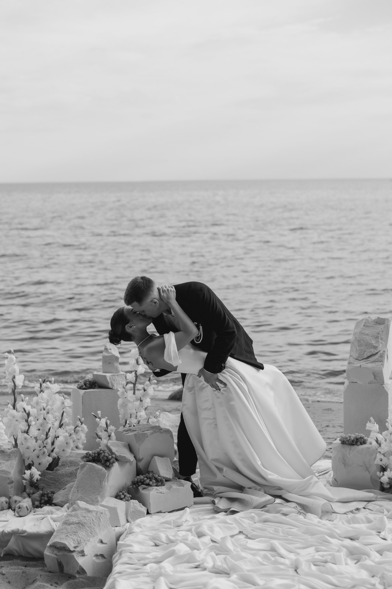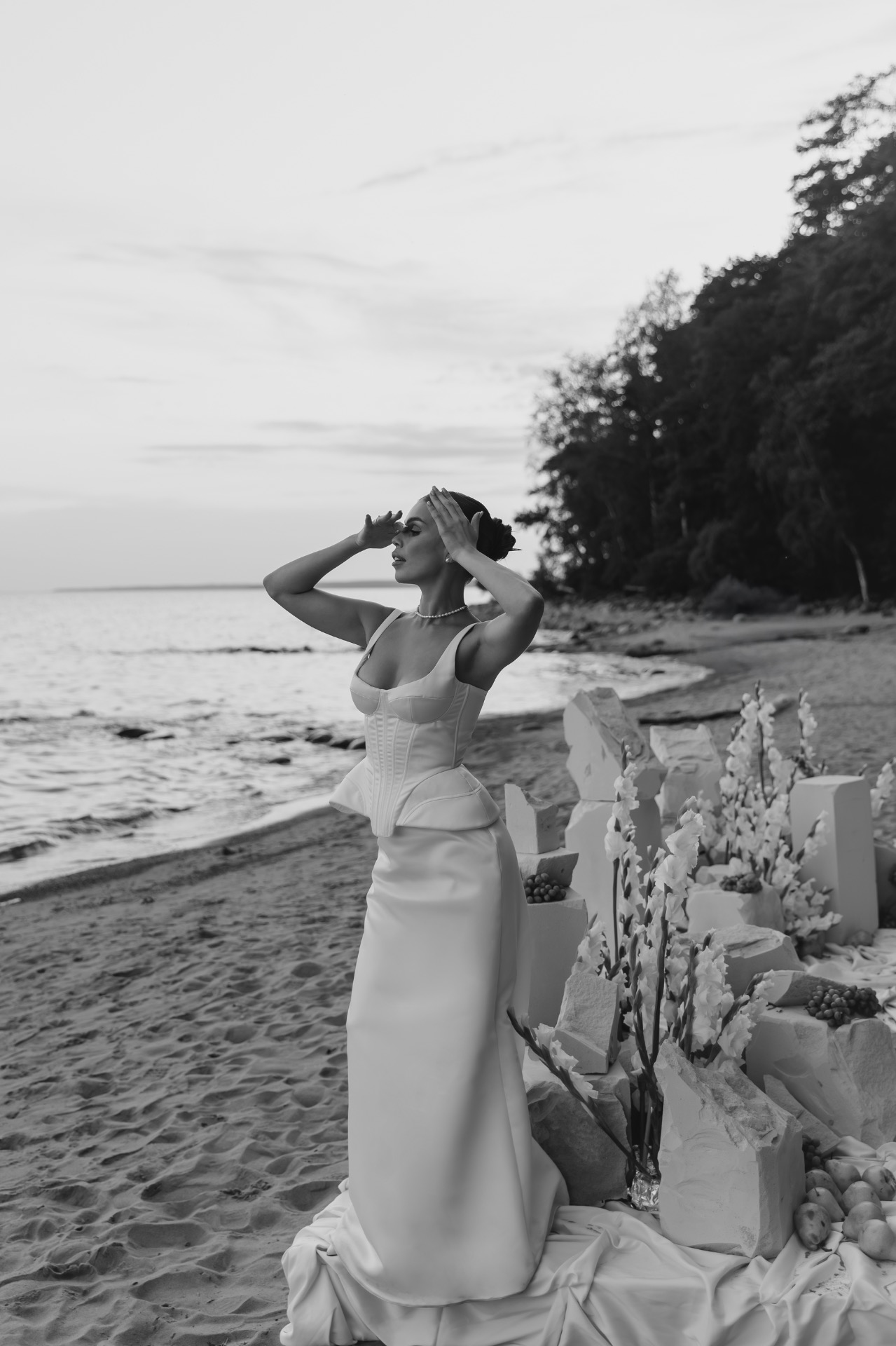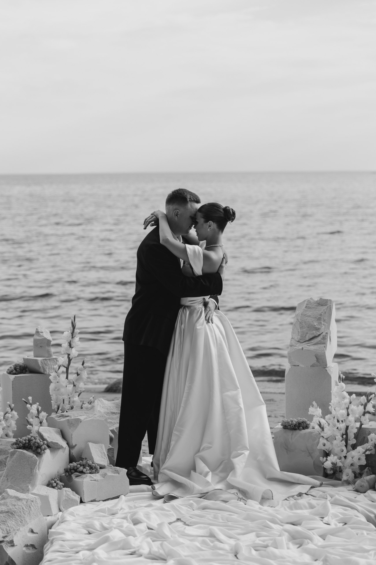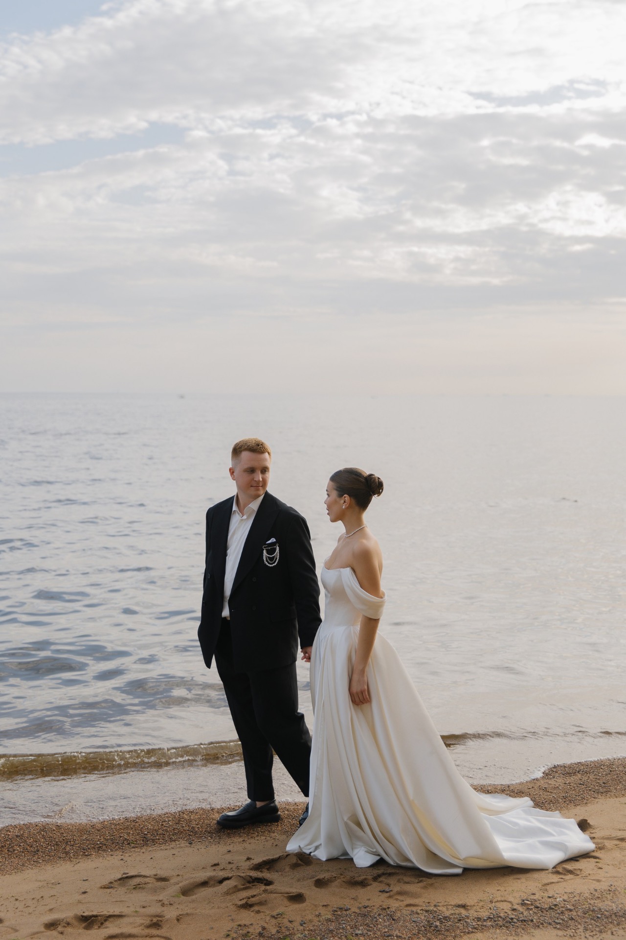 Артём сделал мне предложение в июне 2024 года во время прогулки на катере: под невероятный закат, с видом на Неву и вечерний Петербург. В тот момент у нас не возникло ни малейшего сомнения: мы точно знали, что хотим свадьбу. С этого мгновения родилась и сама концепция: загородная церемония с видом на залив, в кругу самых близких, с яркими коктейлями и танцами до самого заката. Спойлер: всё получилось даже лучше, чем мы могли мечтать.