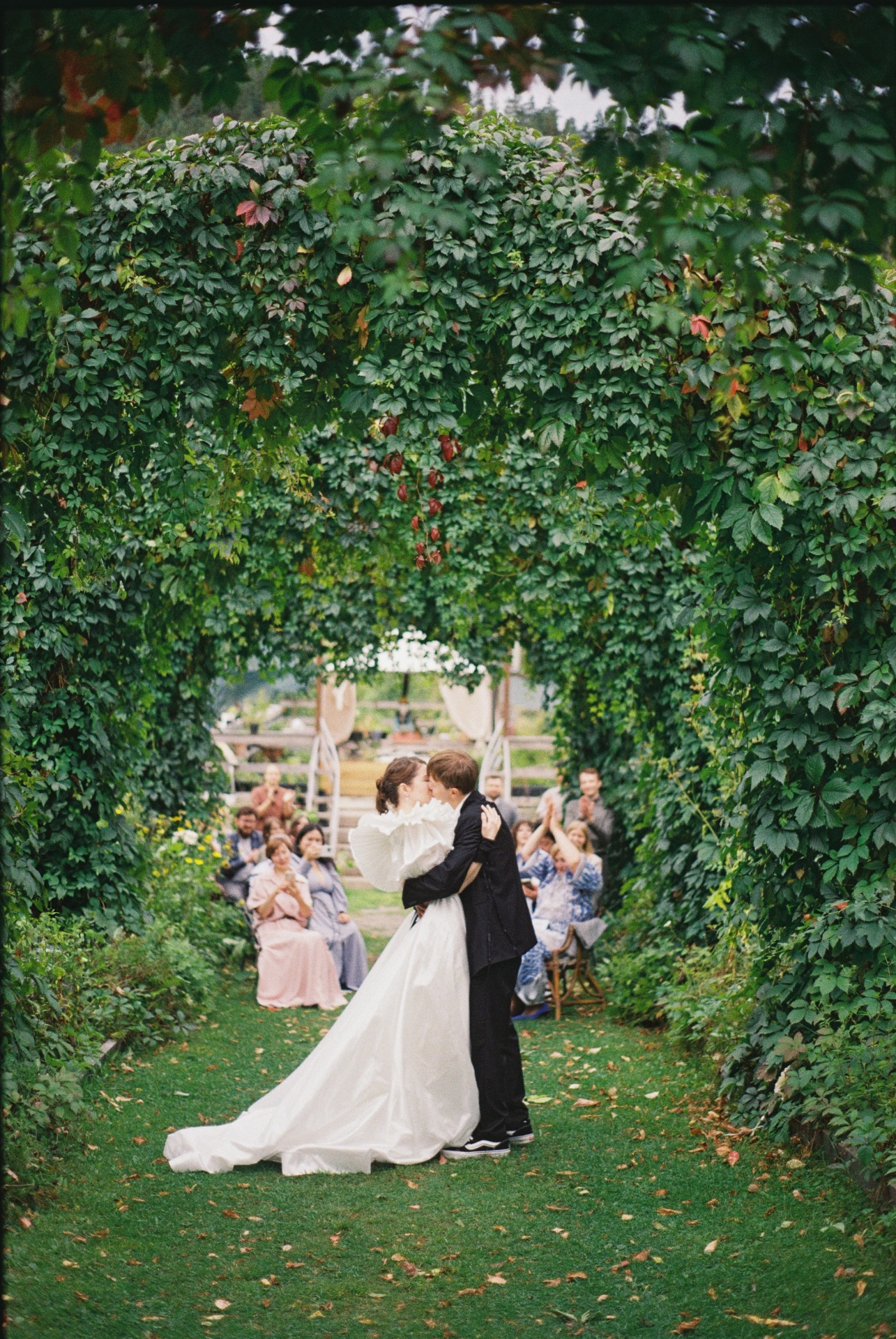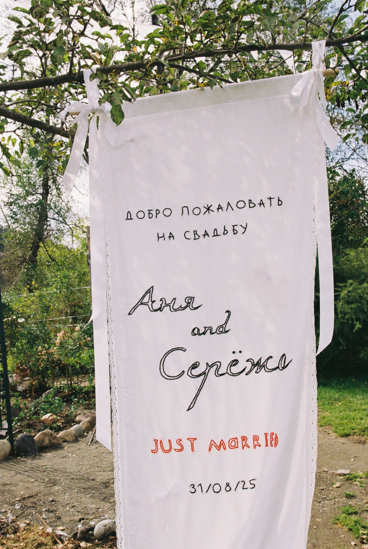 Самым трепетным моментом для нас стала церемония. Перед самым началом папа неожиданно увидел стоящий неподалёку электромобиль одного из сотрудников сада, и мы решили, что надо врываться на церемонию на нём. Это было так спонтанно и смешно! А дальше были искренние клятвы, волнение, слёзы счастья и радость.