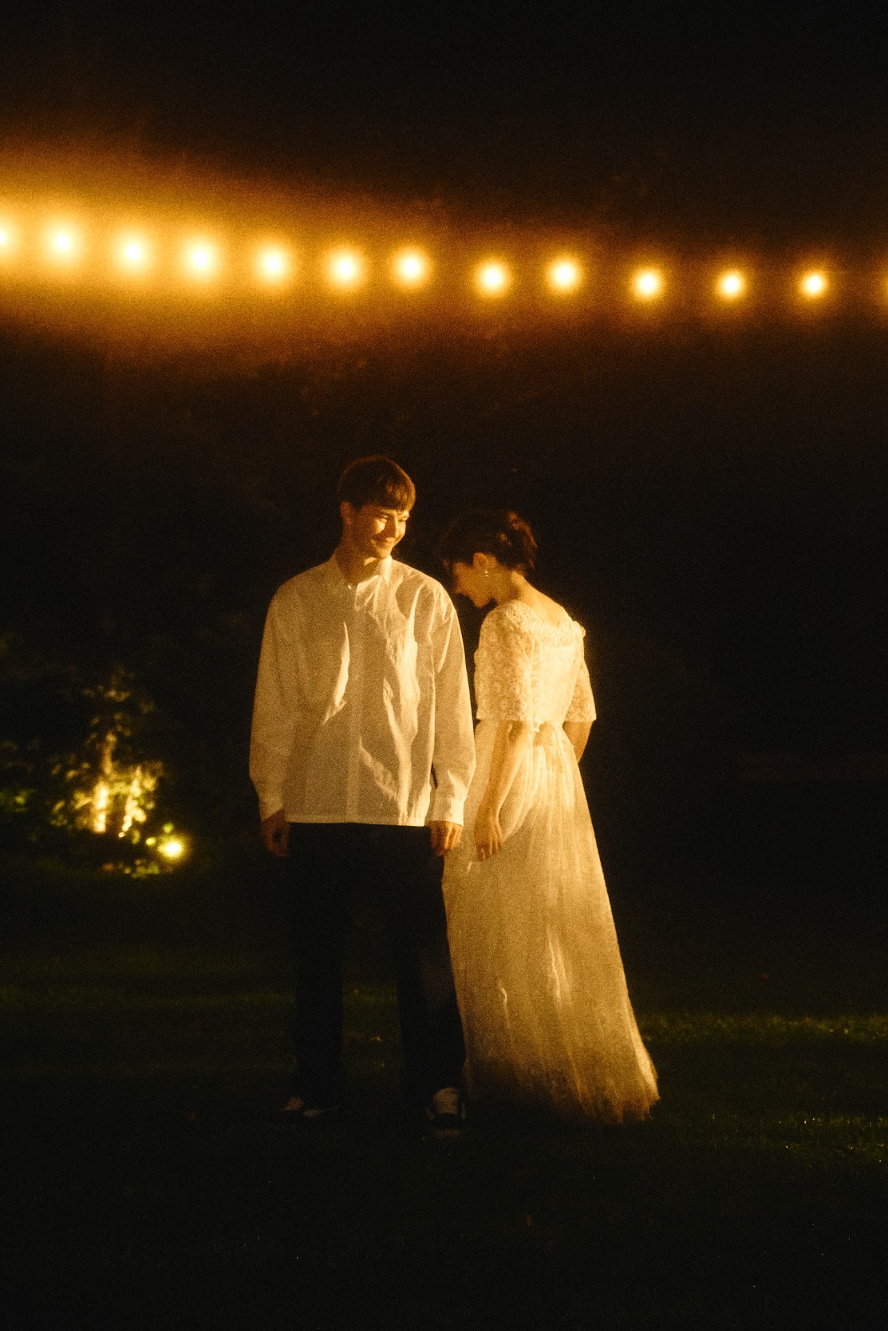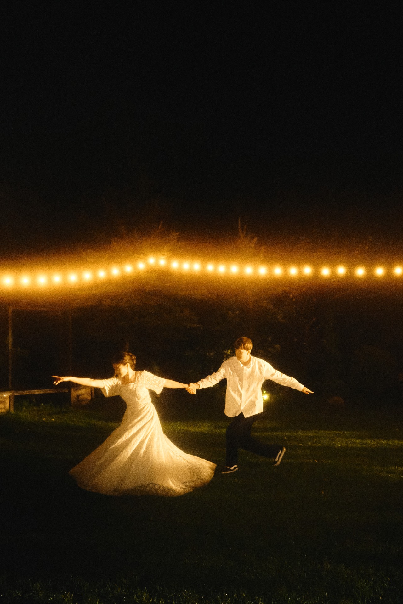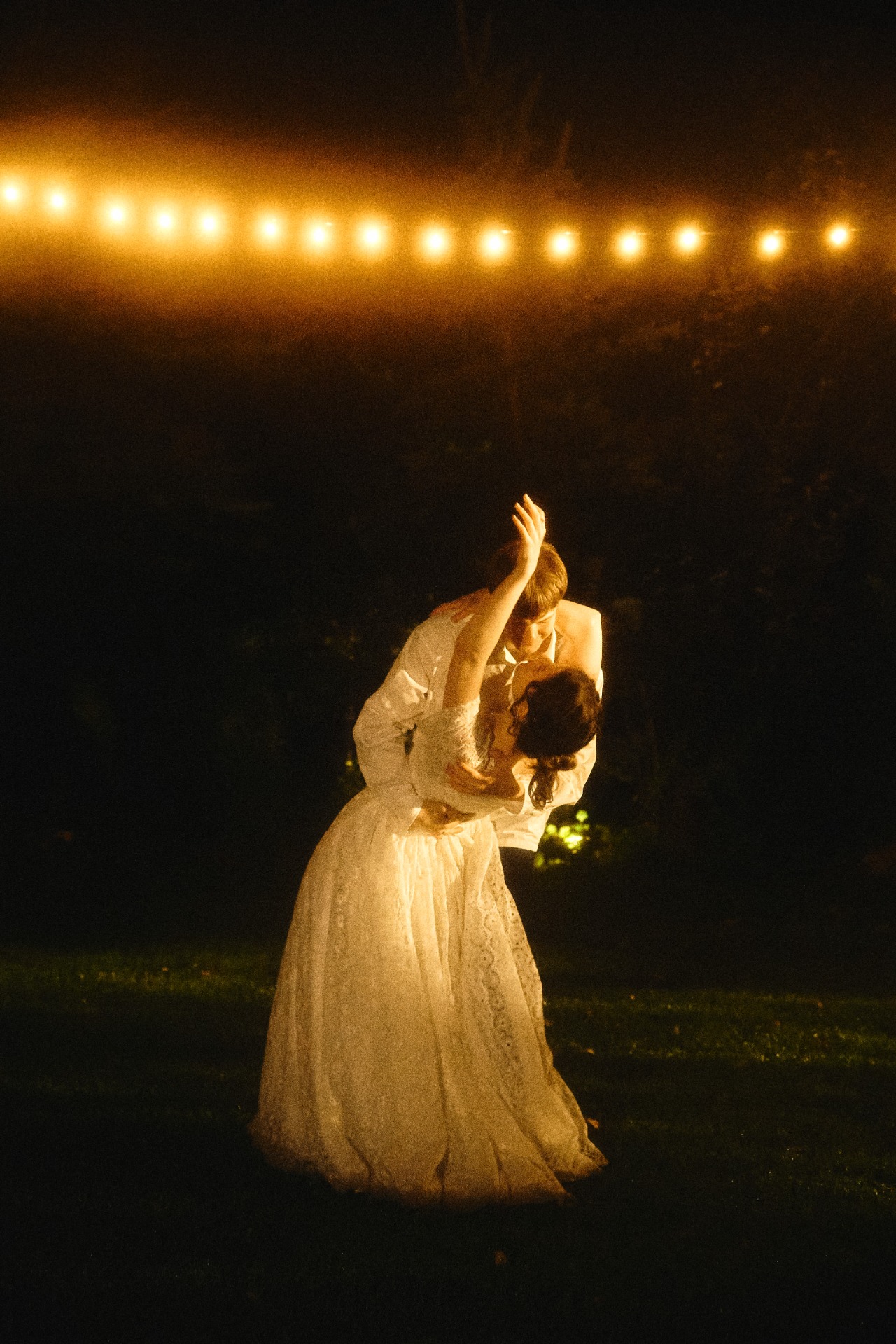 Вечером мы станцевали свой первый танец. Мы долго готовились у замечательного хореографа и оба ждали этого момента. И он случился в самом конце вечера — под тихим дождём, в свете тех самых гирлянд на мокрой траве.