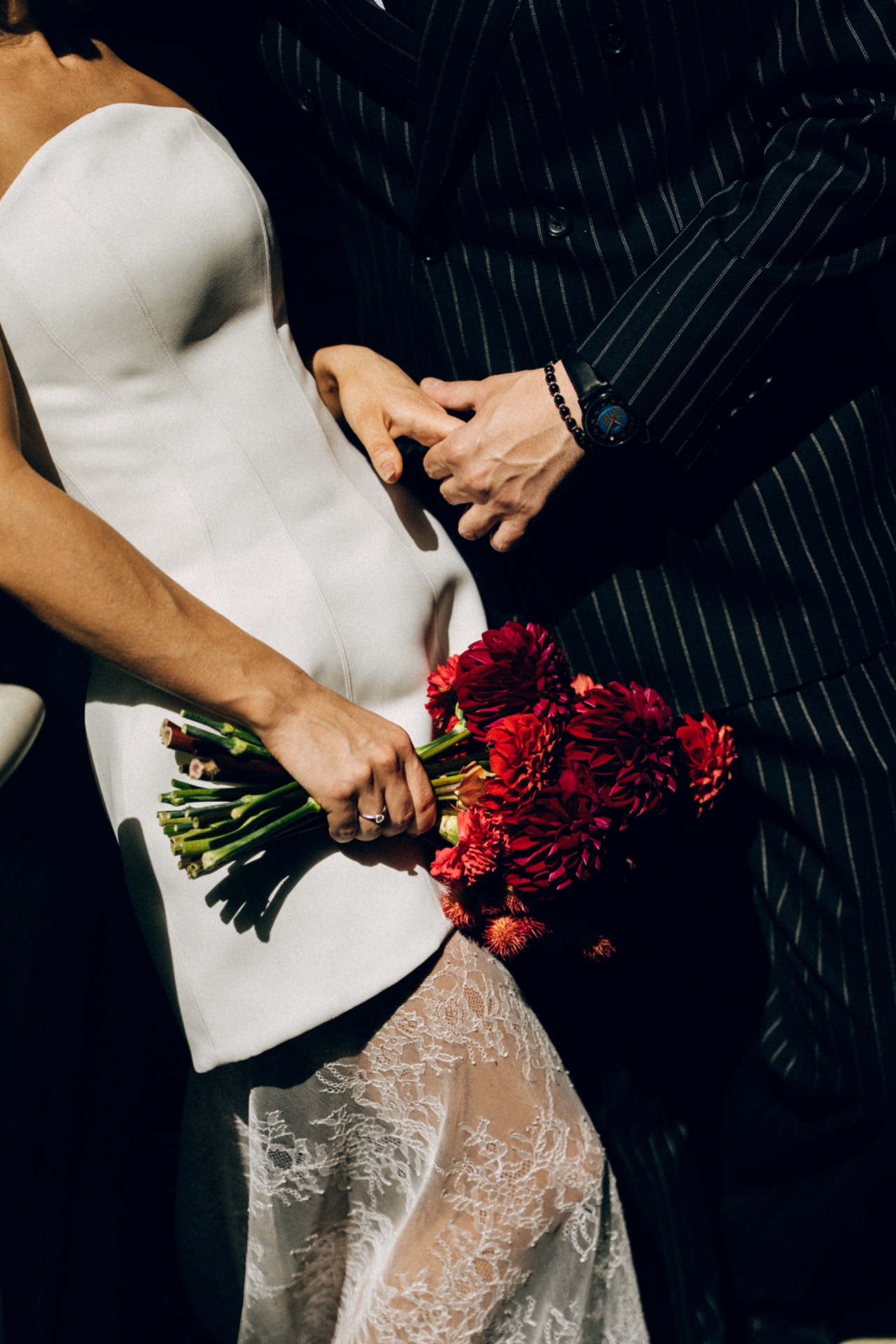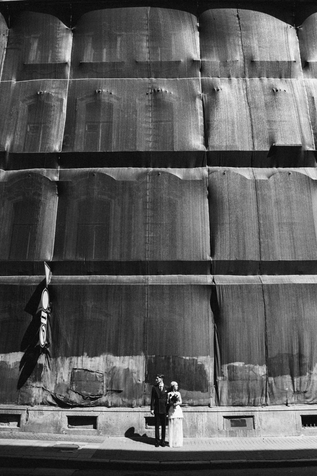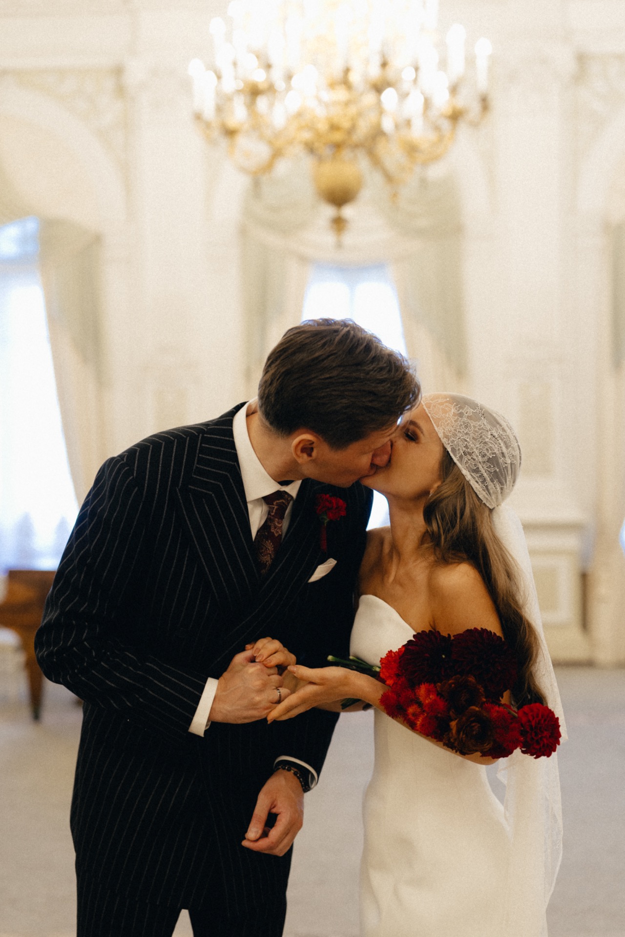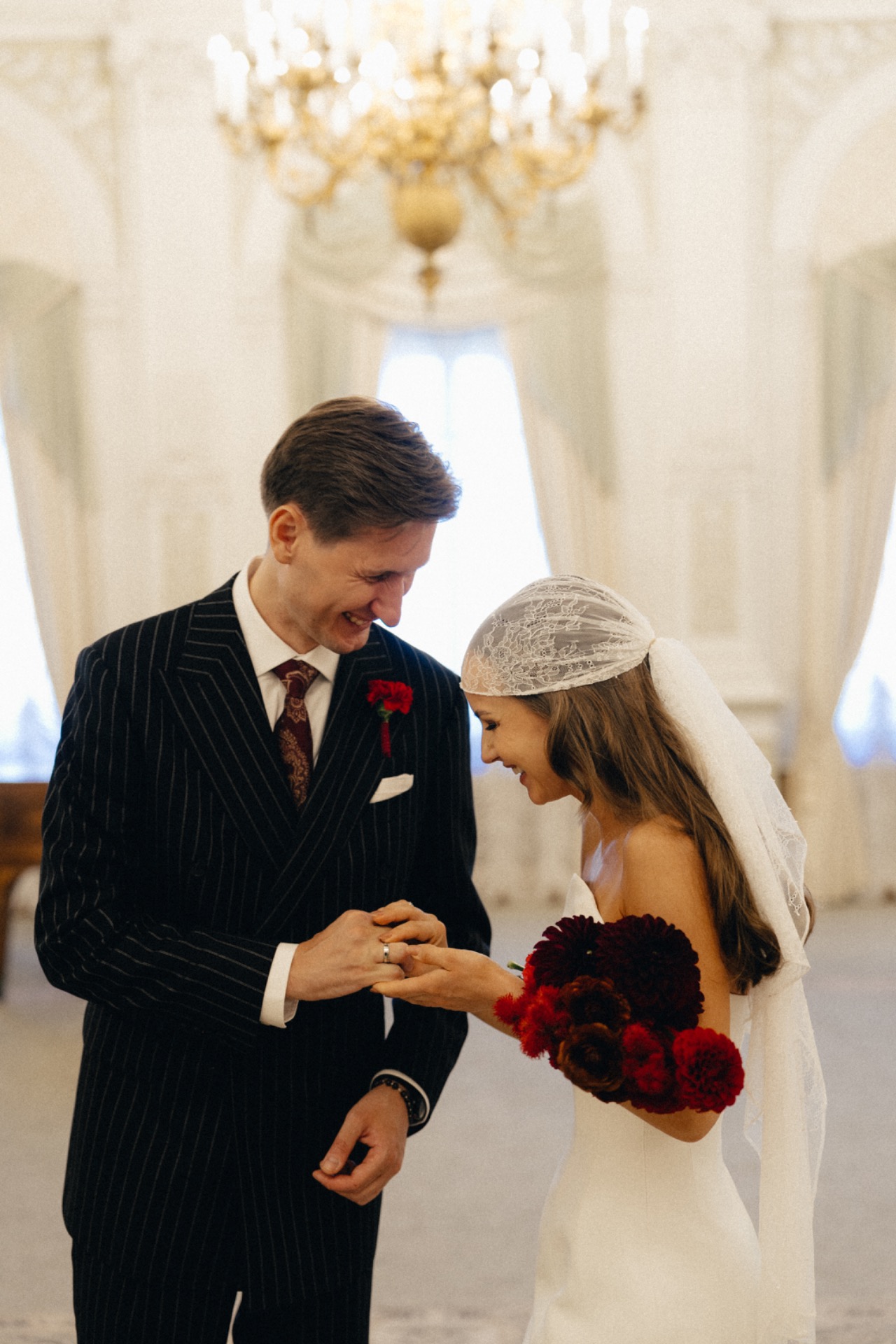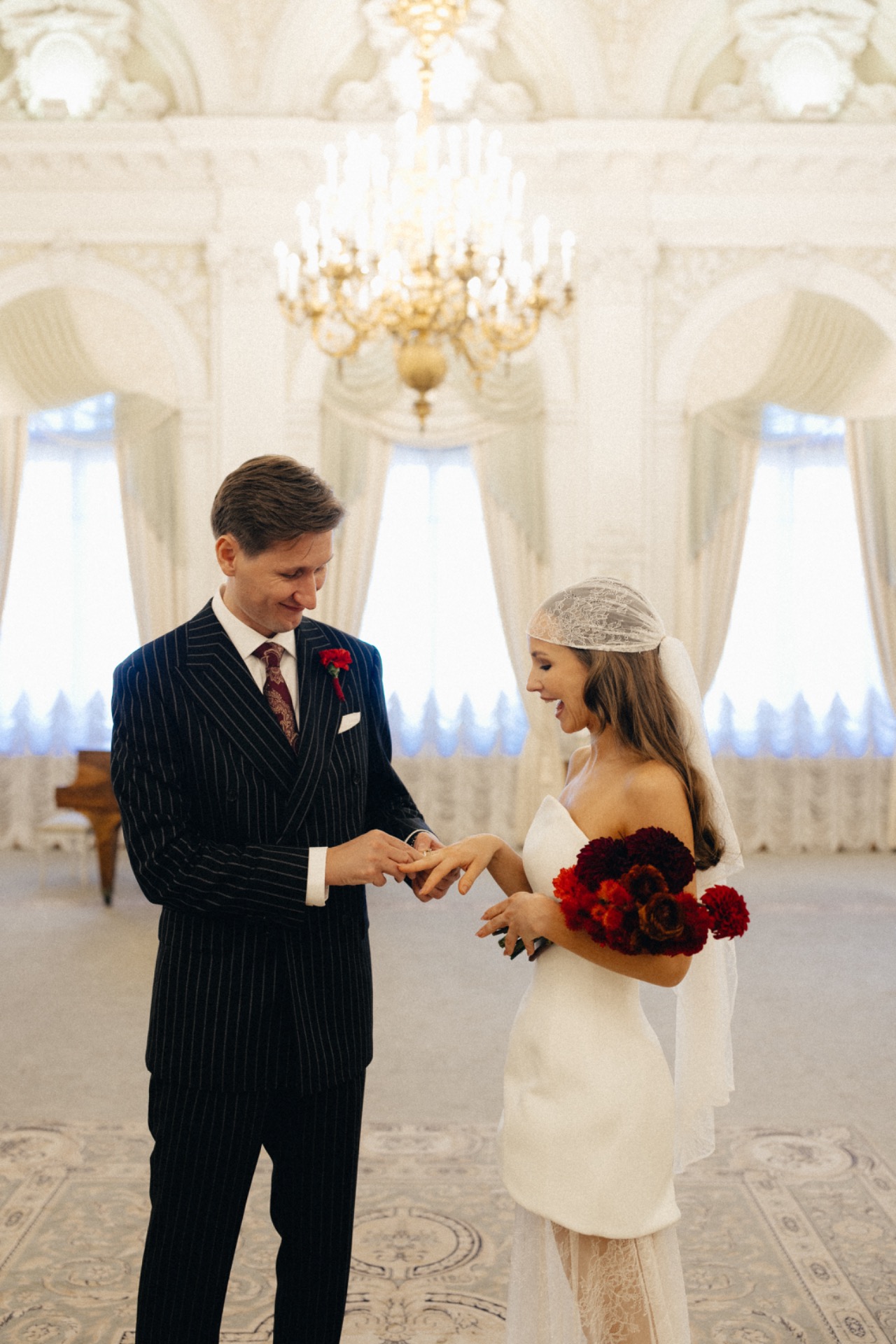 День свадьбы пролетел, думаю, как и у всех пар, за мгновение. У нас были неспешные сборы в отеле с потрясающим видом на Исаакиевский собор, а сама регистрация состоялась в загсе на Английской набережной, после которой гостей повезли в ресторан. А нас с Владимиром украл фотограф на небольшую фотосессию с неочевидным урбанистическим вайбом у ближайшего реконструируемого здания.