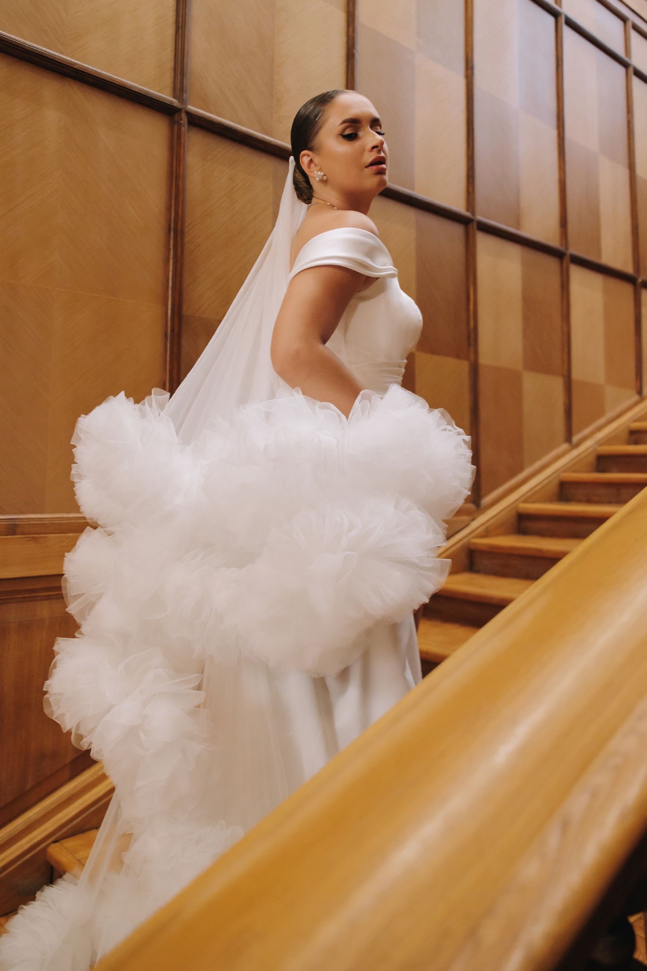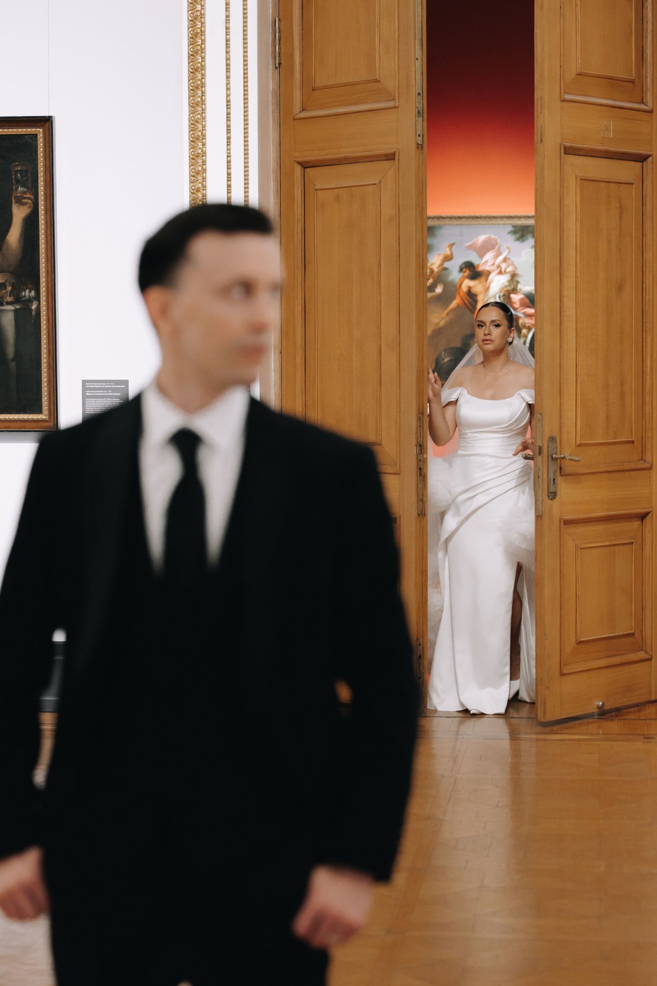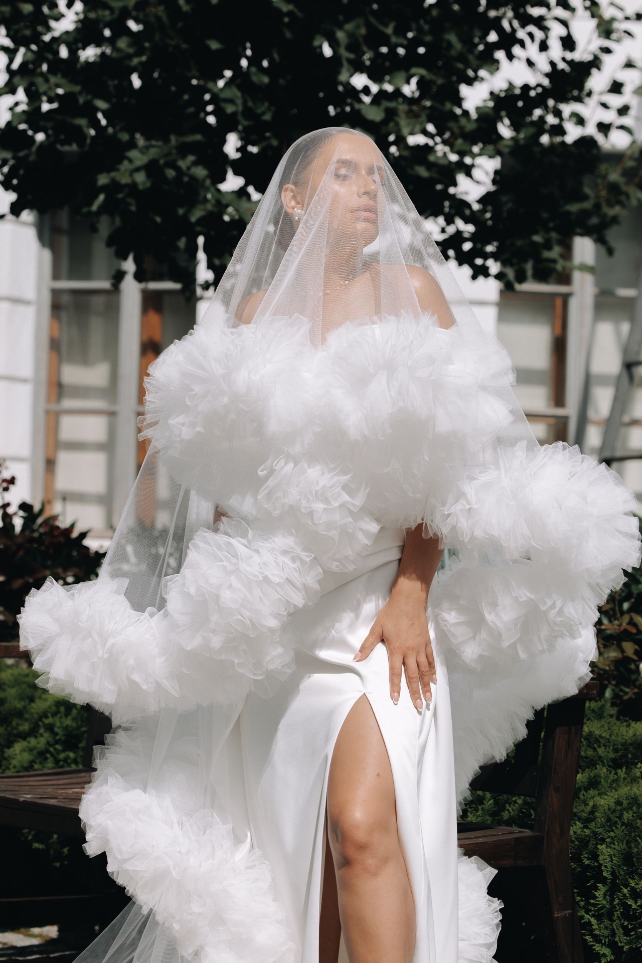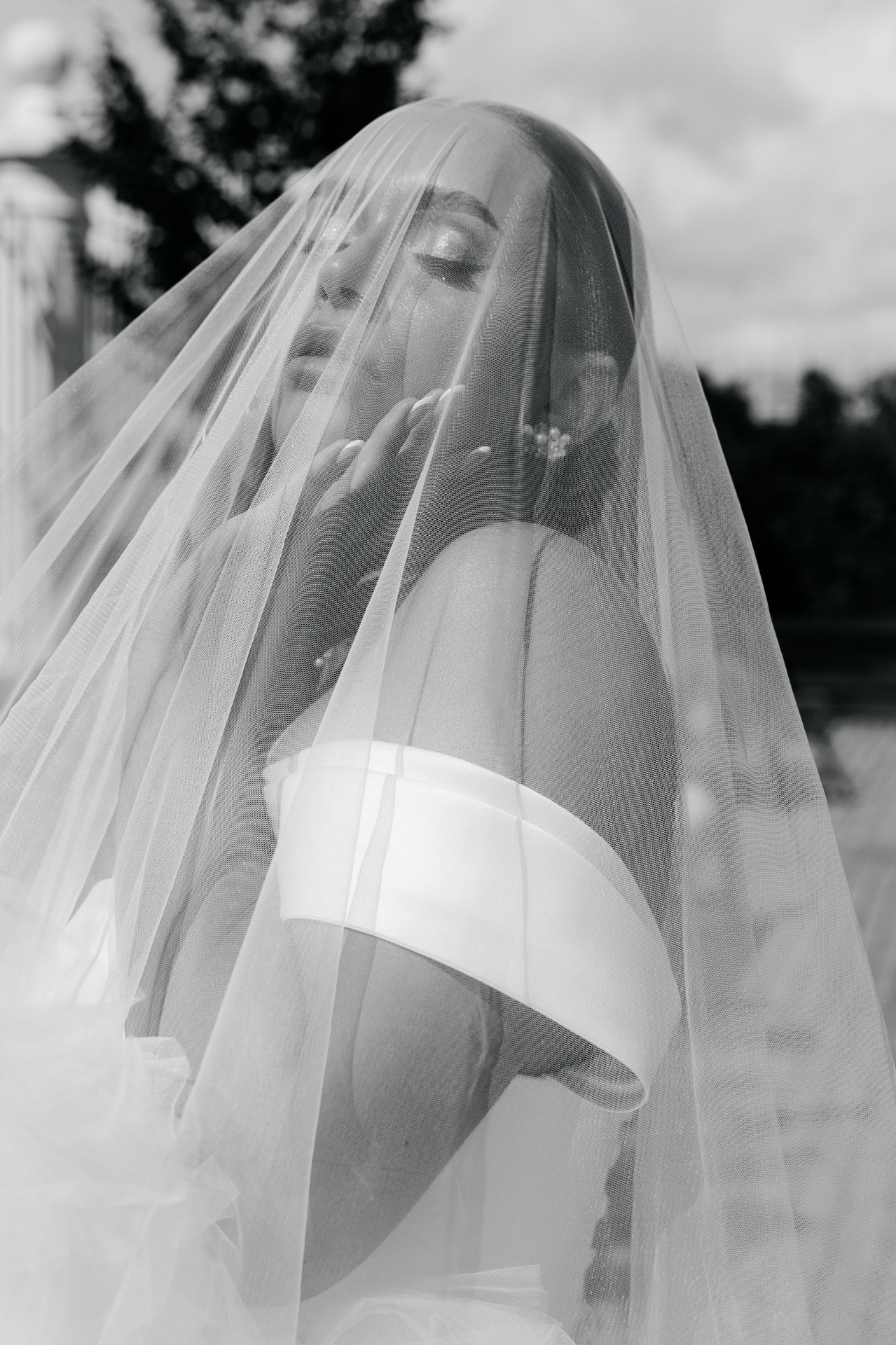 Я остановилась на прямом атласном платье, подчёркивающем фигуру. В сочетании с воздушной фатой оно напоминало облако, создавая эффект лёгкости и воздушности.
