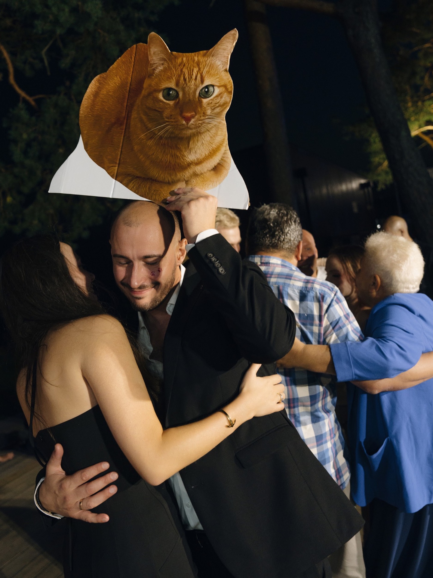 Ну и, конечно же, звезда вечера — наш любимый кот Пончик. Он ждал нас в номере, но его распечатанный двойник был с нами весь вечер.