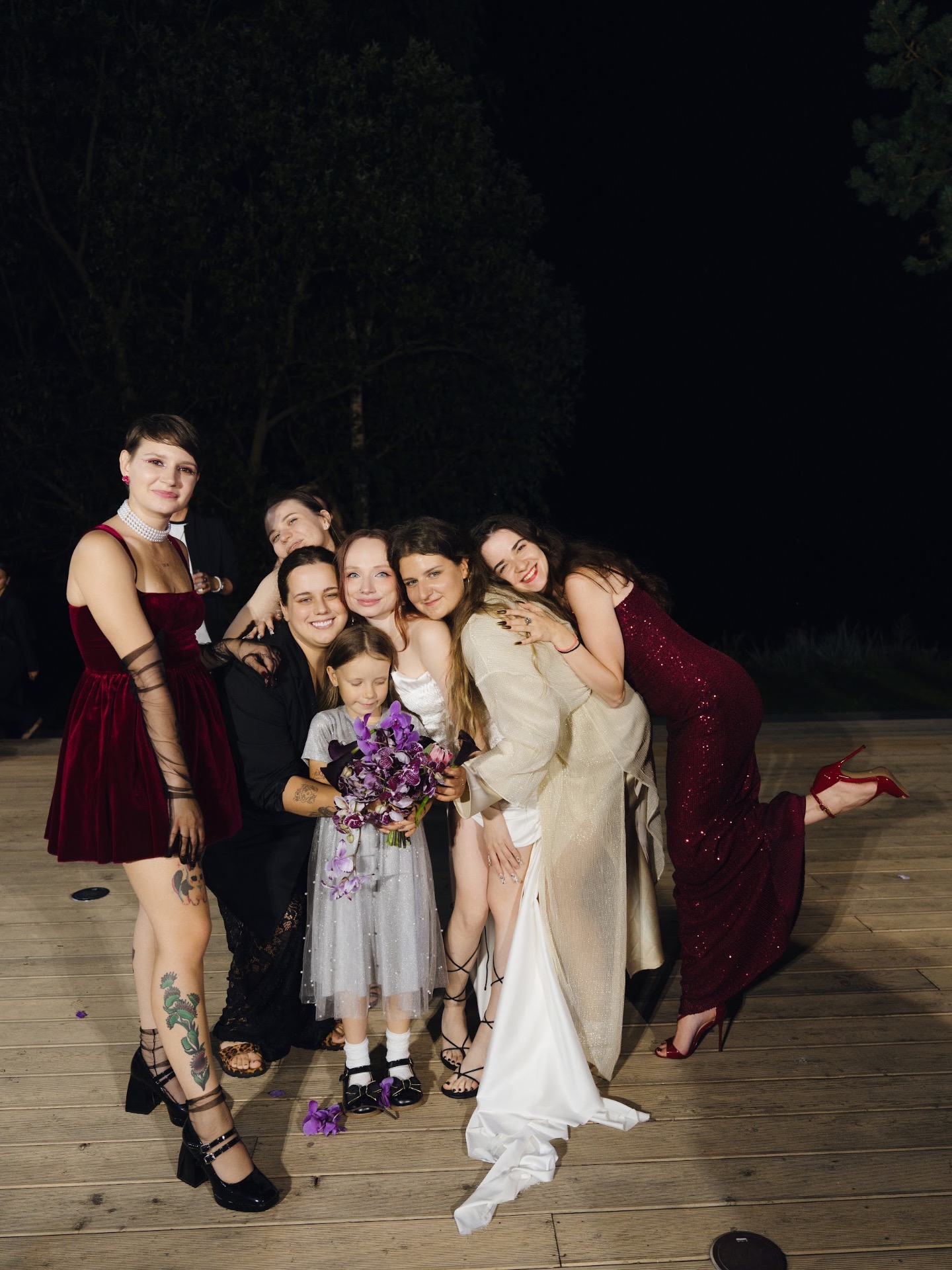 Мы безумно рады, что смогли реализовать ещё одну мечту — устроить игру в волейбол прямо на свадьбе. Все мужчины приняли участие, а мы, девушки, поддерживали их танцами. Отдельной фишкой стал фотопринтер с аниме-фильтром — у каждого гостя осталась фотография с нашей свадьбы в аниме-стиле.