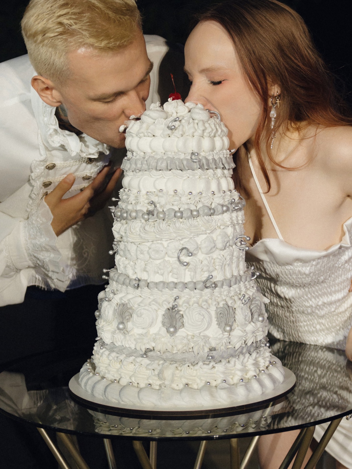 Насчёт торта у меня не было чёткого представления. Но, однажды, листая Pinterest, я наткнулась на торт с пирсингом — и сразу поняла: вот он, наш вариант. Очень переживала, получится ли воплотить эту идею, но кондитер Sofiaavok — просто умница: торт был идеален.