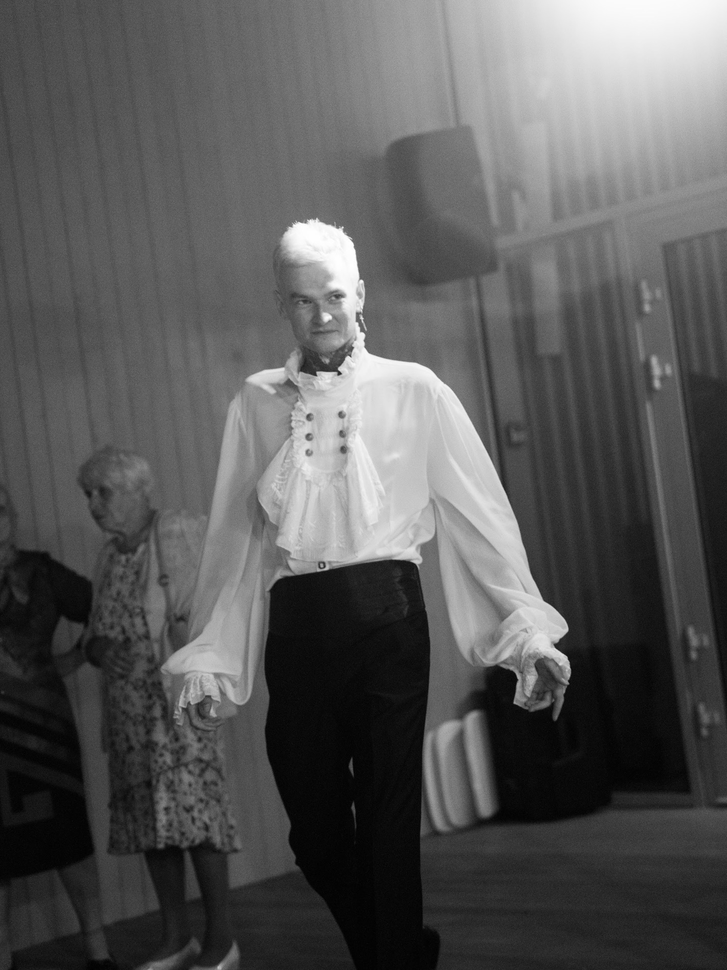 Алексей для первого выхода выбрал классический костюм в чёрном цвете. А главным акцентом его второго образа стала рубашка в стиле фильма «Интервью с вампиром». Его белые волосы добавляли образу выразительности и завершённости