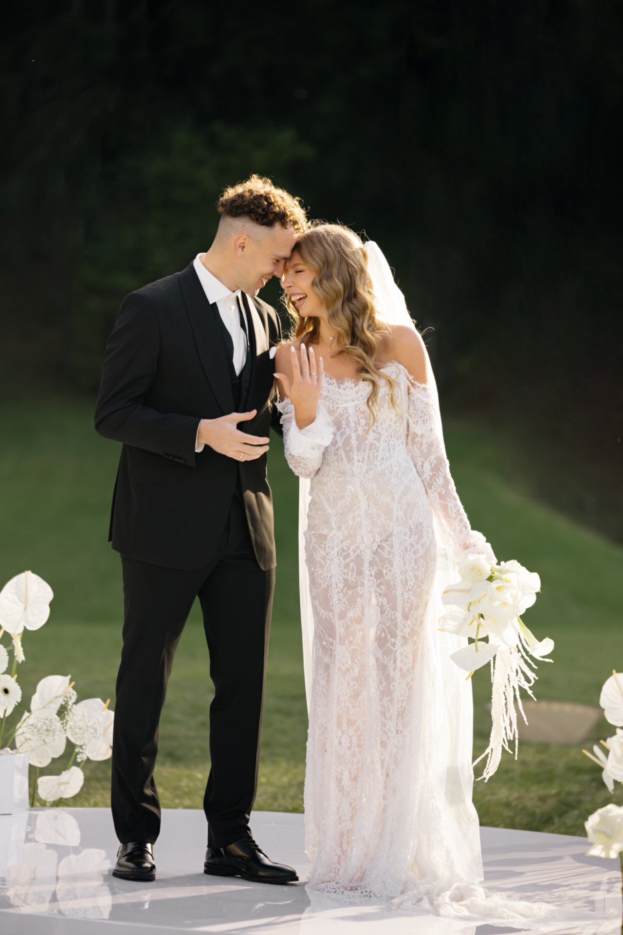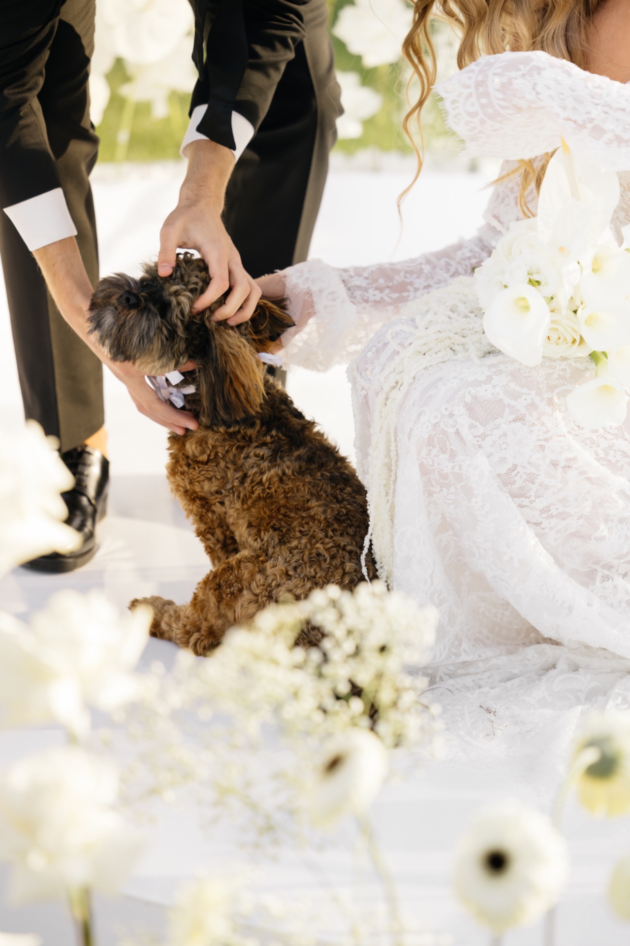 Нам удалось взять нашего маленького члена семьи, собаку, с нами на утро и церемонию. Она получилась очень душевной: я вышла замуж по любви, за мужчину мечты, мы сказали очень важные слова друг другу. Мы их говорим каждый день, но в атмосфере церемонии это было действительно особенно. Ведущий дал нам возможность на минутку замедлиться и просто прочувствовать момент. Это было как в самой красивой сказке о любви.