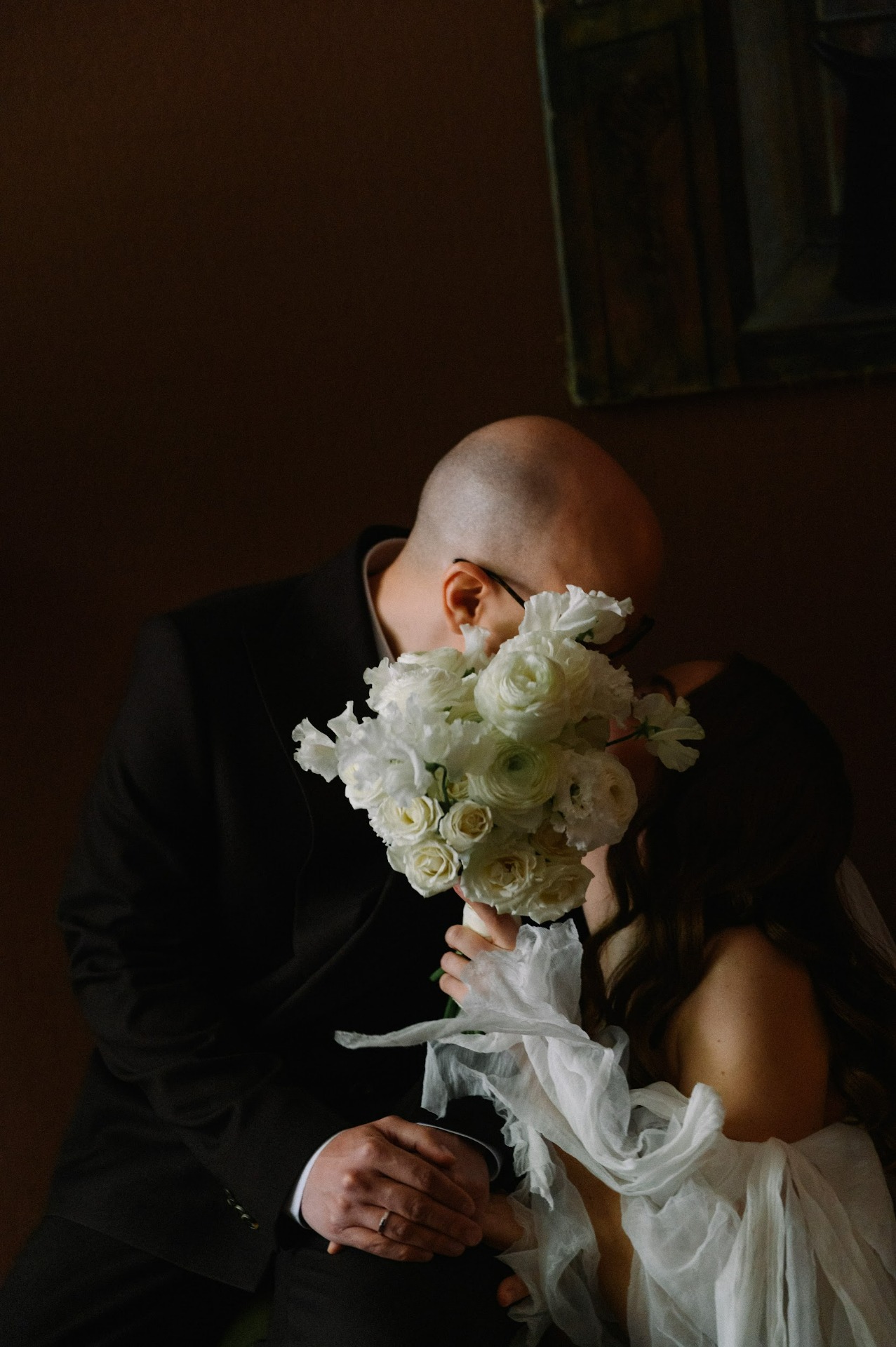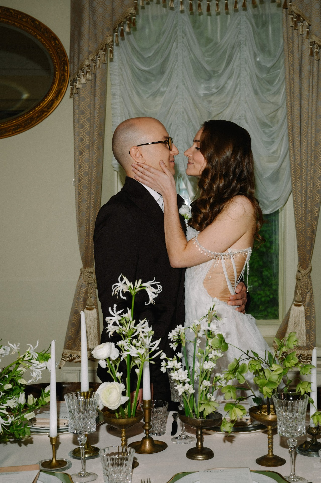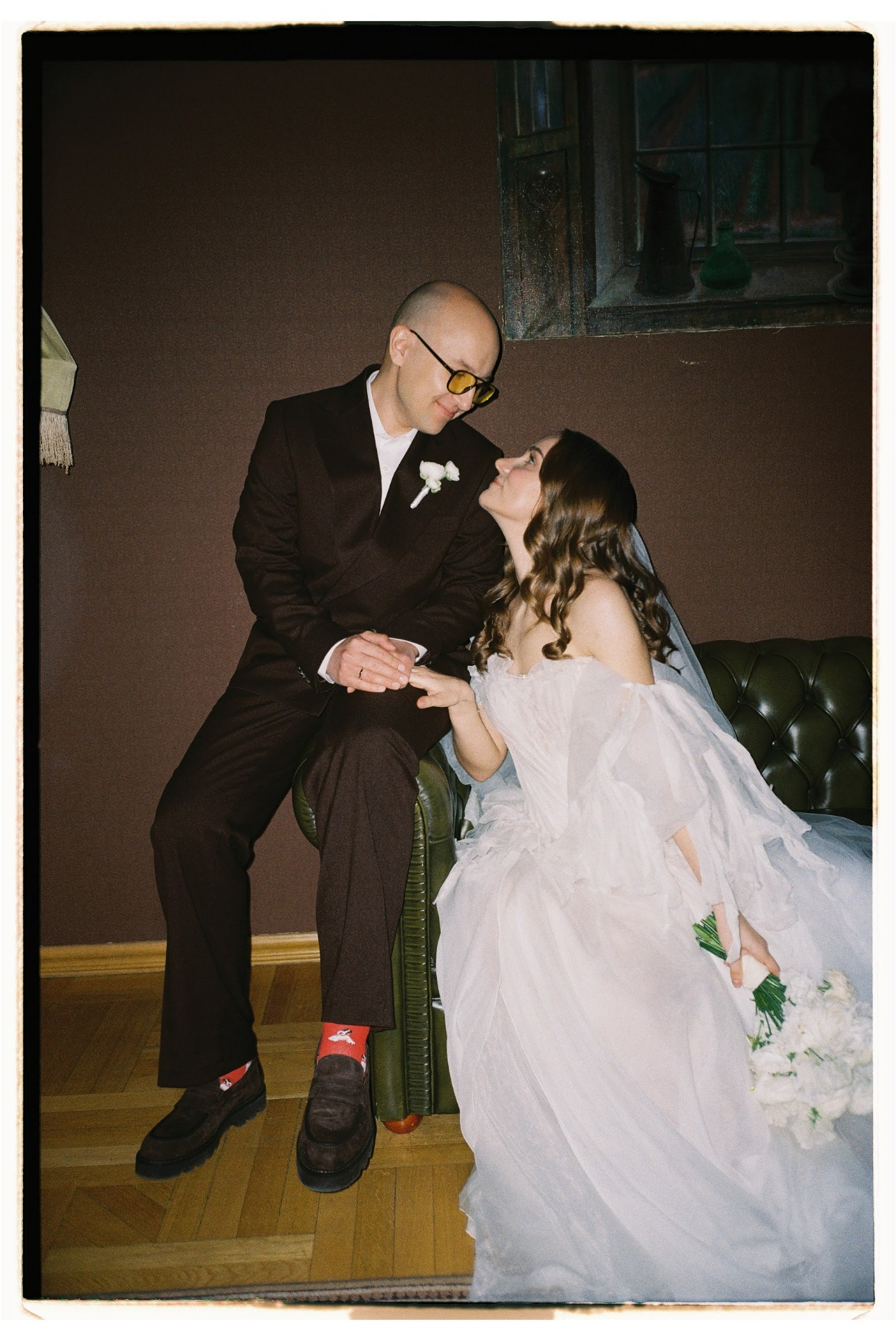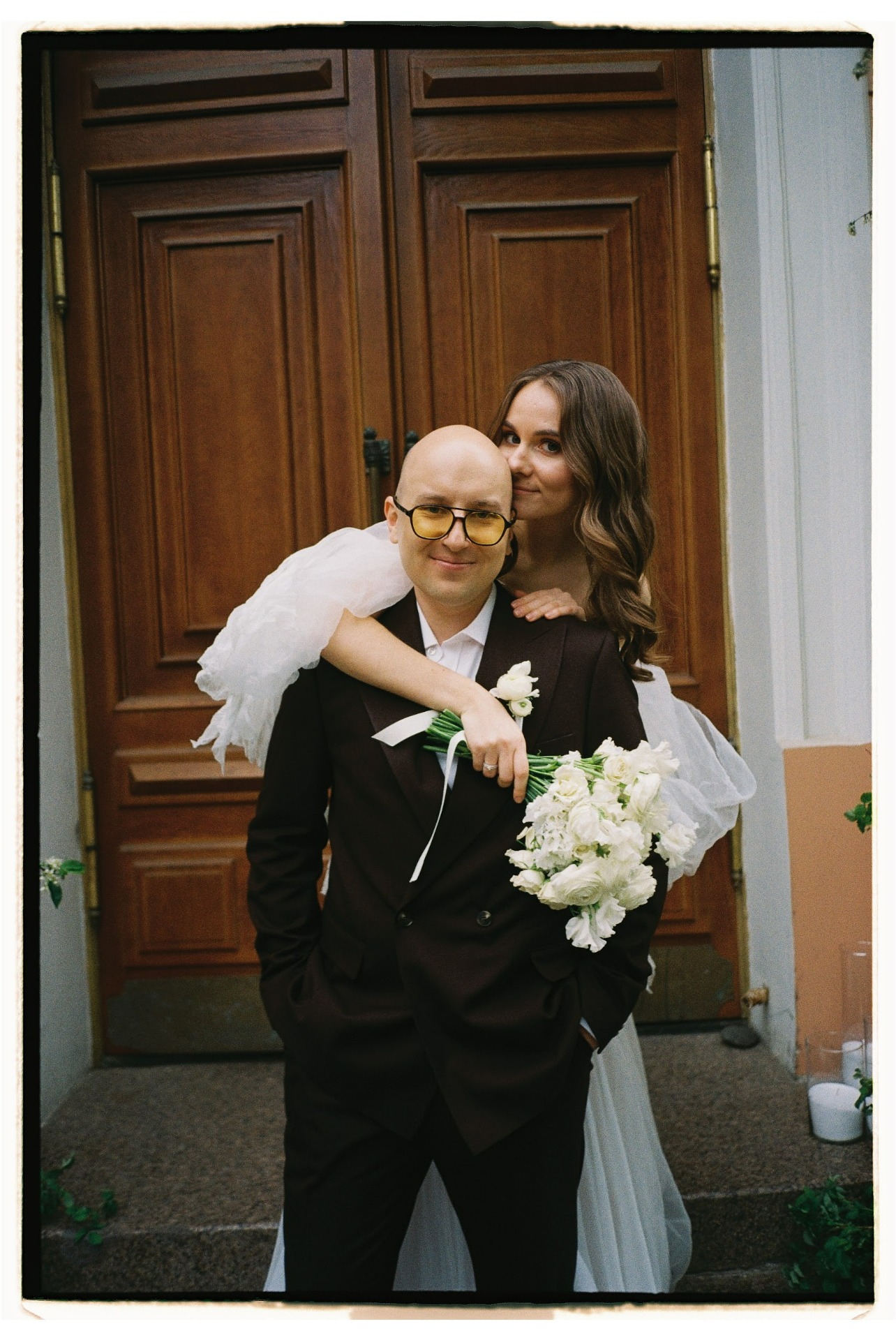 Нам очень хотелось сыграть свадьбу в день нашего знакомства, поэтому на подготовку у нас было меньше трёх месяцев. По нашей задумке, праздник должен был ощущаться как ужин с друзьями: душевный, но при этом особенный. Сначала мы даже думали отказаться от церемонии, но в итоге поняли, что без неё торжество будет неполным.