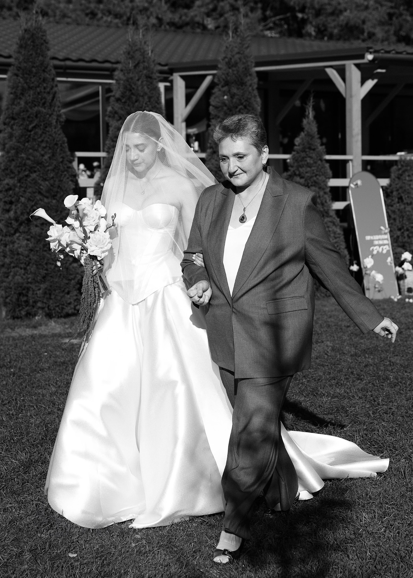 Сергей встречал гостей, а я появилась только на церемонии — под руку с мамой. Песня для моего выхода была выбрана по рекомендации Weddywood и идеально легла в настроение момента.