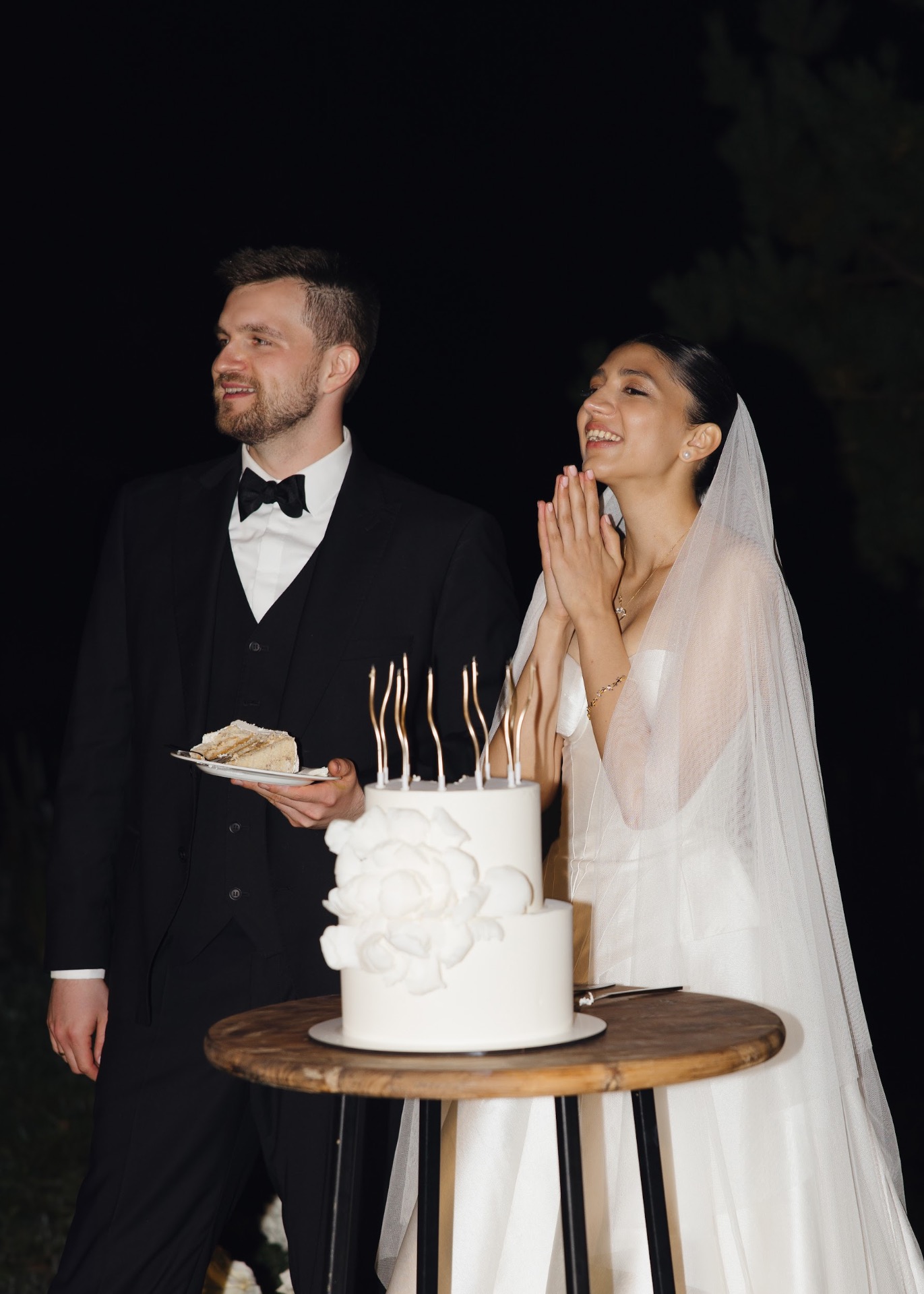 Вкус торта мы определили с первой дегустации, а вот с формой долго не могли решиться. В итоге выбрали классику и не пожалели ни на секунду. А свечи на торте стали самой уютной деталью нашего вечера.