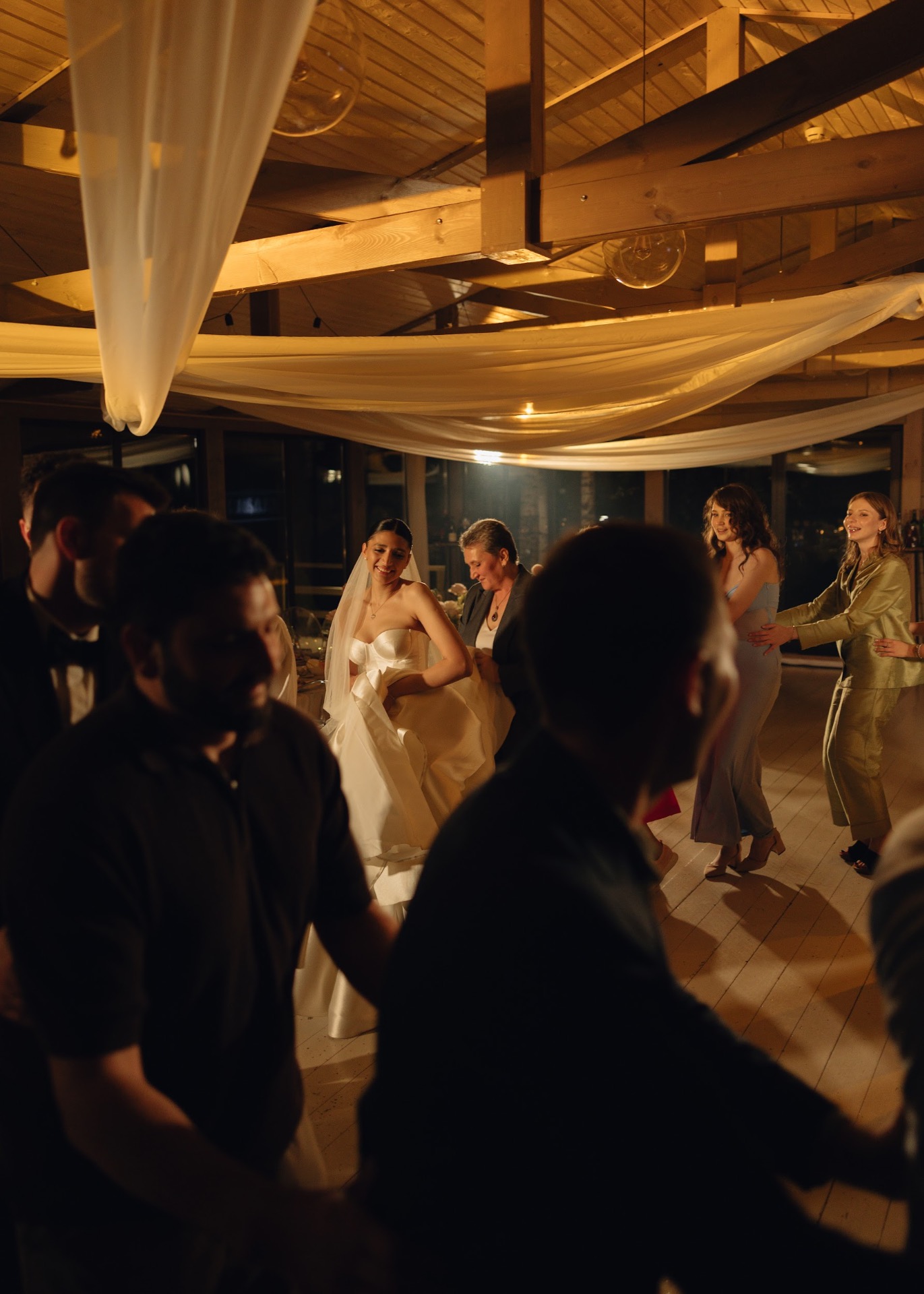 А ближе к концу вечера все гости, собравшись за общим столом, пели песни под минусовки — это создало идеальную атмосферу для завершения вечера. Так у нас остались замечательные и тёплые воспоминания о нашей свадьбе.