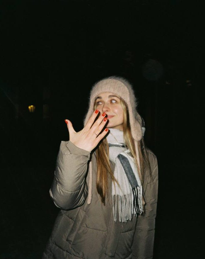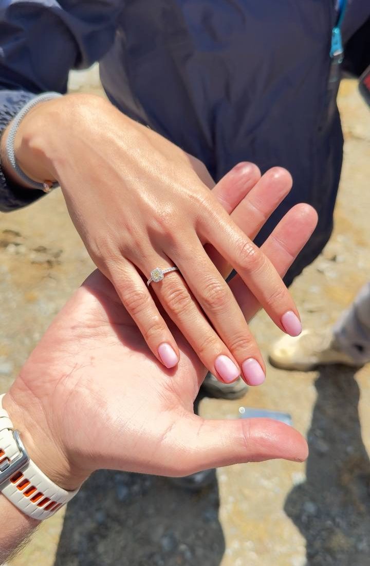 Он подошёл, обнял меня, и боковым зрением я заметила, как он что-то ищет в кармане. В этот момент я всё поняла. Он опустился на одно колено, сделал предложение, его голос дрожал, а коробочку с кольцом он открыл вверх ногами — я даже успела её поправить. Конечно, я сказала «да».