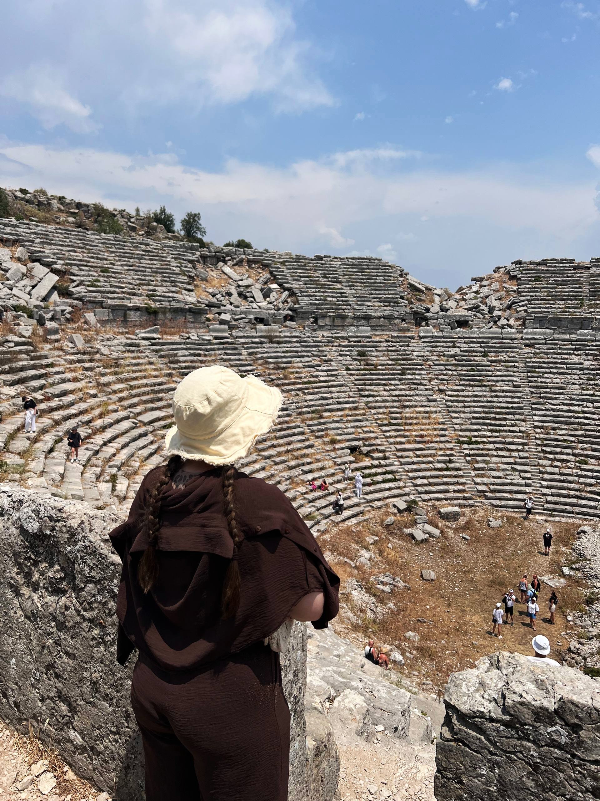 Первой точкой был древний колизей на вершине горы. Пока мы поднимались, за нами увязалась местная торговка, которая очень настойчиво пыталась что-нибудь продать. Наличных у нас не было вообще. Я почти не обращала на неё внимания, а потом поняла, что всё это время мой уже муж отчаянно пытался от неё избавиться, чтобы мы наконец остались вдвоём.