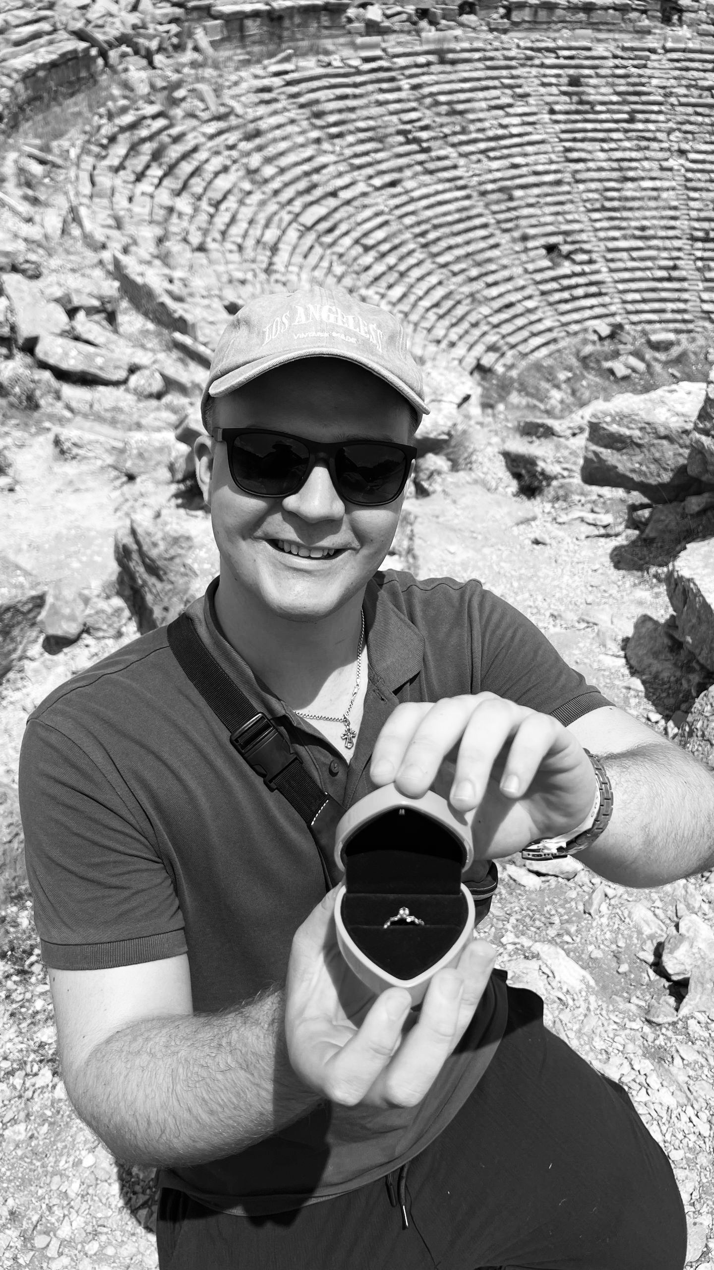 Мы попросили пару итальянцев помочь с видео, и в следующую секунду он встал на одно колено. Я буквально замерла. Настолько, что не сказала «да» сразу. Осознание пришло чуть позже — ровно в тот момент, когда лицо Ильи начало меняться с радостного на очень обеспокоенное: «Почему она молчит?»