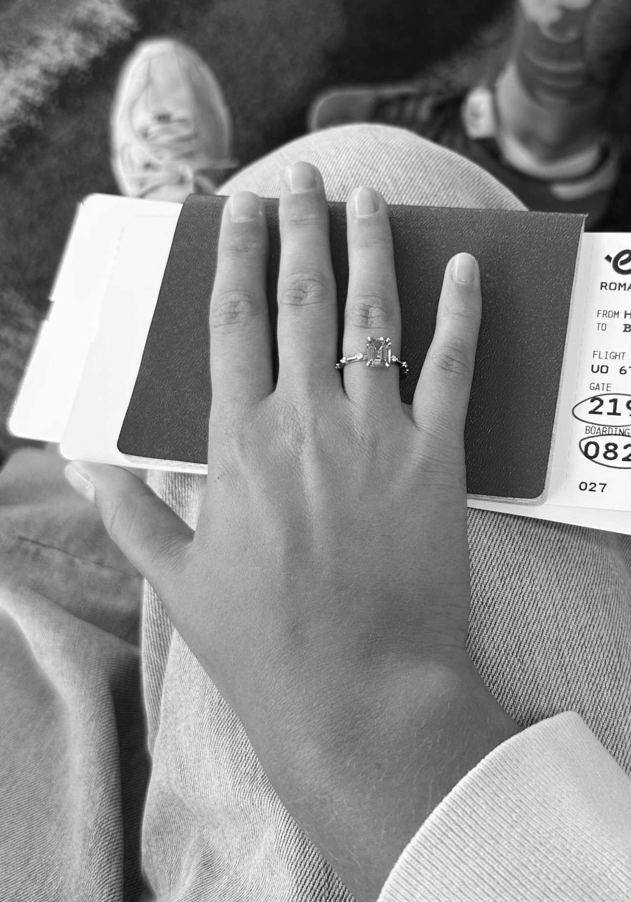 В какой-то момент я решила записать видеокружок подруге. Навела камеру на пейзаж и сказала: «Красота», а потом перевела камеру на своего хмурого парня и добавила: «Не красота». И в этот момент он встал на одно колено. Коробочка с кольцом оказалась перевёрнутой, и первое, что я сказала сквозь смех и слёзы: «Ты переверни хоть коробку».
