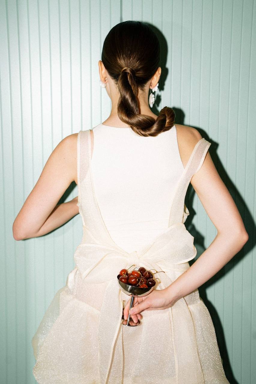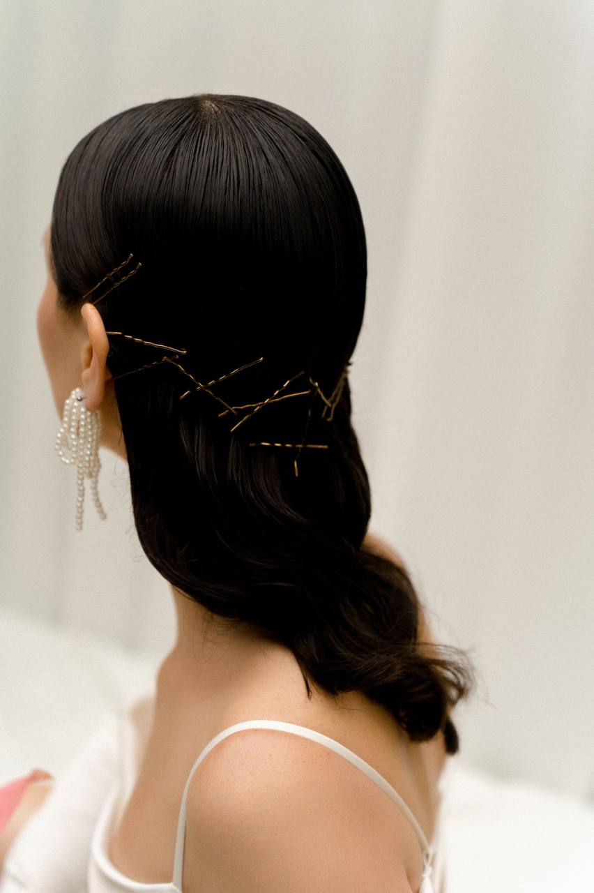 Вариант причёски, если ты не хочешь собирать волосы в пучок, но при этом и не хочешь оставлять их полностью распущенными. Очень красиво смотрится со скульптурными платьями.