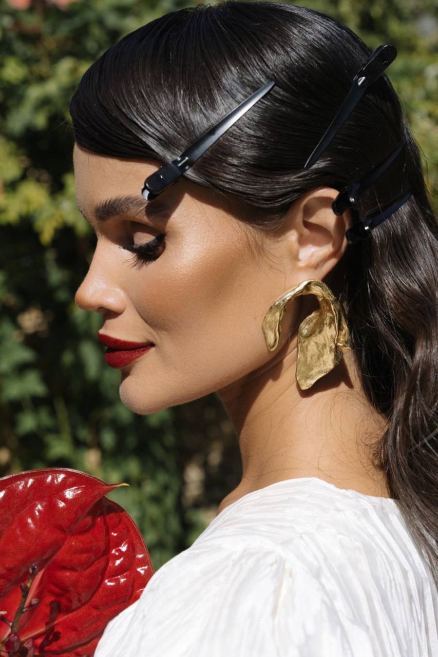 Причёска, когда пряди у лица красиво собраны, а остальная часть волос остаётся естественной и свободной — идеально подходит для мягких воздушных образов.