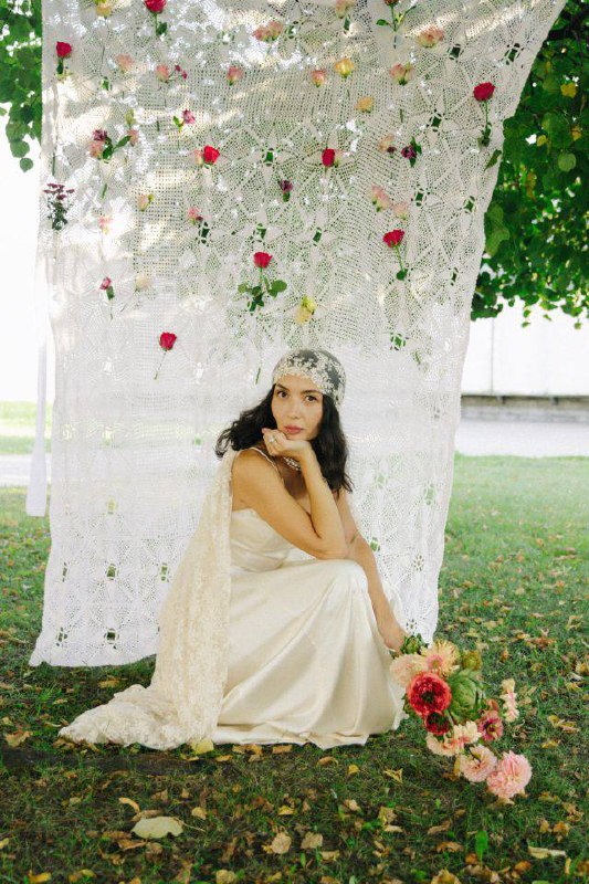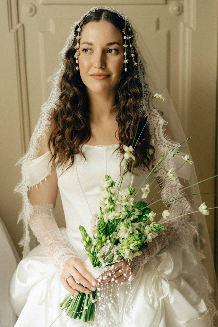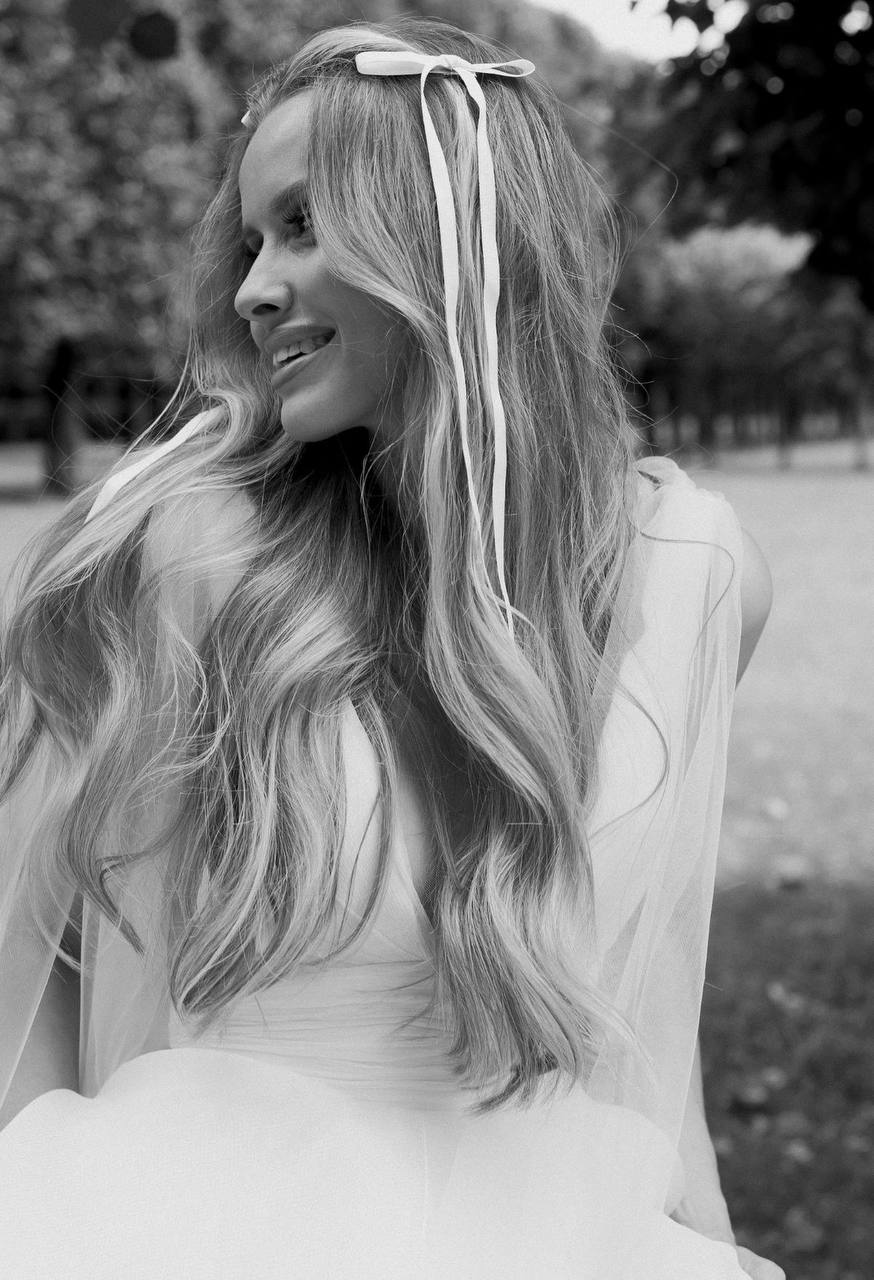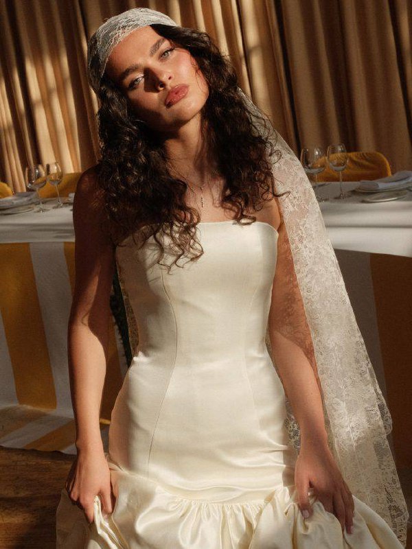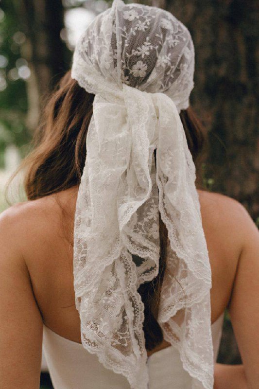 Косынка или шёлковый платок — стильная альтернатива традиционной фате и тренд последних сезонов. Её можно вплести в косу, завязать поверх пучка или носить как акцентный аксессуар на распущенных волосах.