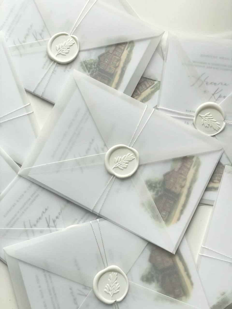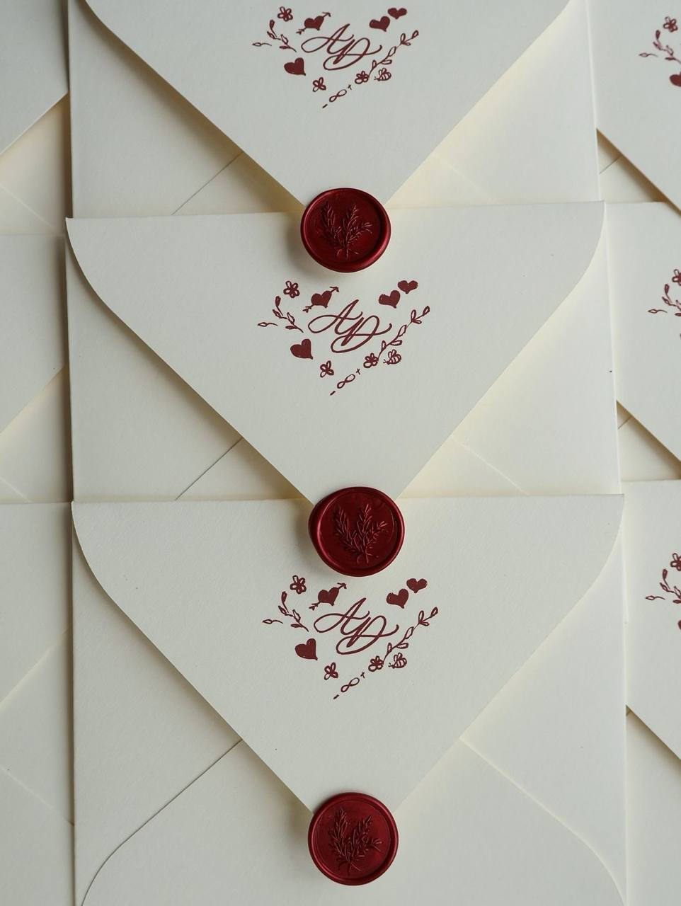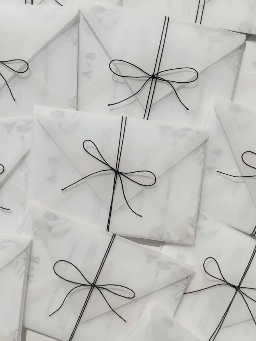 При этом бумага может быть как обычная, плотная, так и крафтовая, мягкая, бархатная или с тиснением. Дополнительно украсить приглашения можно шёлковыми лентами, живыми цветами или сургучной печатью. Или вовсе сделать приглашения из стекла, фольги, спила дерева или ткани.