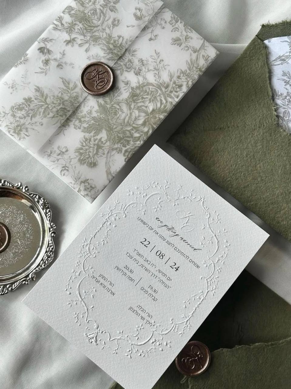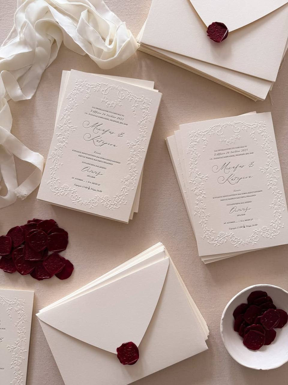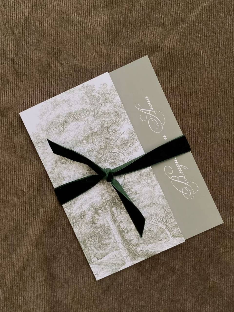 При этом бумага может быть как обычная, плотная, так и крафтовая, мягкая, бархатная или с тиснением. Дополнительно украсить приглашения можно шёлковыми лентами, живыми цветами или сургучной печатью. Или вовсе сделать приглашения из стекла, фольги, спила дерева или ткани.