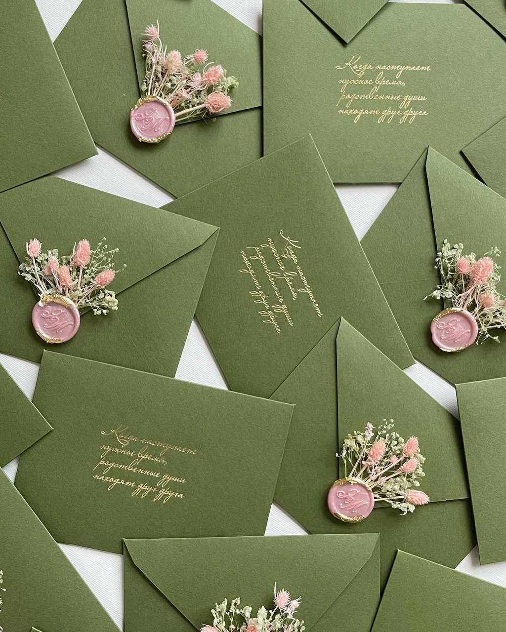 Но не переживайте, если у вас нет в бюджете больших сумм на полиграфию: дизайн приглашений можно найти в интернете или создать самим. А если у вас небольшое число гостей, можно даже сделать приглашения своими руками. Пусть они получатся неидеальными, зато точно будут уникальными.