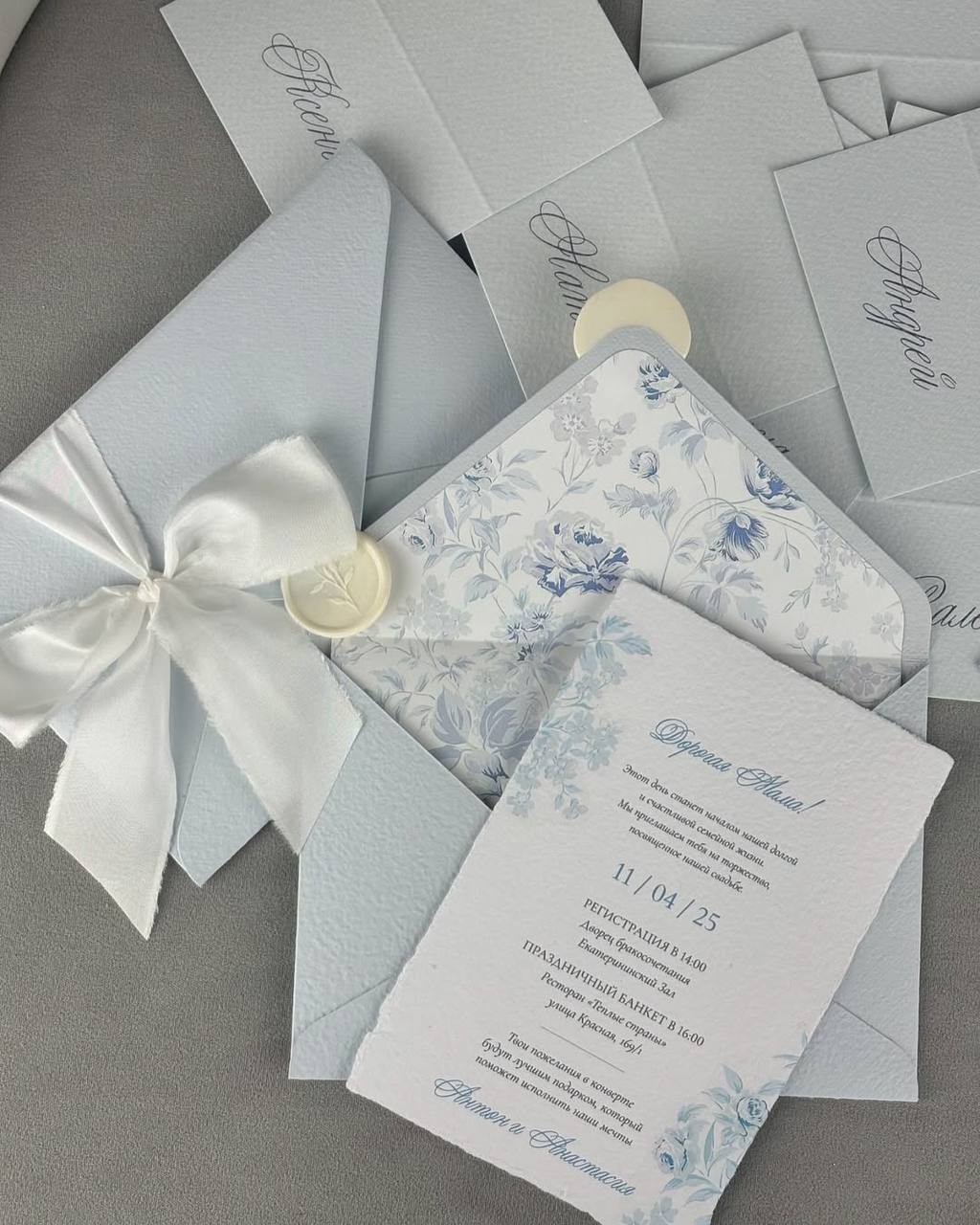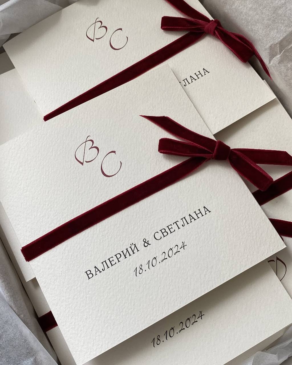 Общий вид приглашения диктует свадебная стилистика — это может быть рельефная бумага, строгий минимализм, акварельные иллюстрации, романтичная каллиграфия или крафт-бумага для рустик-свадьбы.
