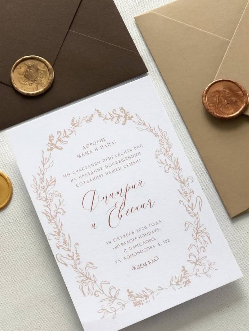 - Размер и формат приглашения (учитывай, что для нестандартных вариантов сложнее подобрать конверты).