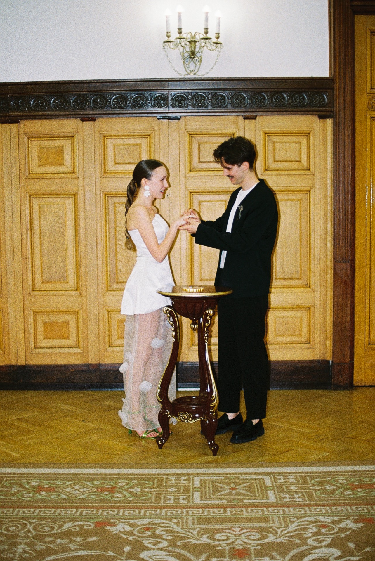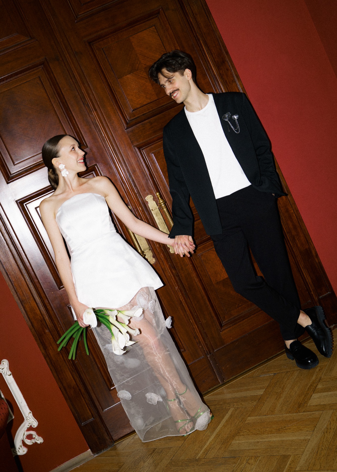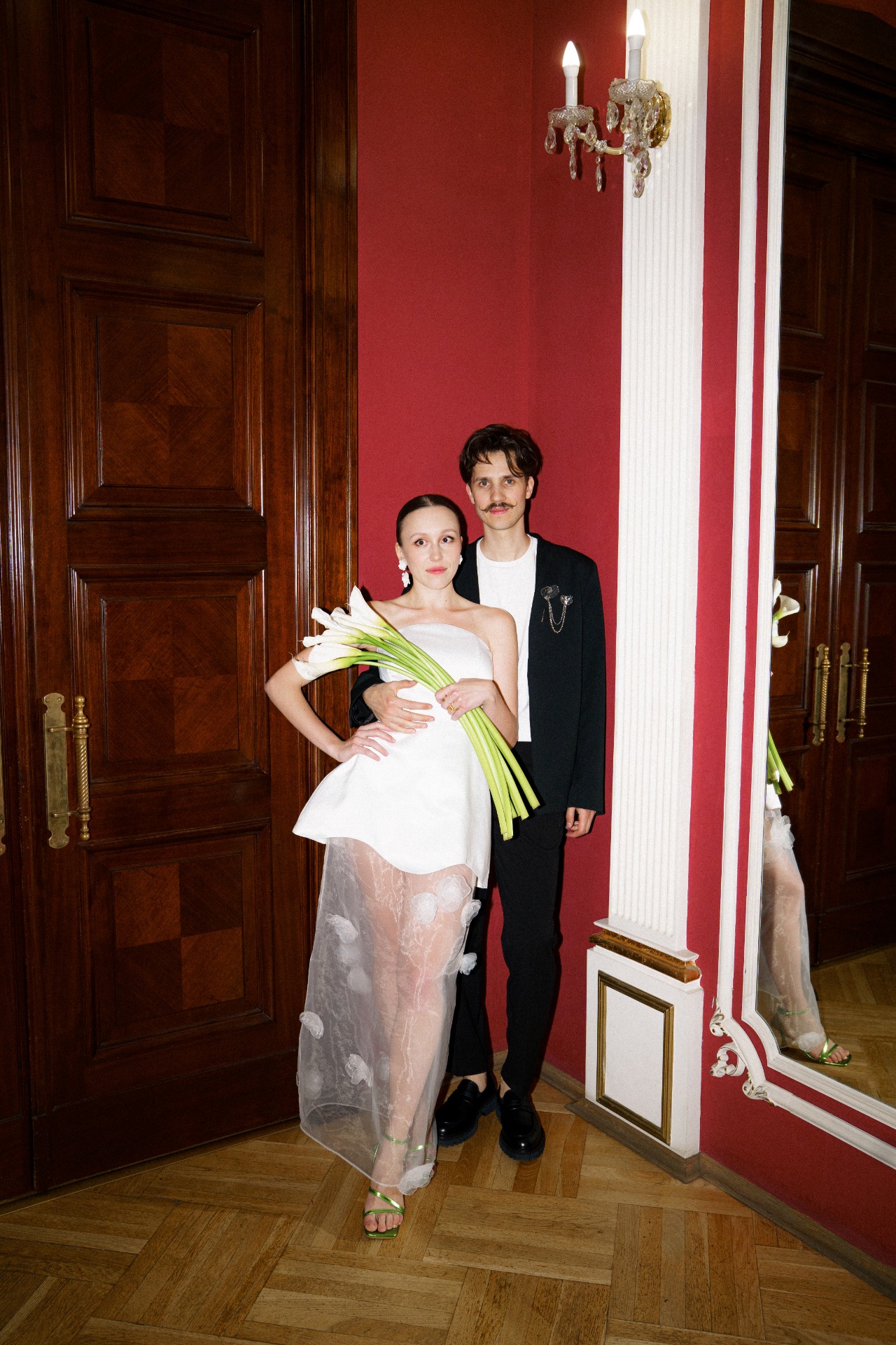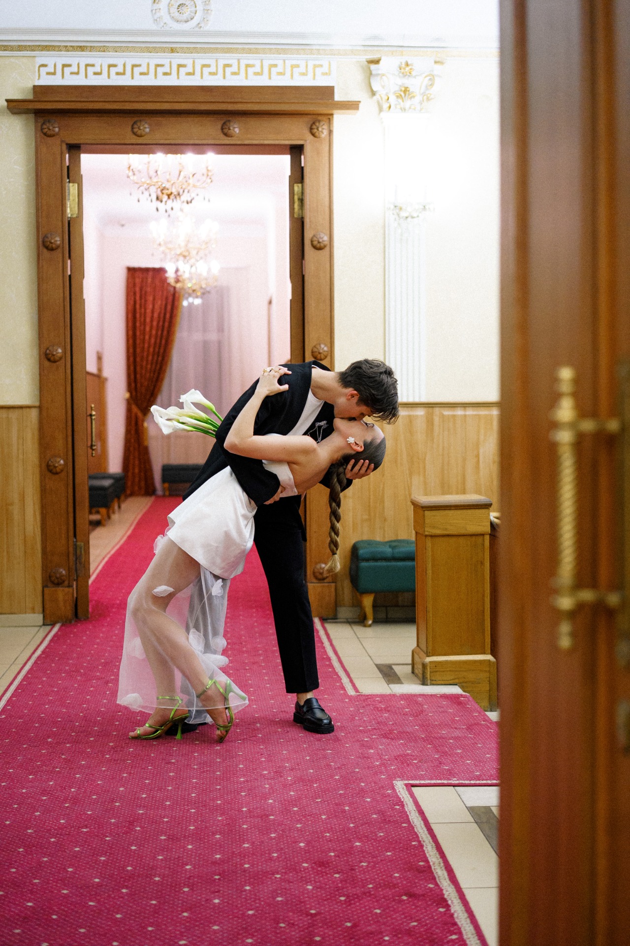 А вместо типичного «утра невесты» мы провели парную фотосессию перед поездкой в ЗАГС в 22:30. Все наряды для съёмки нам стилизовала Вита Веденьёва, которая также отвечала за мой макияж и причёску.