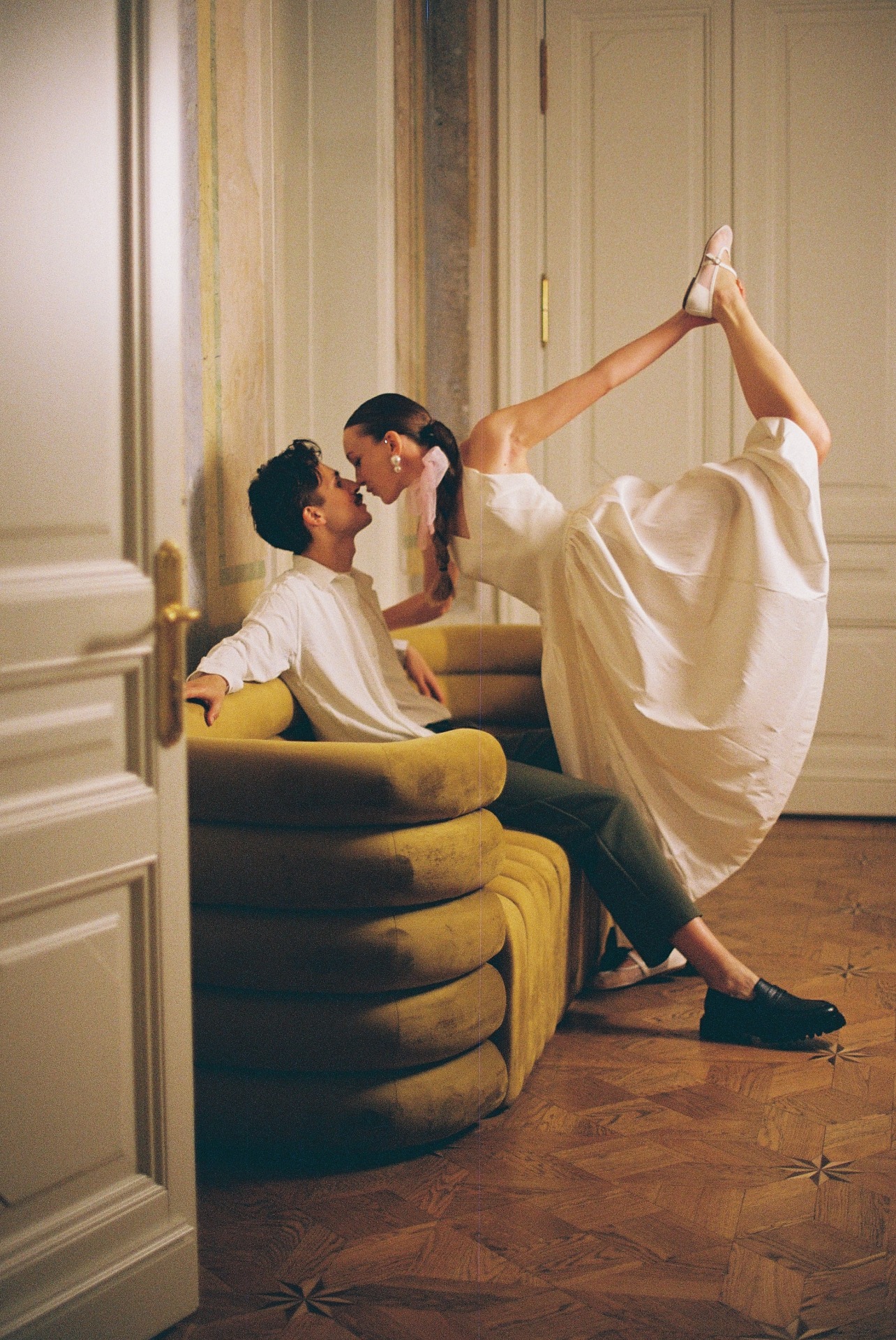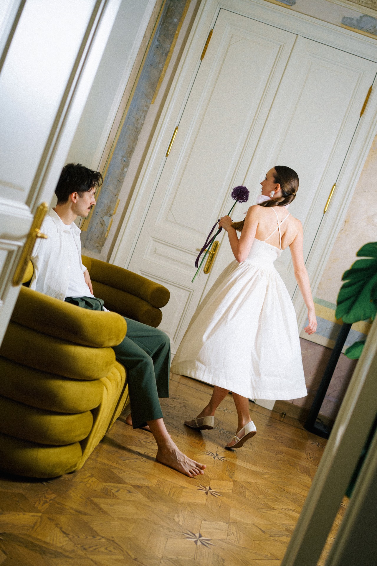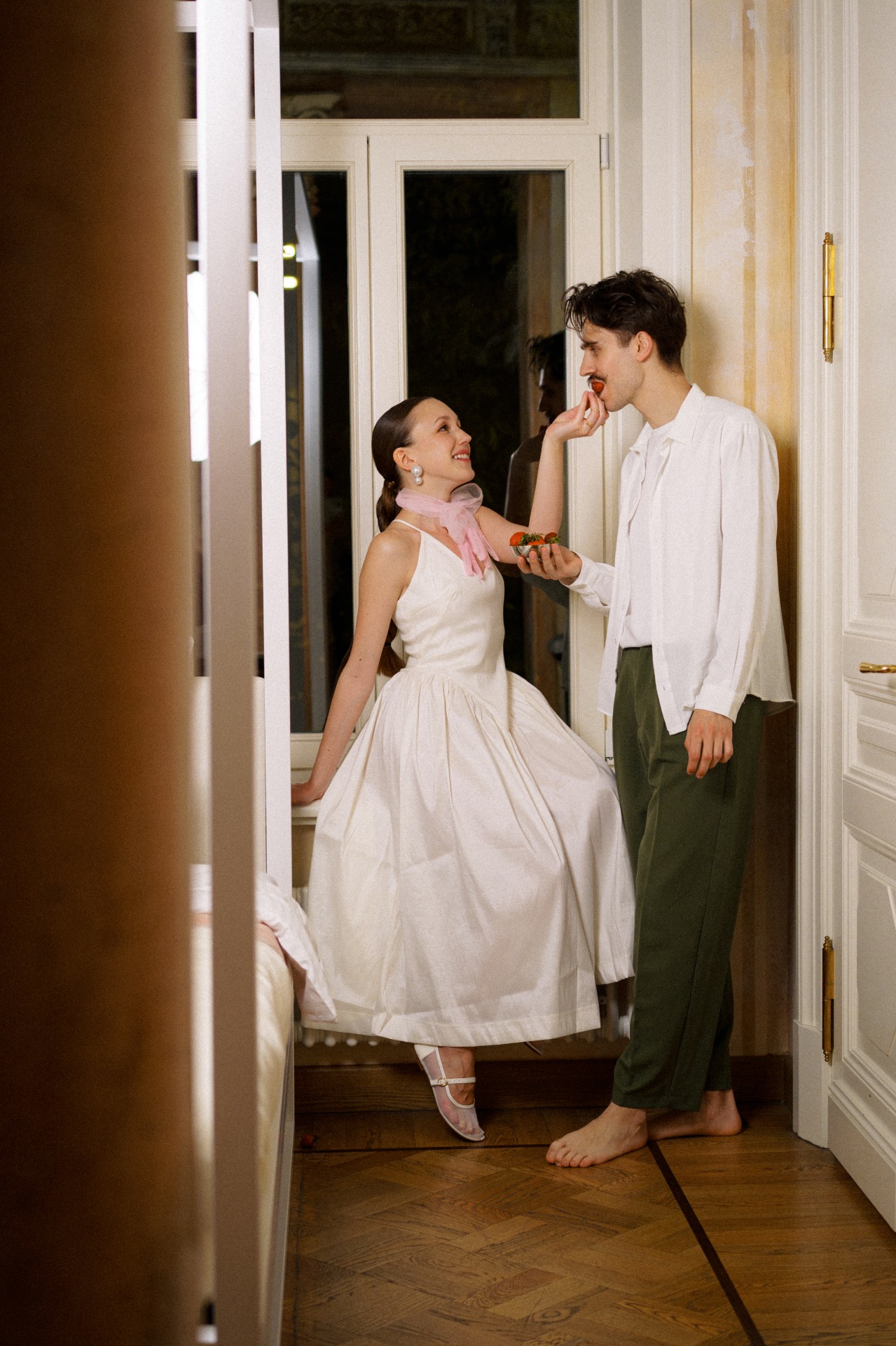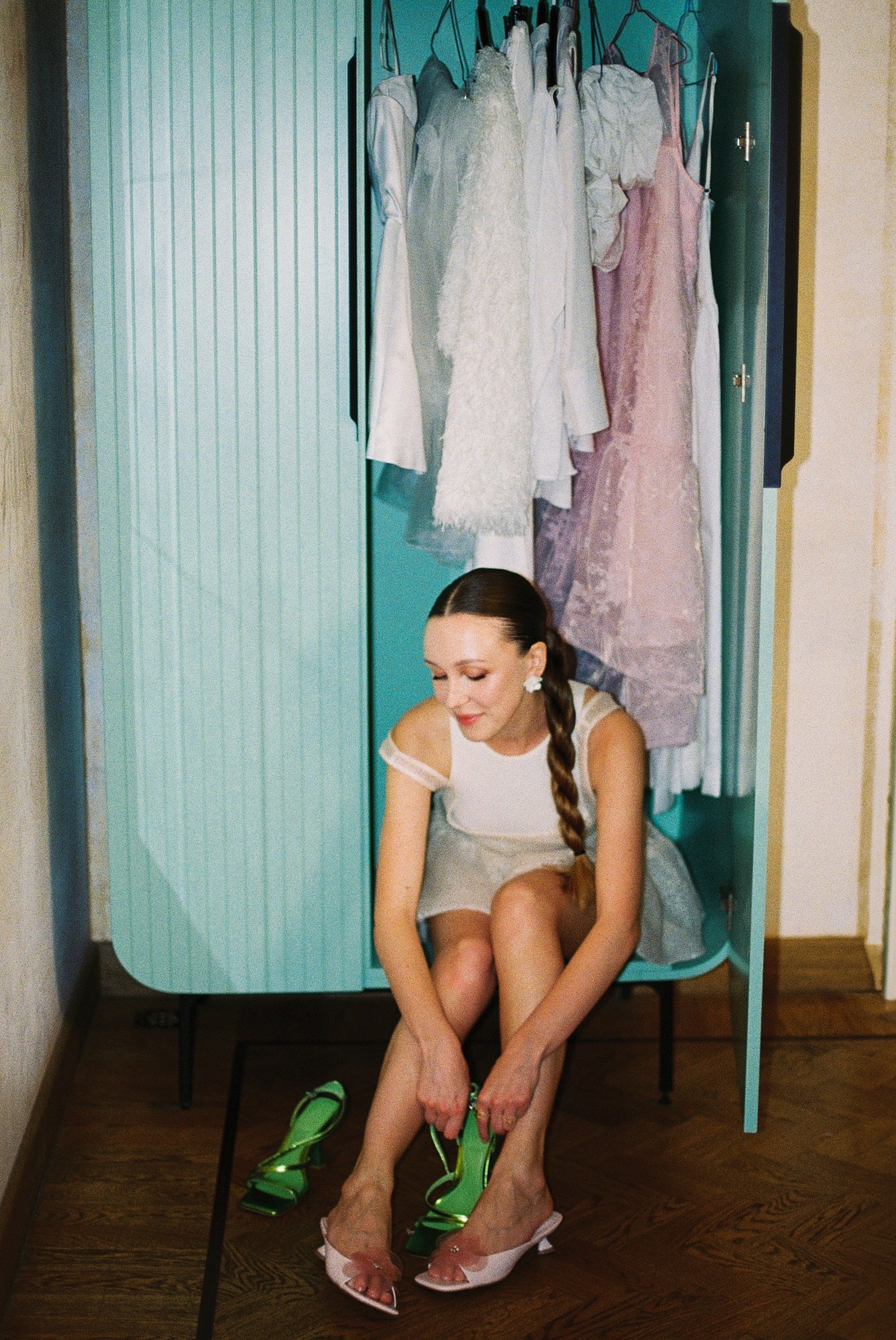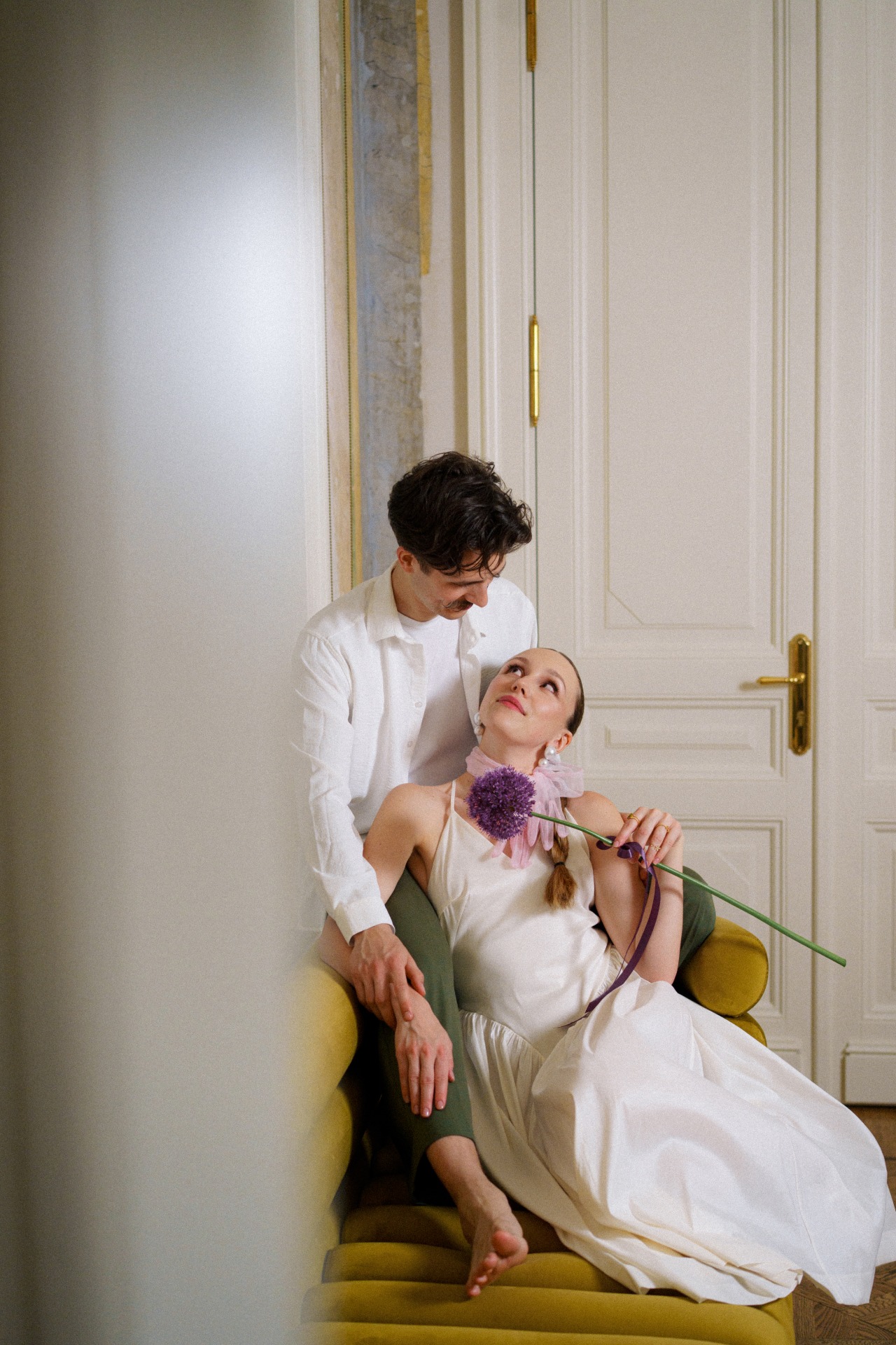 А вместо типичного «утра невесты» мы провели парную фотосессию перед поездкой в ЗАГС в 22:30. Все наряды для съёмки нам стилизовала Вита Веденьёва, которая также отвечала за мой макияж и причёску.