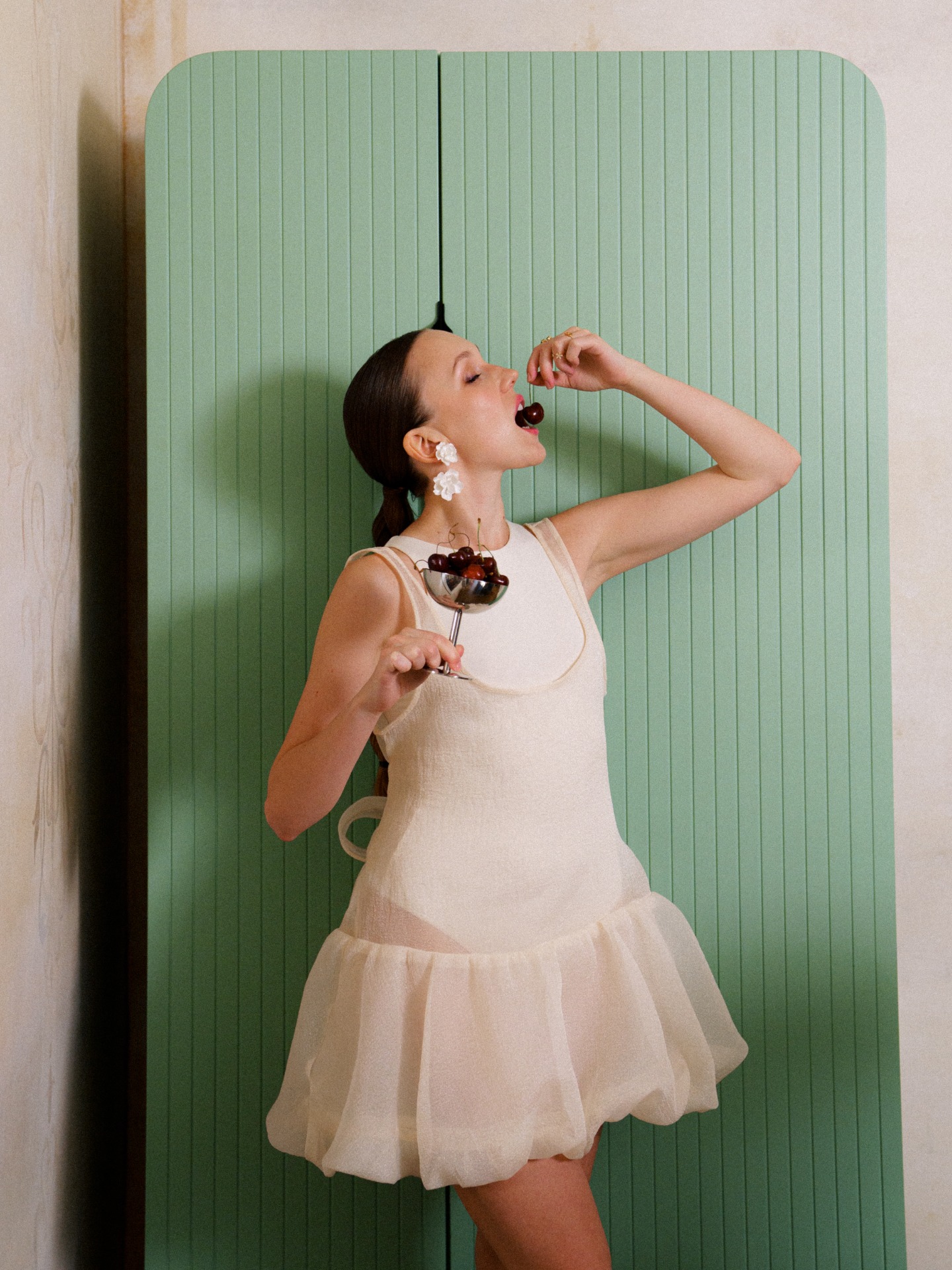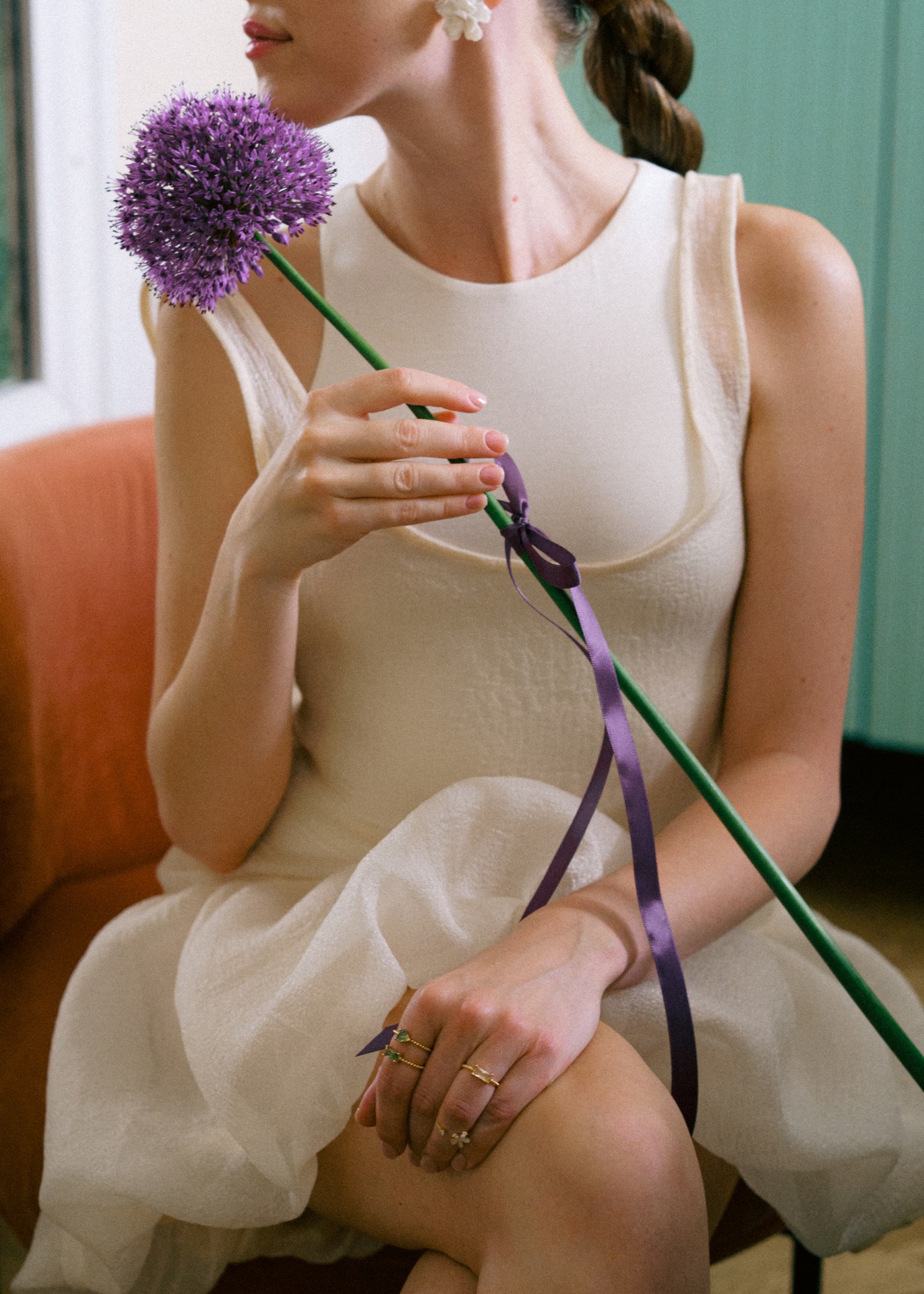 Основное платье было пышным, дополненным аксессуарами ручной работы. Подбор украшений оказался самой сложной задачей: серьги нужного оттенка мне удалось найти только со второй попытки.