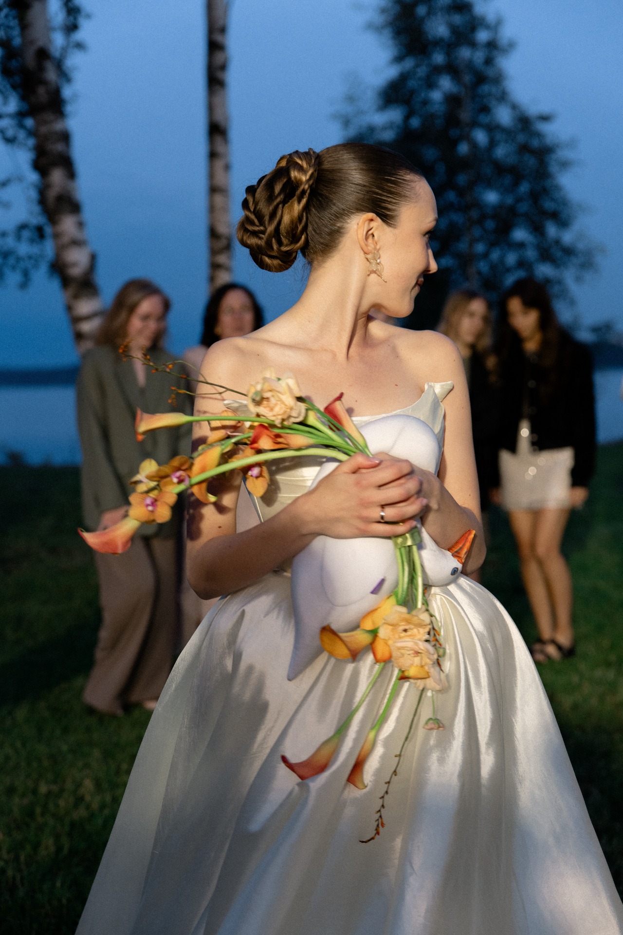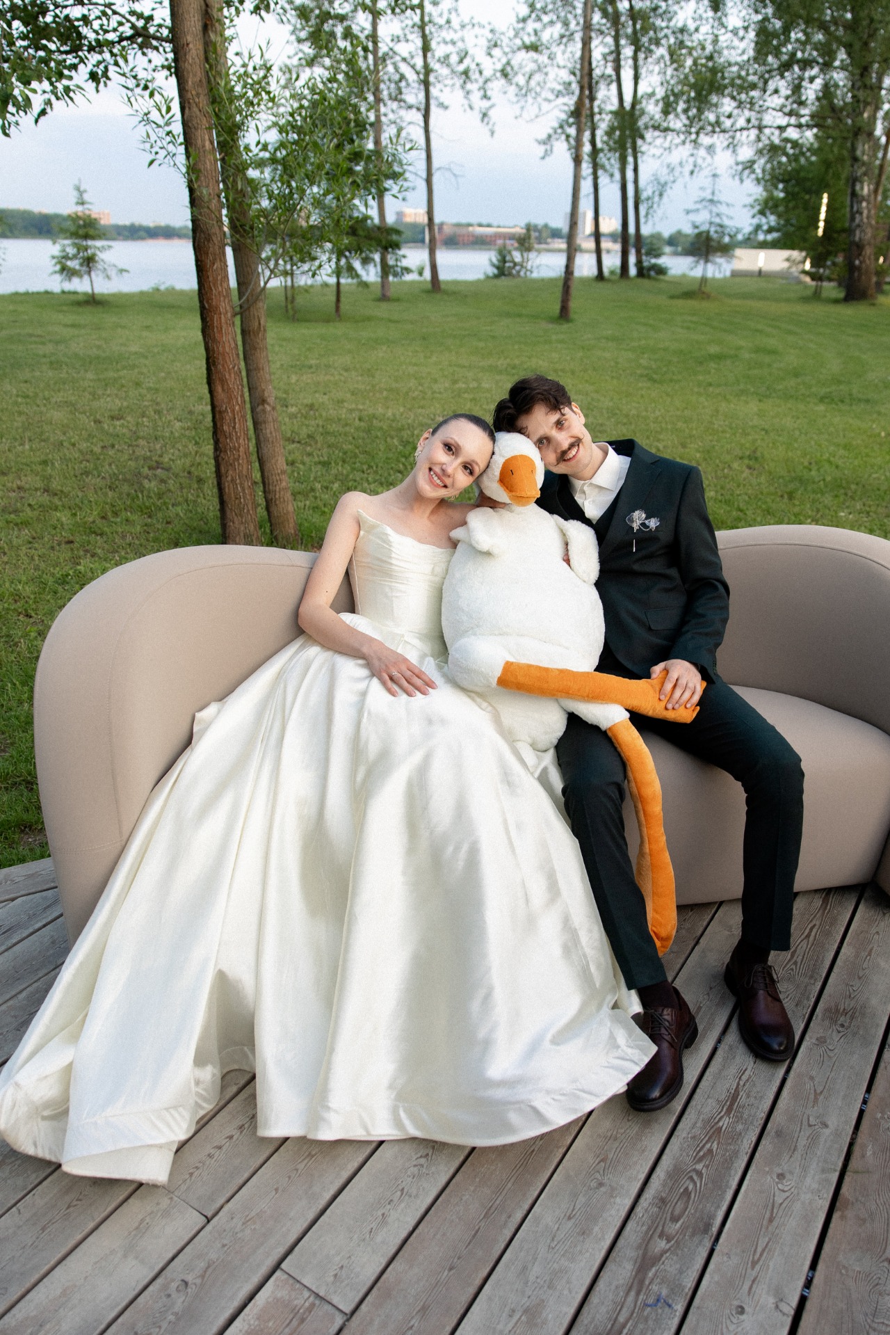 В процессе подготовки мы вместе с командой генерировали идеи, которые смогли бы отразить в свадьбе наши увлечения и историю отношений. Моя фамилия — Гусева, а у Кости — Крылов, и почти вся моя семья носит «птичьи» фамилии: Орлова, Уткина, Лебедева. Так родился символ праздника — гусь.
