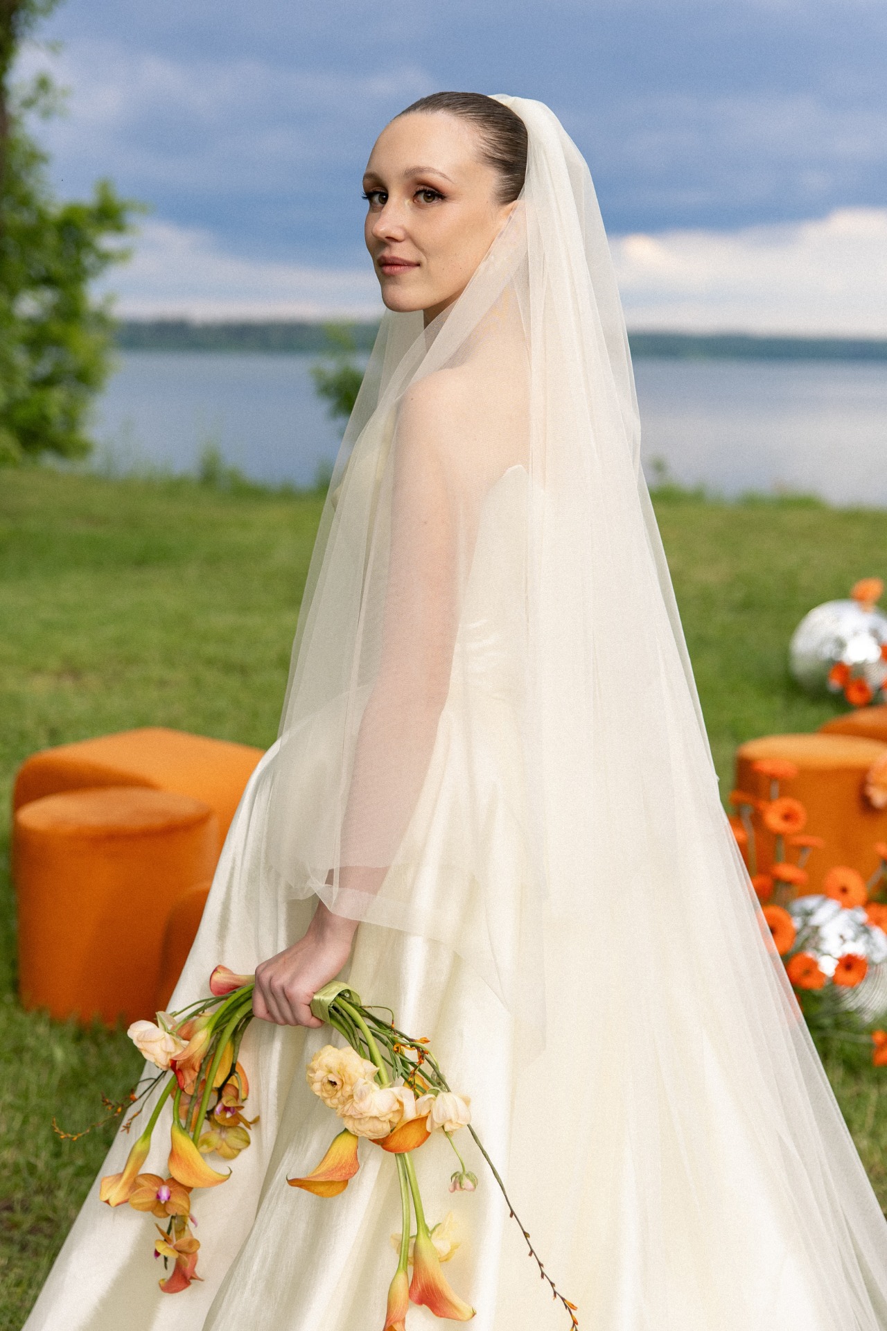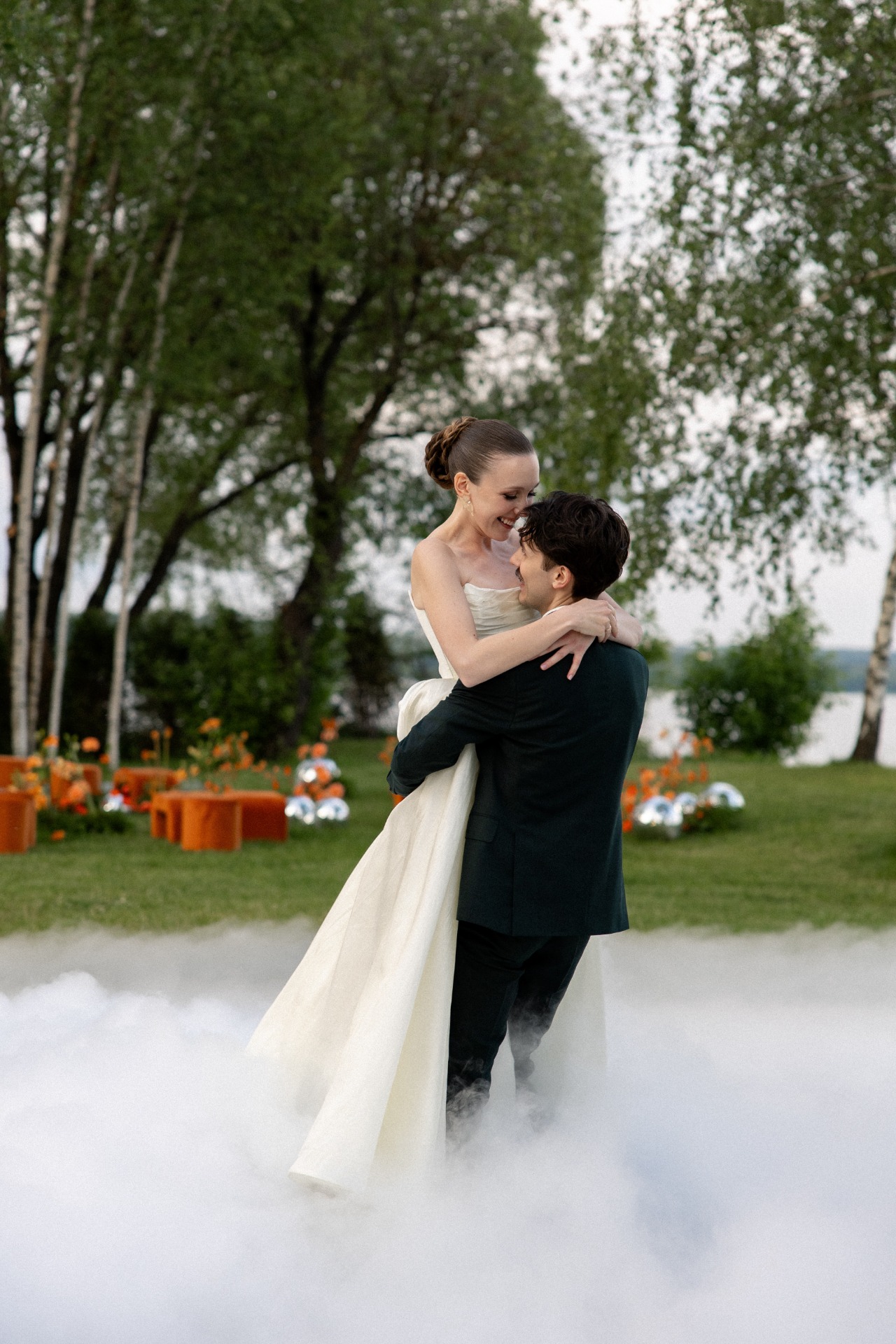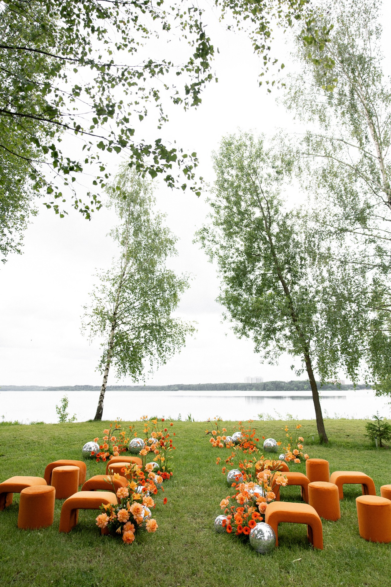 В зоне церемонии мы использовали изогнутые пуфы как отсылку к тем самым мостам, которые однажды не развелись.