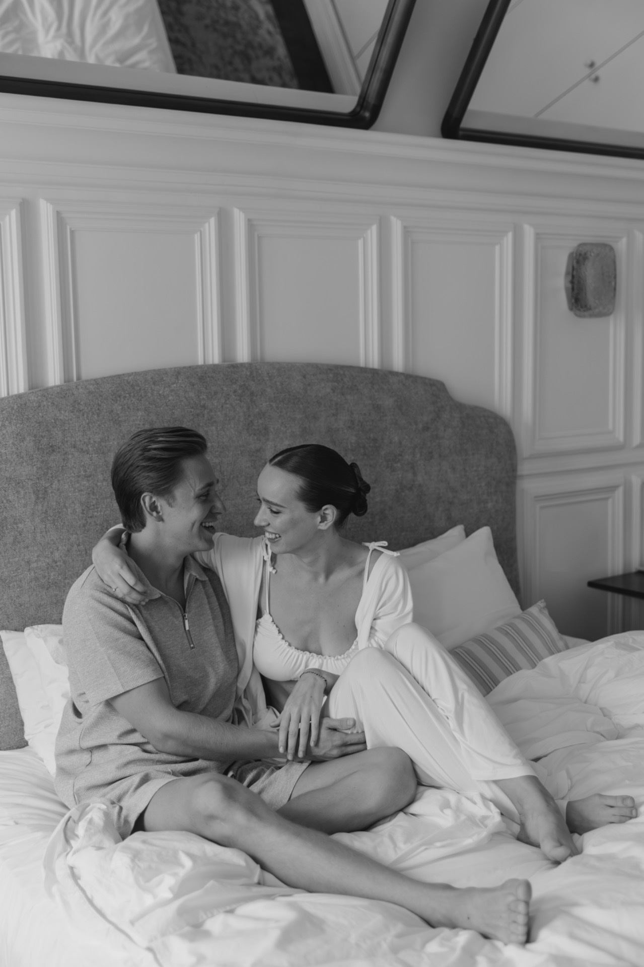 Предложение Назар сделал спустя три с половиной года. Мы проводили зиму в Турции, и в один день он пригласил меня на свидание к морю. Когда я пришла в указанное место, то увидела плед, пиццу и шампанское. Это было невероятно романтично. А в конце вечера он встал на колено и сказал: «Я хочу отправиться с тобой в путешествие под названием семья».