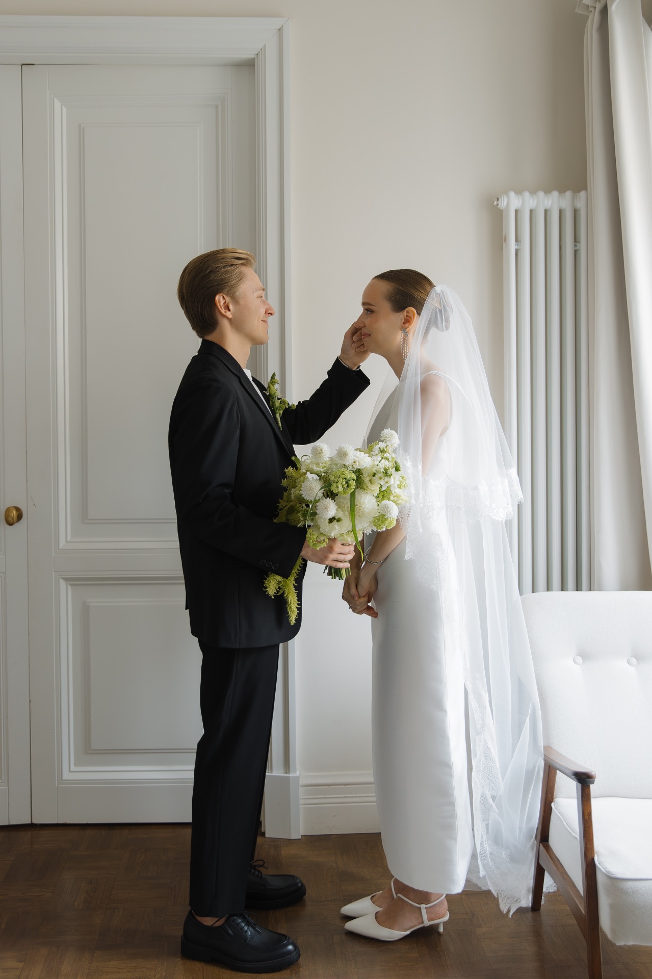 Наше утро мы провели в апартаментах в центре Петербурга. Мы читали клятвы, стоя спинами друг к другу, и плакали при первой встрече в свадебных образах.