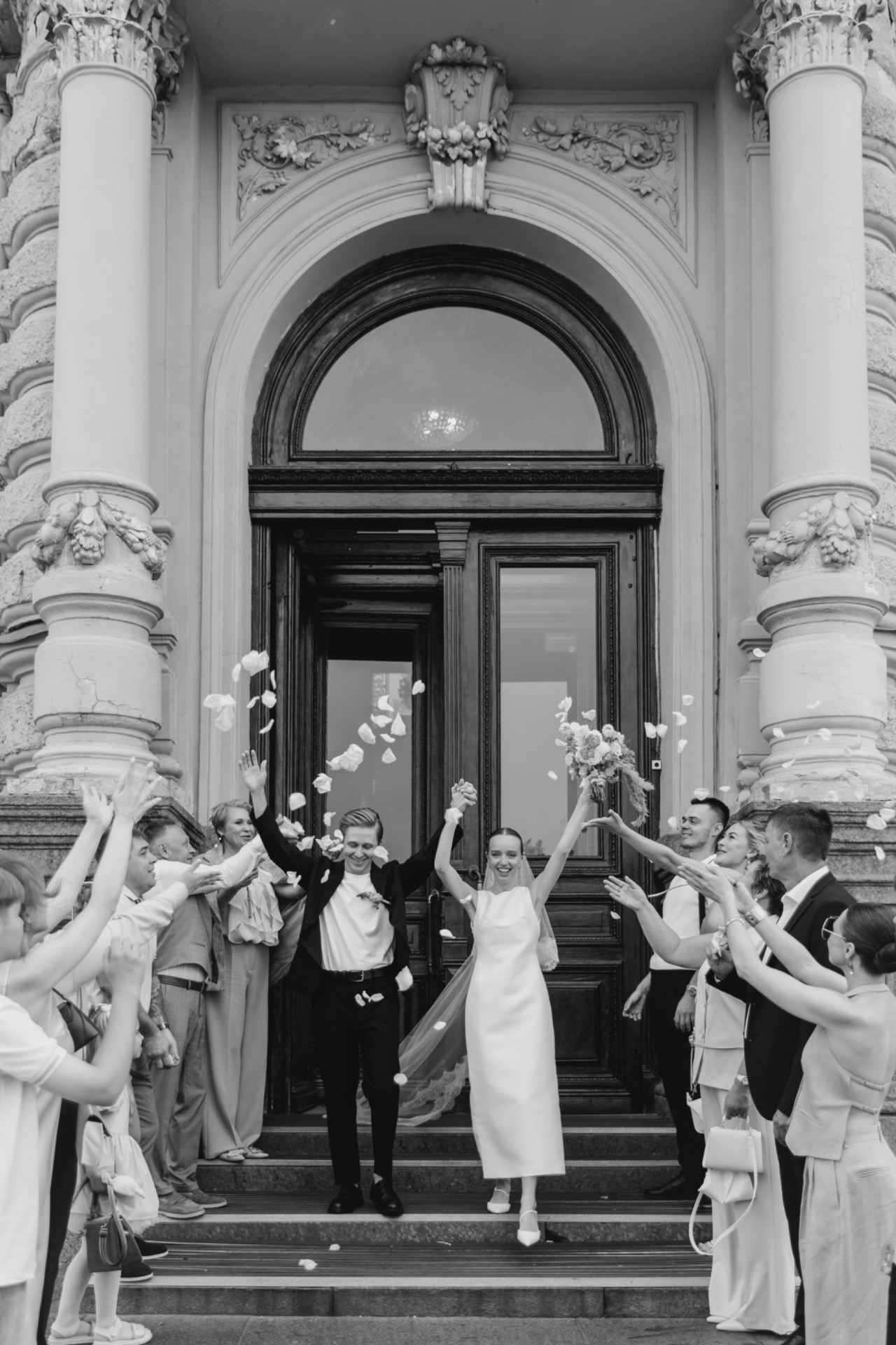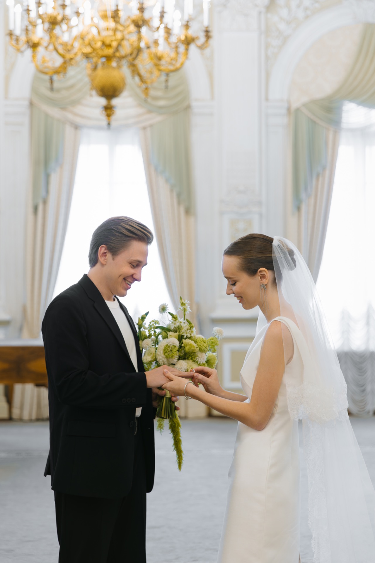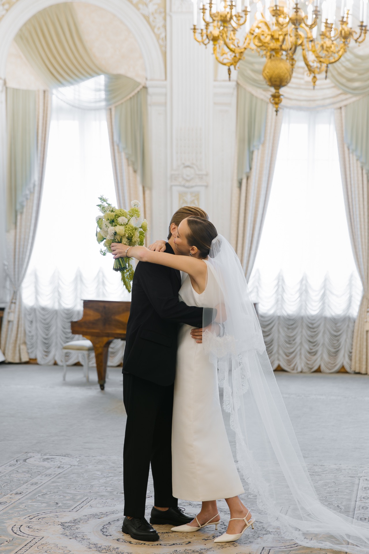 Роспись прошла в Первом дворце бракосочетания. Этот момент стал самым запоминающимся за весь день, слёзы во время церемонии лились рекой и у нас, и у гостей. А внутри бушевали чувства: счастье и эйфория вперемешку с волнением.