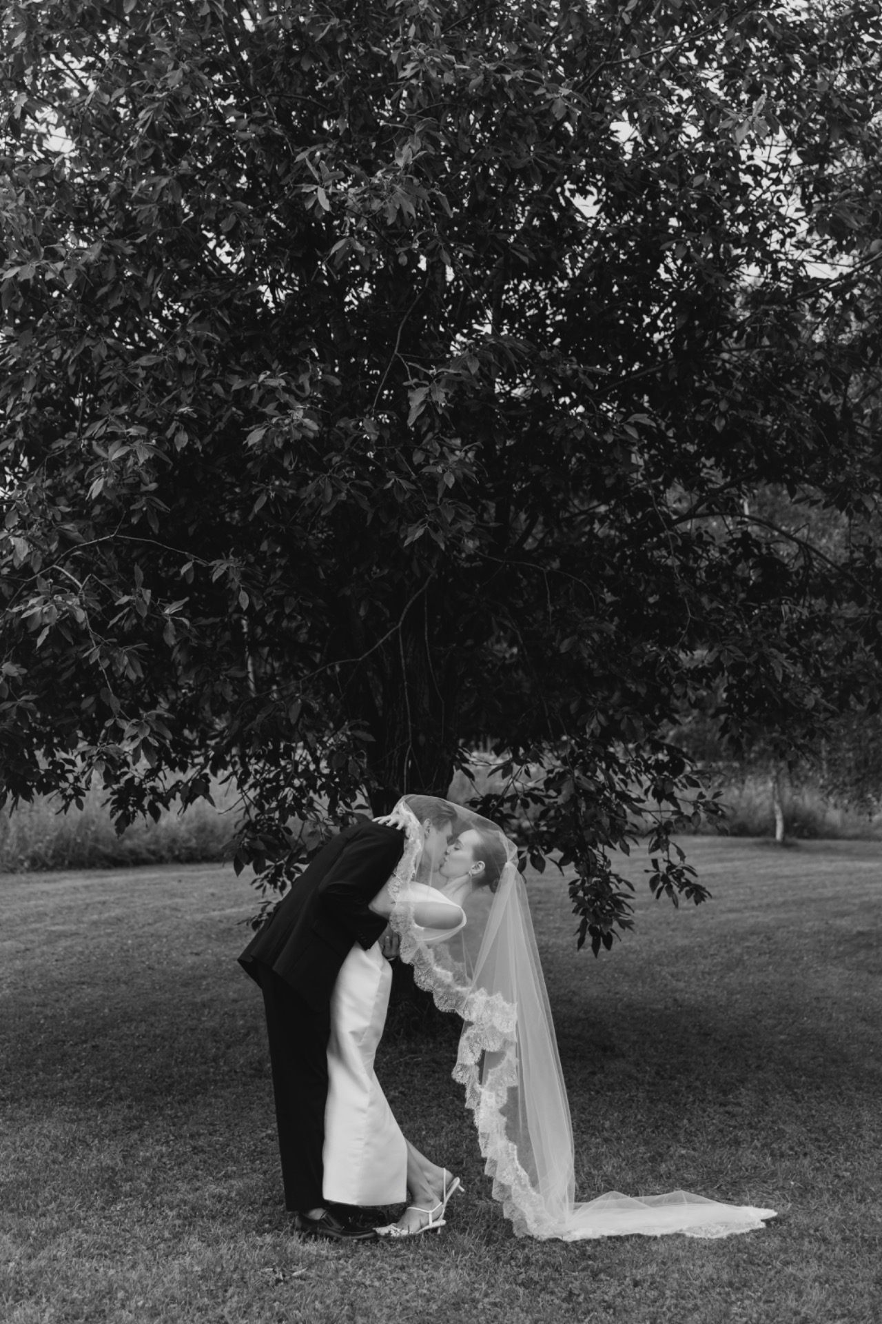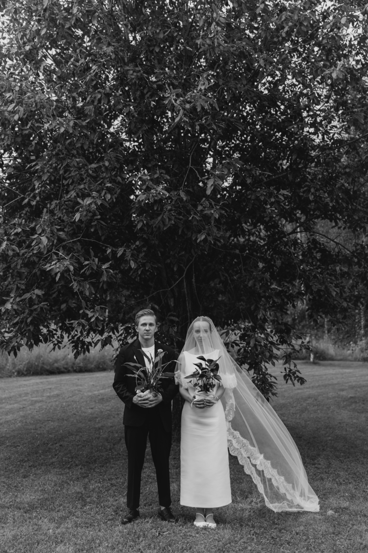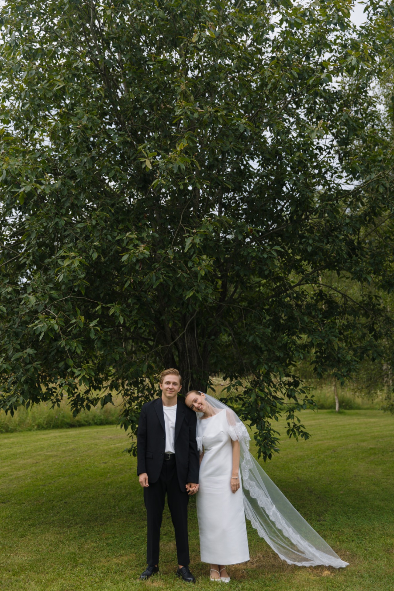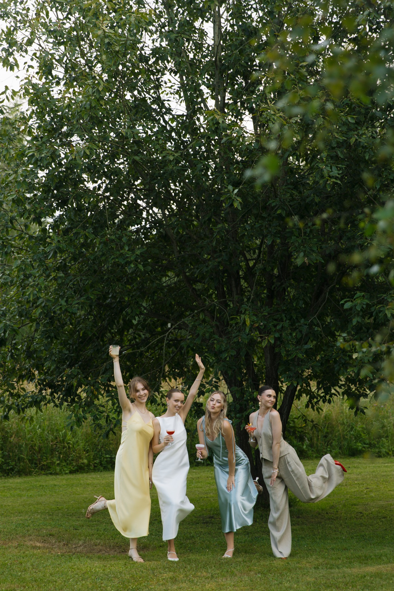 Мы решили пожениться через год и начали готовиться к свадьбе заранее. Мы сразу знали, что хотим камерный праздник на природе, в семейной атмосфере. В центре нашей концепции была идея одного длинного стола в поле под большими деревьями, где будут только мы и наши близкие люди.