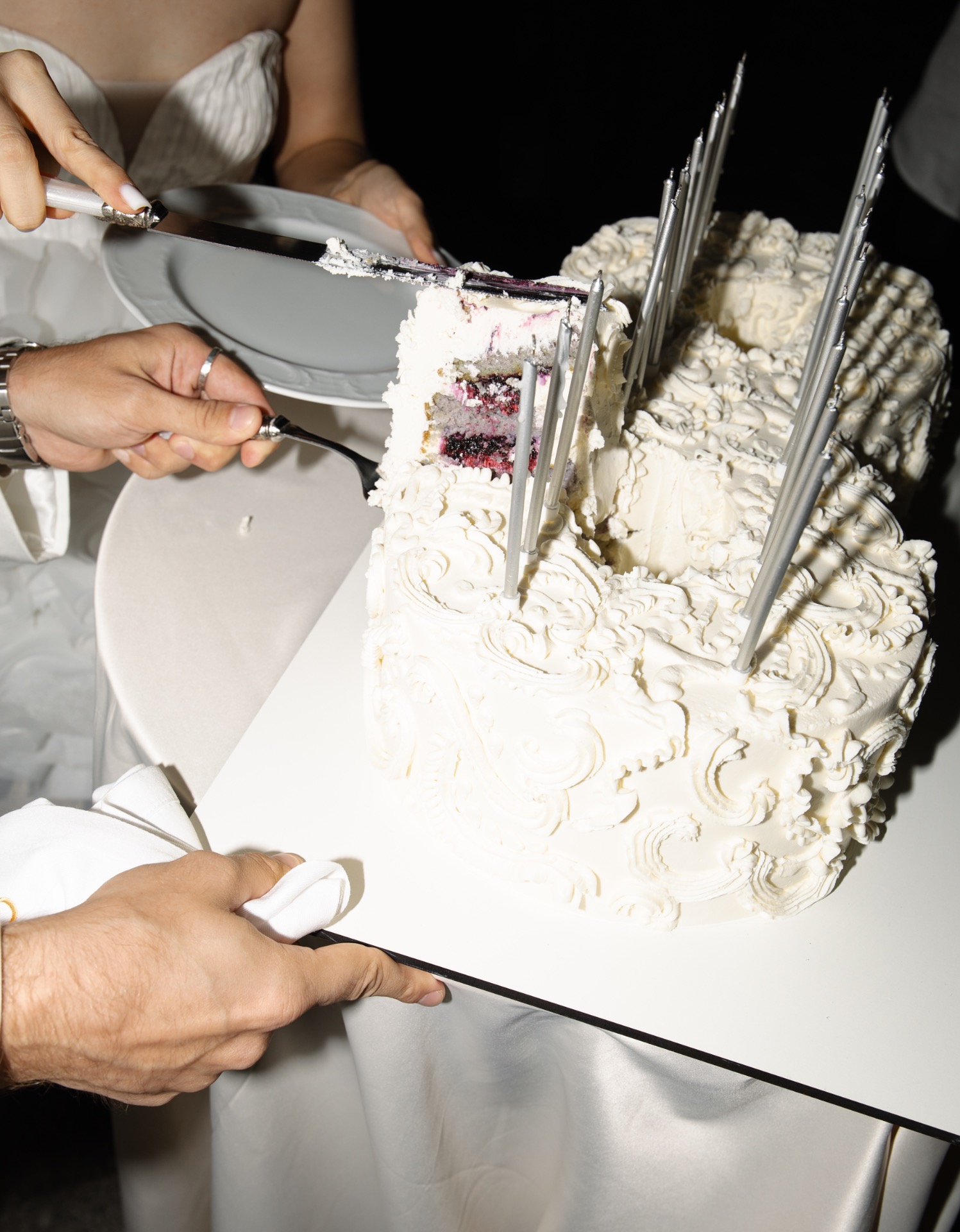 Бантики в декоре, как бантики Арины, что очаровали Дмитрия 1 сентября в первом классе, повторяли знак бесконечности. Торт также был выполнен в форме символа бесконечности и обозначал начало нового путешествия, в которое пара отправилась в тот день.