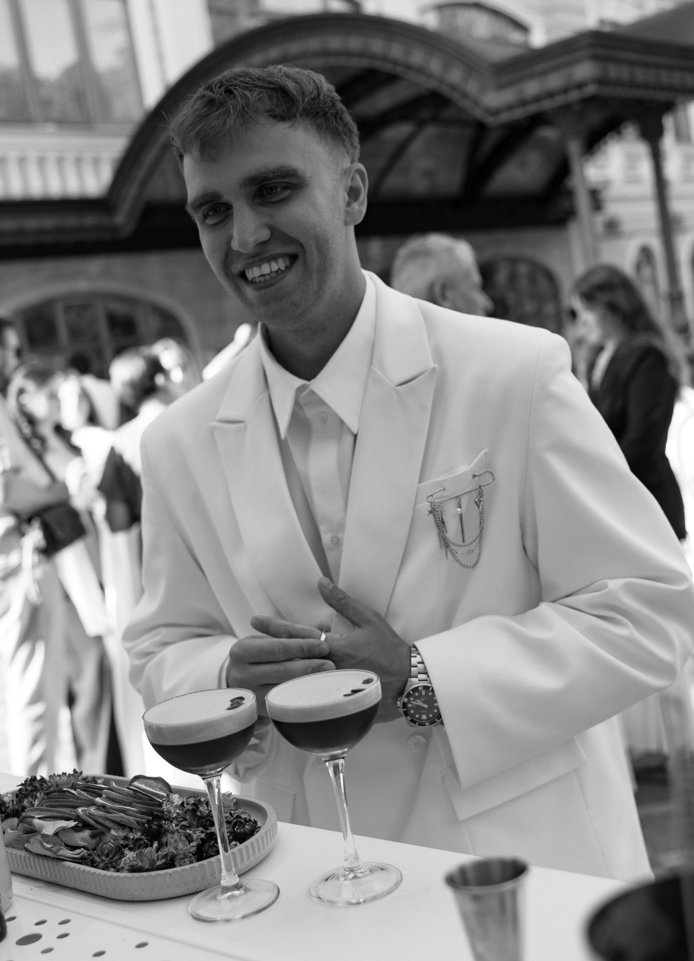 Одной из фишек свадьбы стал кофе-бар, ведь кофе — любимый напиток молодожёнов. В меню были летние и бодрящие позиции: Espresso Martini, Ice Latte, Bumble, Espresso Tonic.