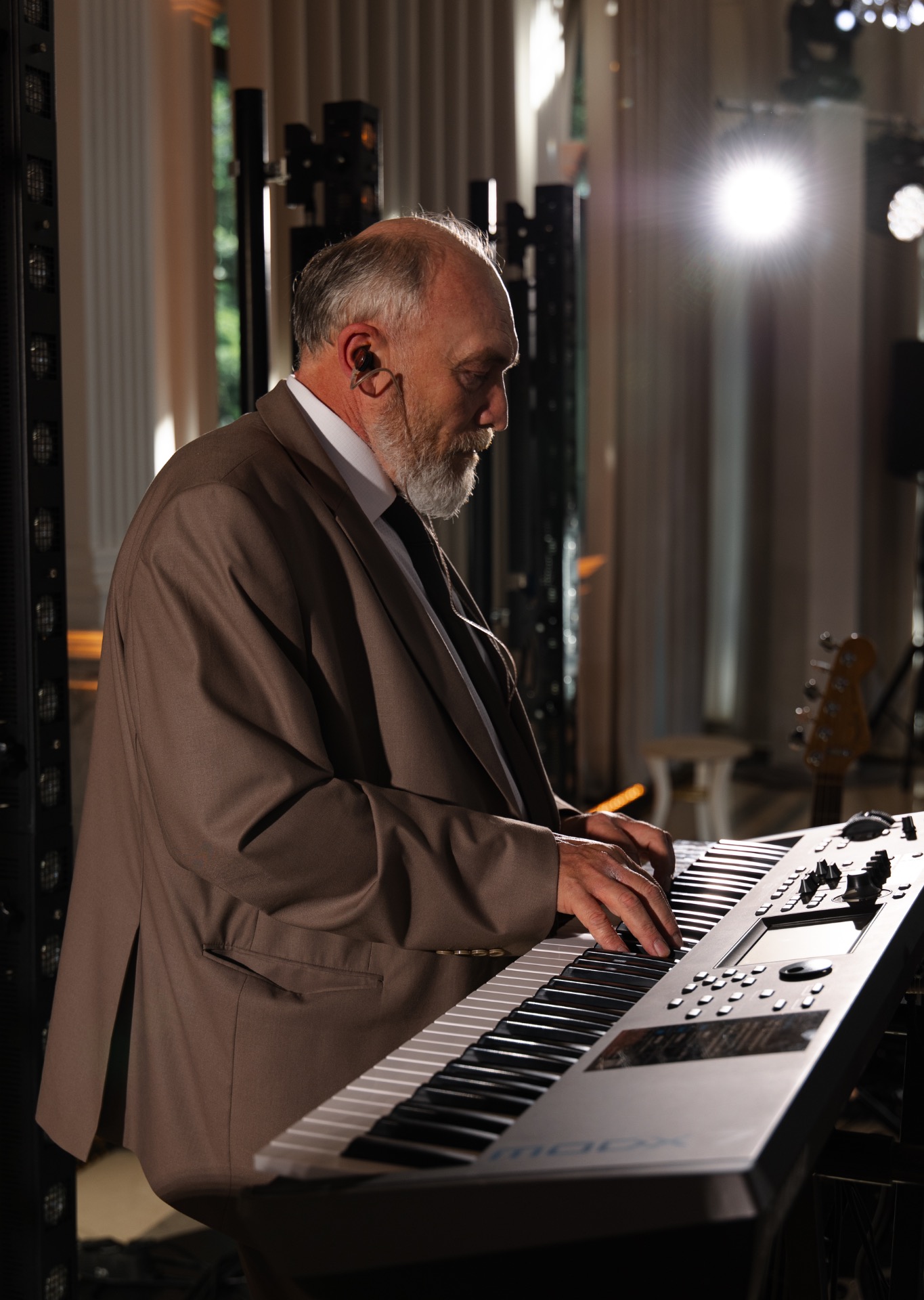 Вечеринку продолжила кавер-группа, а семьи Арины и Димы стали частью программы, объединившись в унисон: папа Димы исполнил знакомые всем мелодии на синтезаторе.