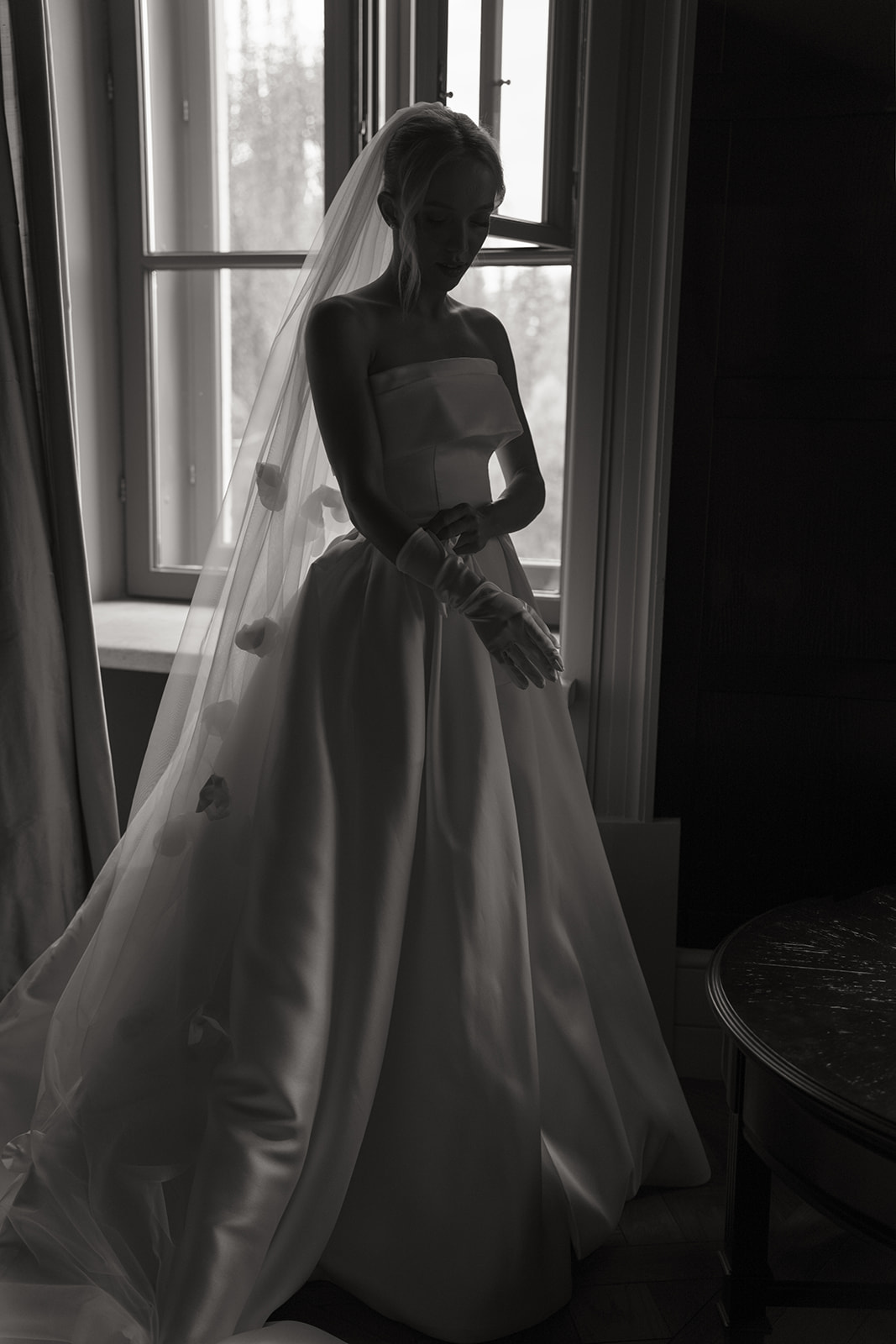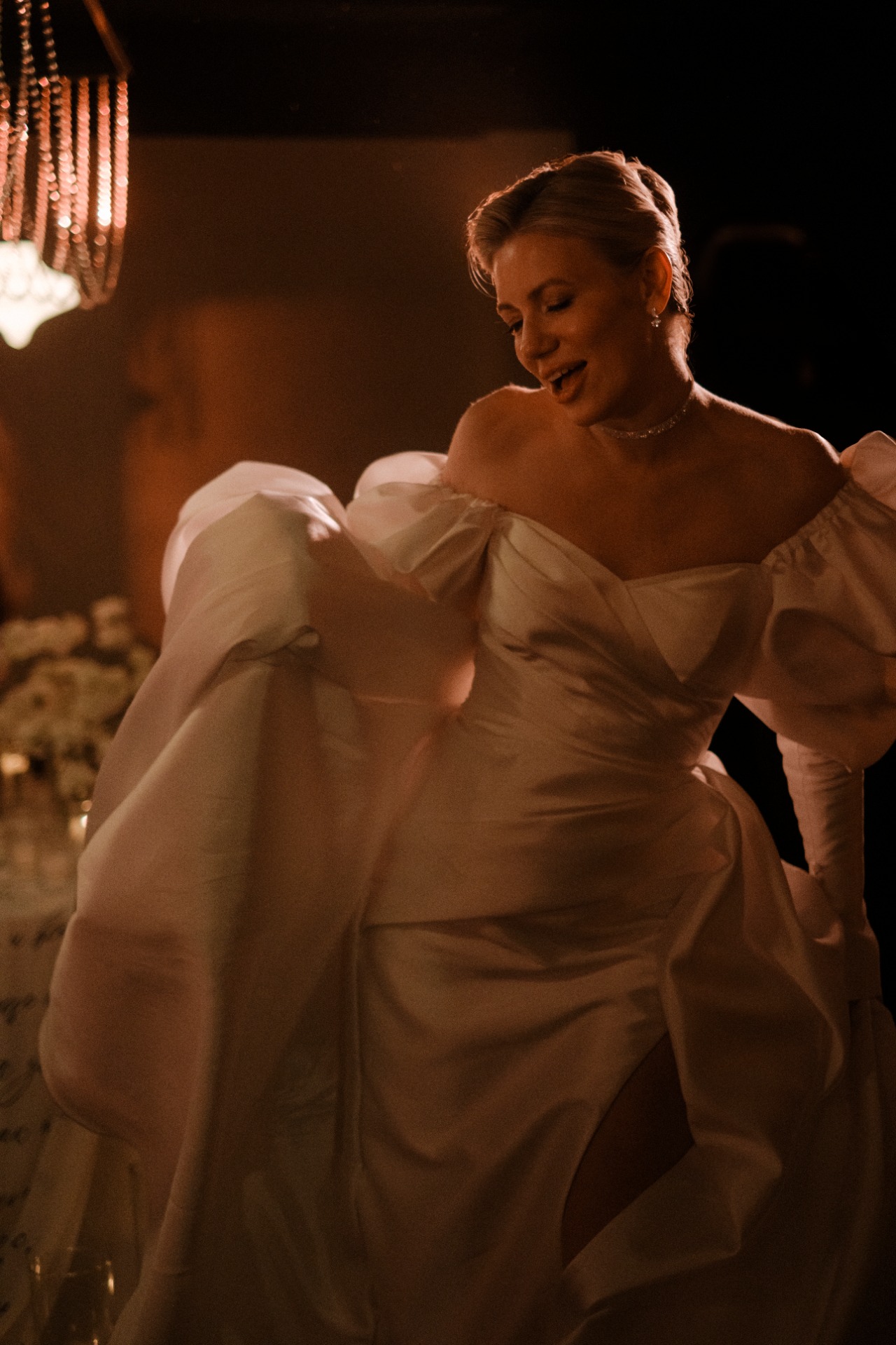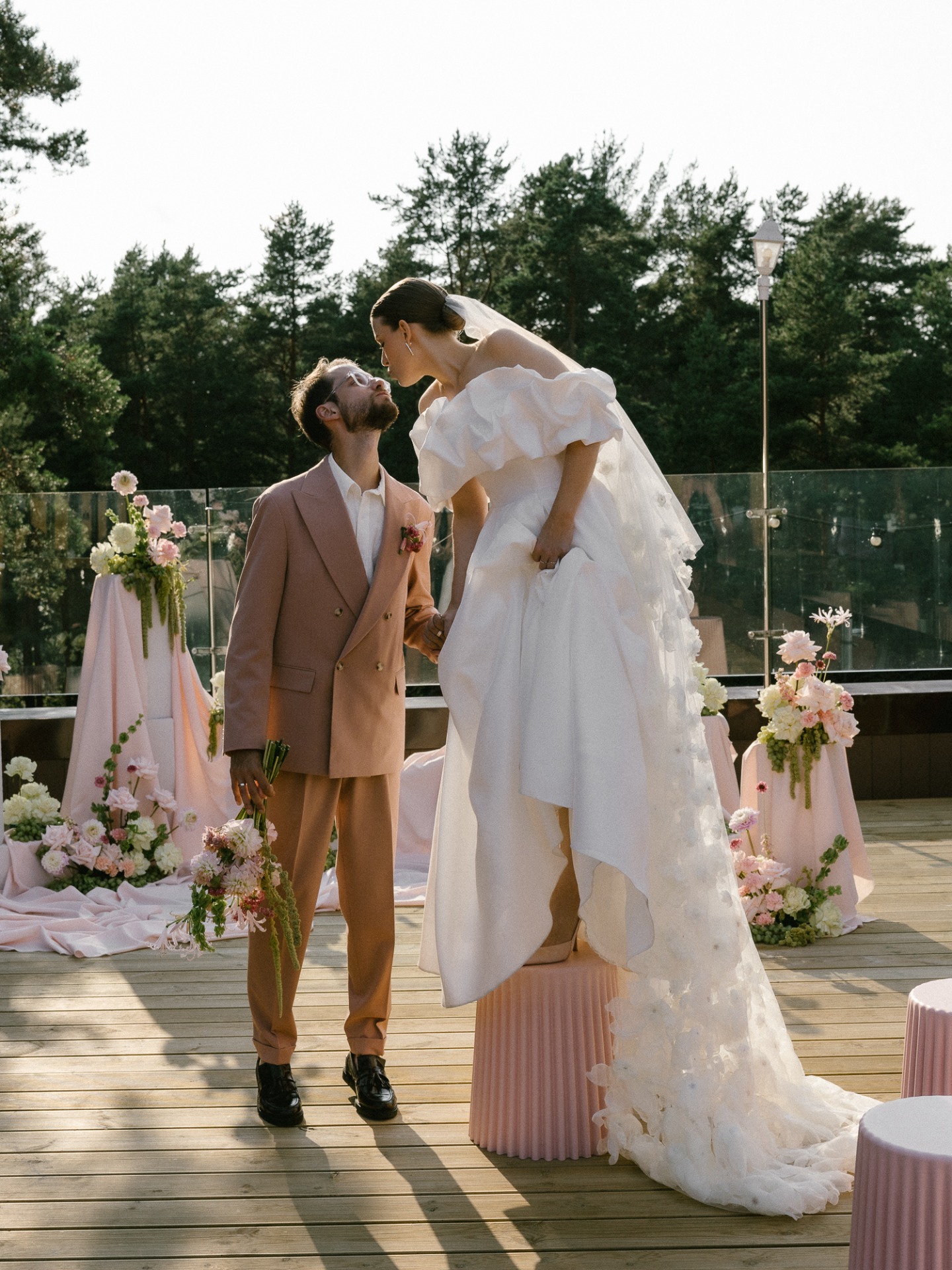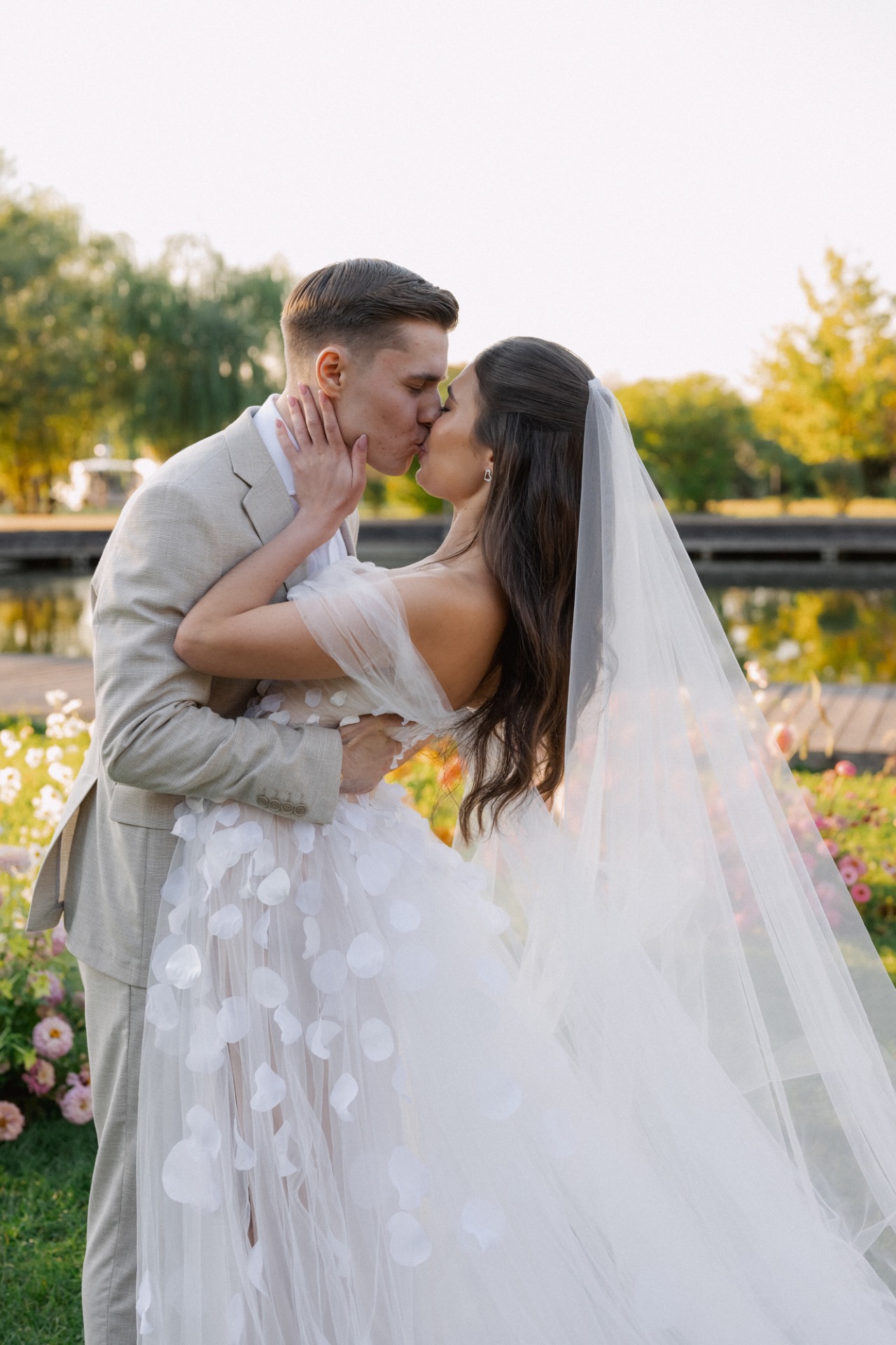 Если хочется добавить в образ «изюминку». Банты — для элегантной камерной свадьбы, цветочные аппликации — для романтичной свадьбы в усадьбе и блёстки, чтобы сиять на масштабной вечеринке.