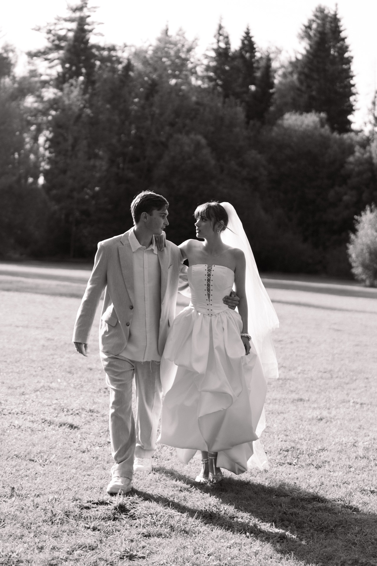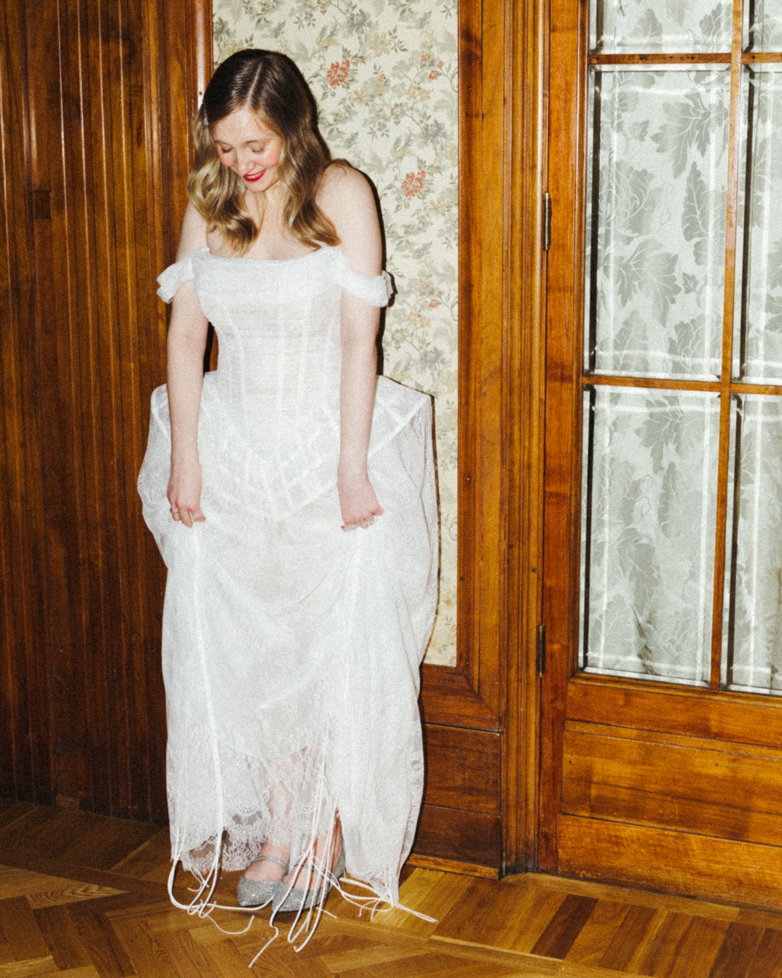 Корсет, слегка заниженная талия и пышная юбка полной или миди длины — идеальный выбор для винтажных и антибрайд концепций.