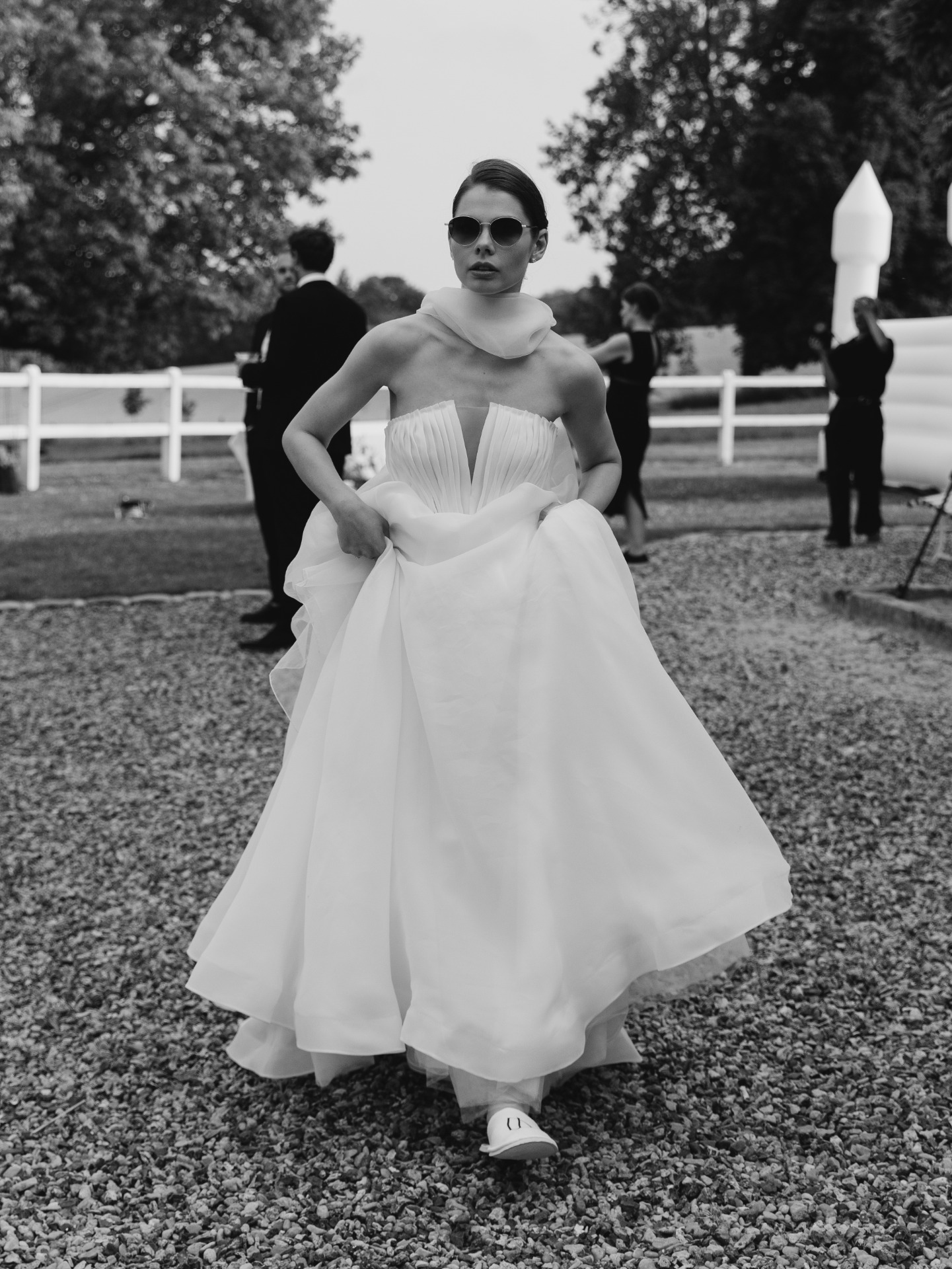 Для основного образа я остановила свой выбор на платье Anna Sposa, дополнив его шарфом и балетками Prada. Сначала я искала более пышную модель, но в итоге выбрала лёгкий летний вариант, в котором чувствовала себя свободно.