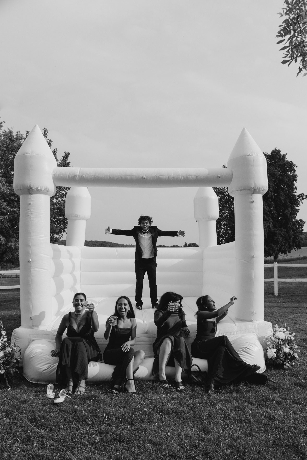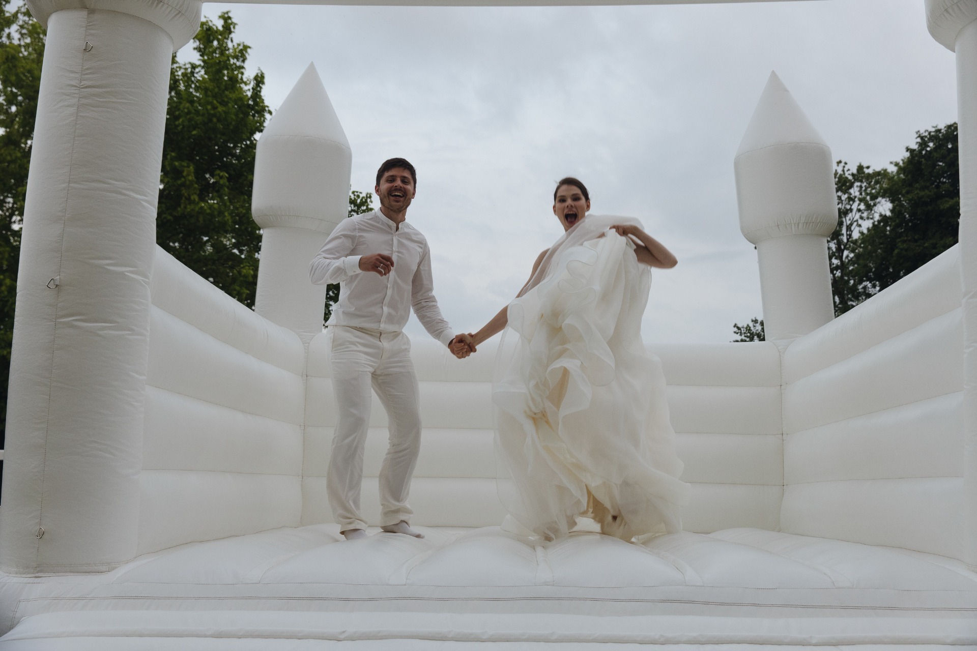 А кульминацией нашего вечера, несомненно, стал батут. Сначала все гости удивились наличию этого элемента в нашем декоре, но после пары бокалов шампанского даже старшее поколение гостей прыгало и смеялось, как в детстве.