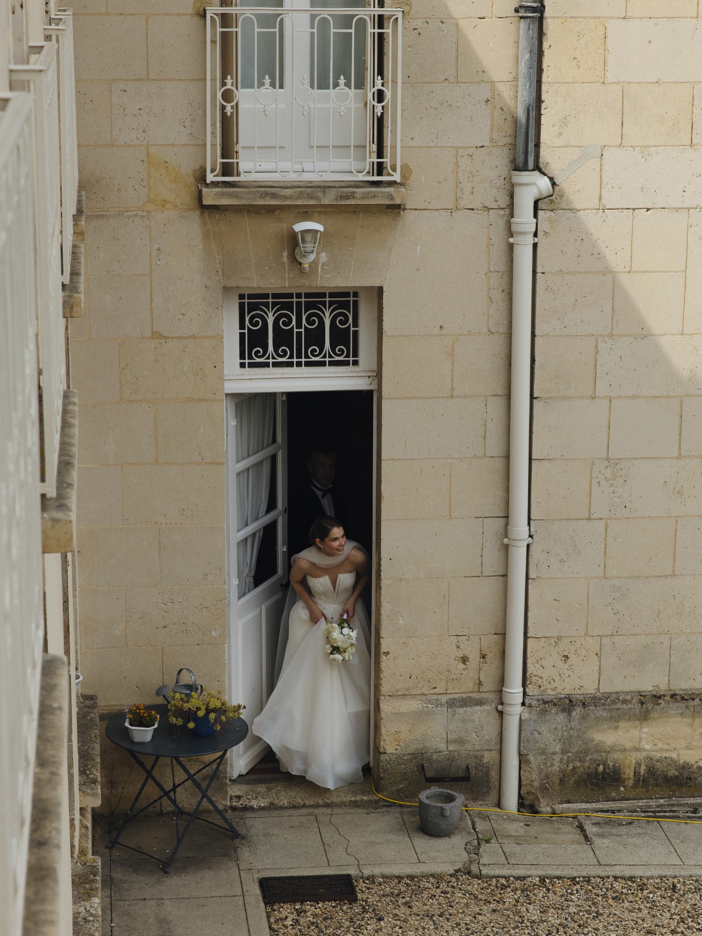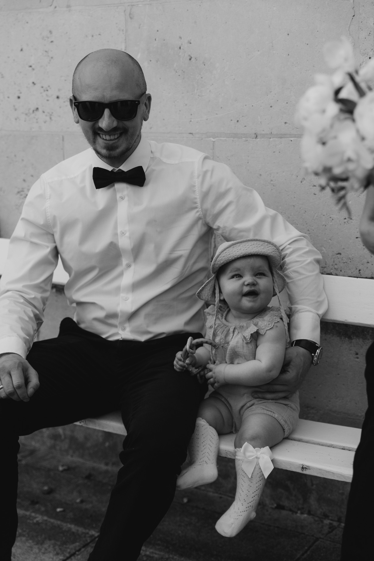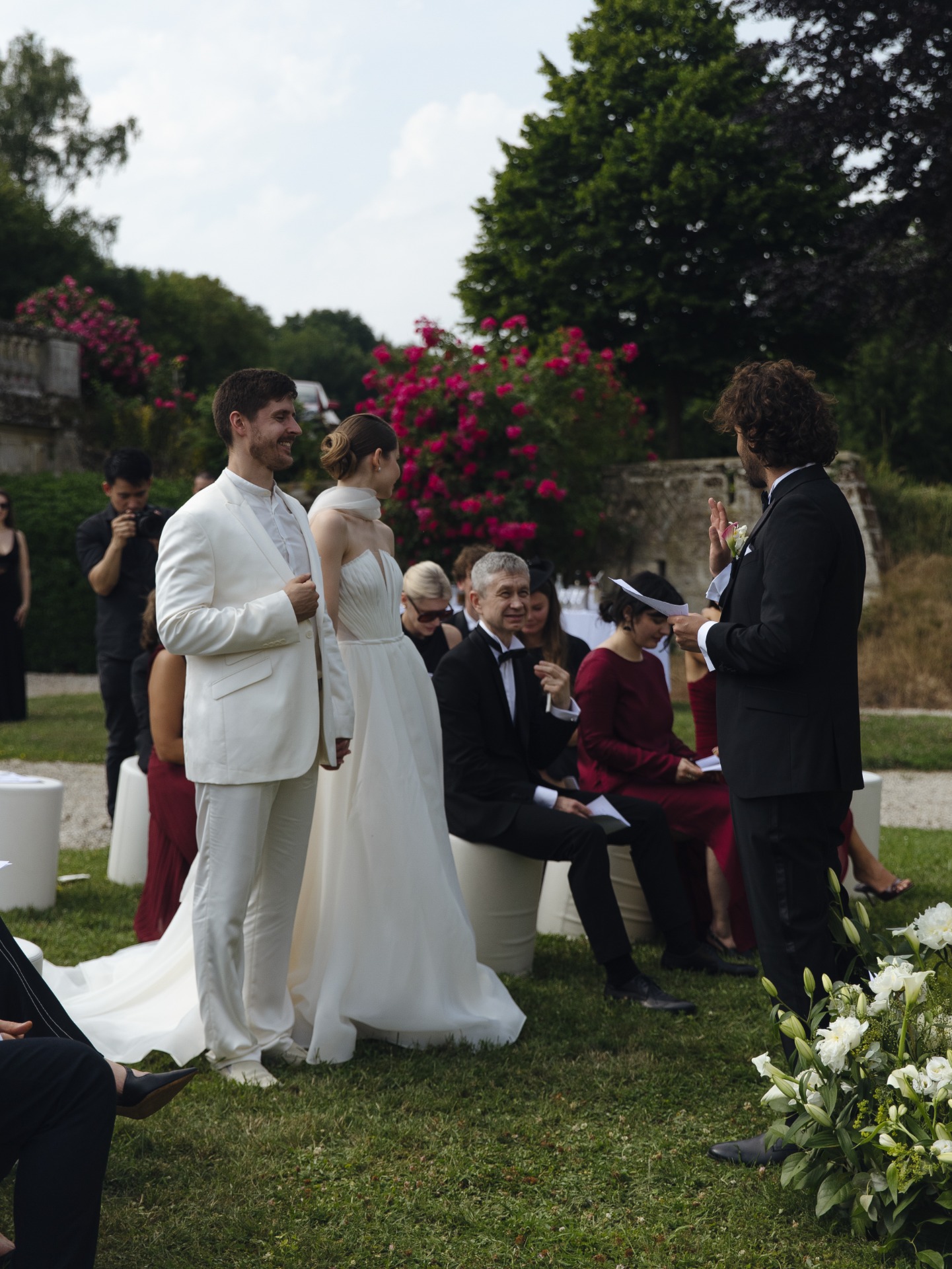 Мы организовали уютную церемонию на лужайке перед замком. Я начала клятву словами: «Почему я не любила физику в школе?», а кольца вынес мой младший брат в образе телохранителя с наушником. Мы хотели дать ему особенную роль на нашем празднике, ведь мы живём на расстоянии 4000 км друг от друга и видимся очень редко.