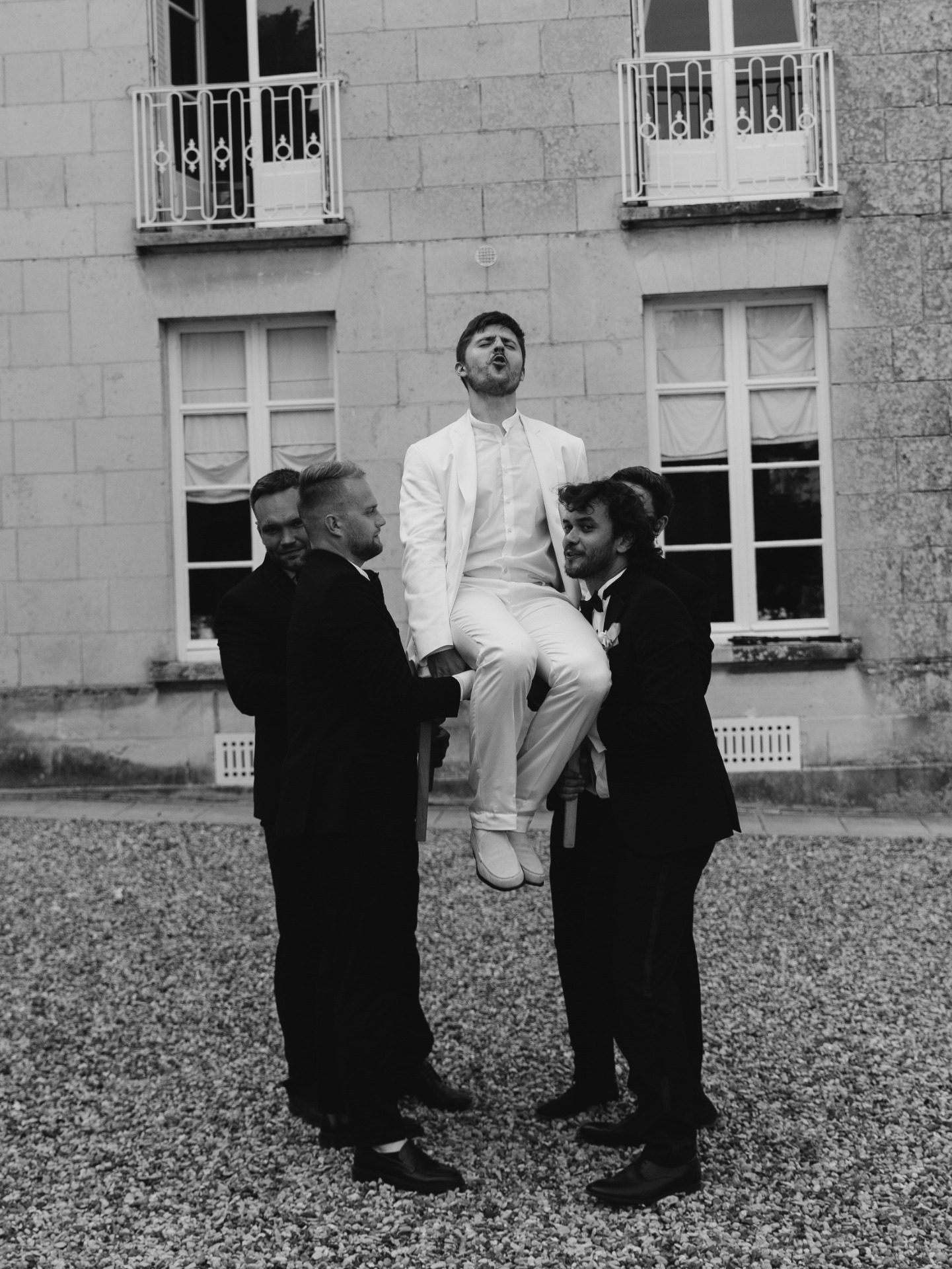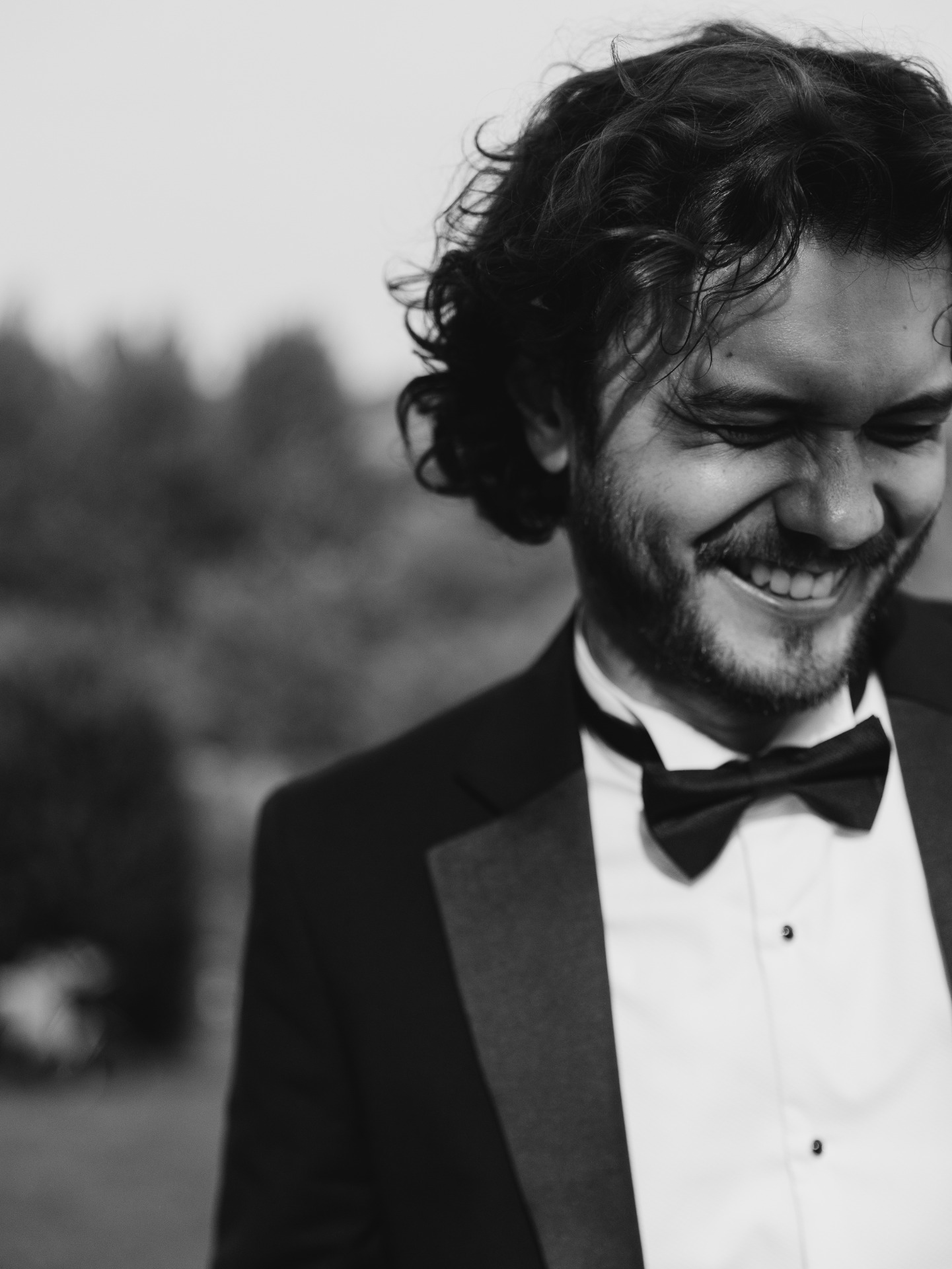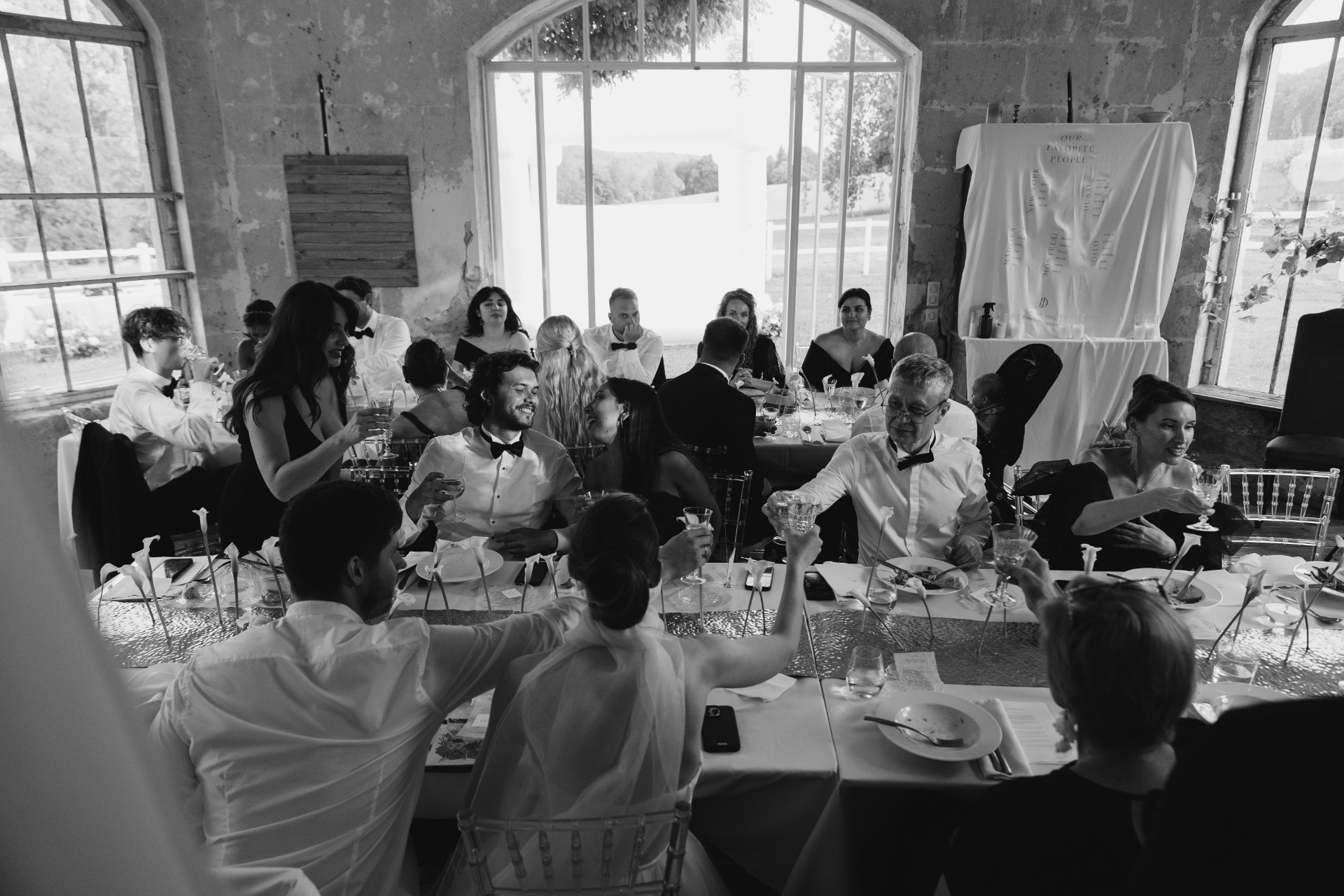 Мы организовали уютную церемонию на лужайке перед замком. Я начала клятву словами: «Почему я не любила физику в школе?», а кольца вынес мой младший брат в образе телохранителя с наушником. Мы хотели дать ему особенную роль на нашем празднике, ведь мы живём на расстоянии 4000 км друг от друга и видимся очень редко.