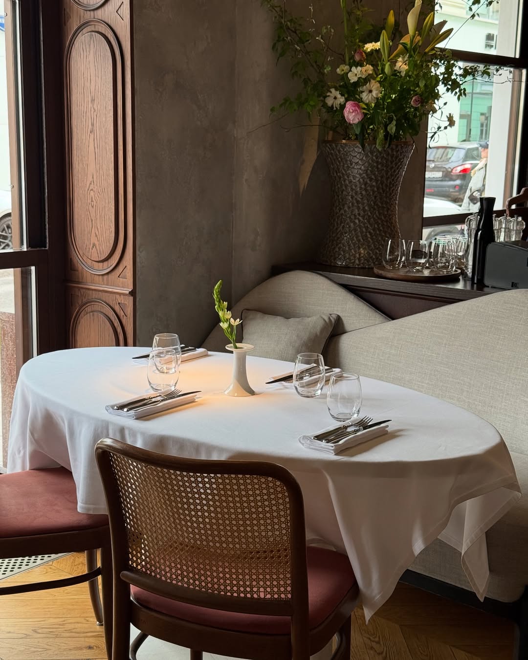 Идеальное место, если хочется окунуться в атмосферу Франции и сделать очень эстетичные фото с французским интерьером и мозаикой, выложенной прямо посреди ресторана.