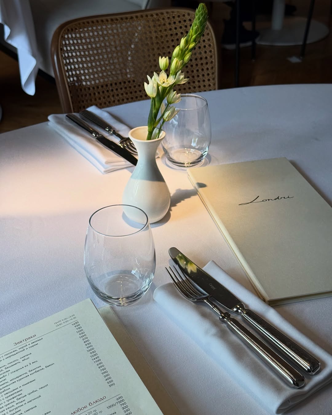 В меню — классические блюда русско-французской кухни. Очень рекомендуем попробовать запечённый лук с пармезаном, ризотто с трюфелем и наполеон с карамельным соусом.