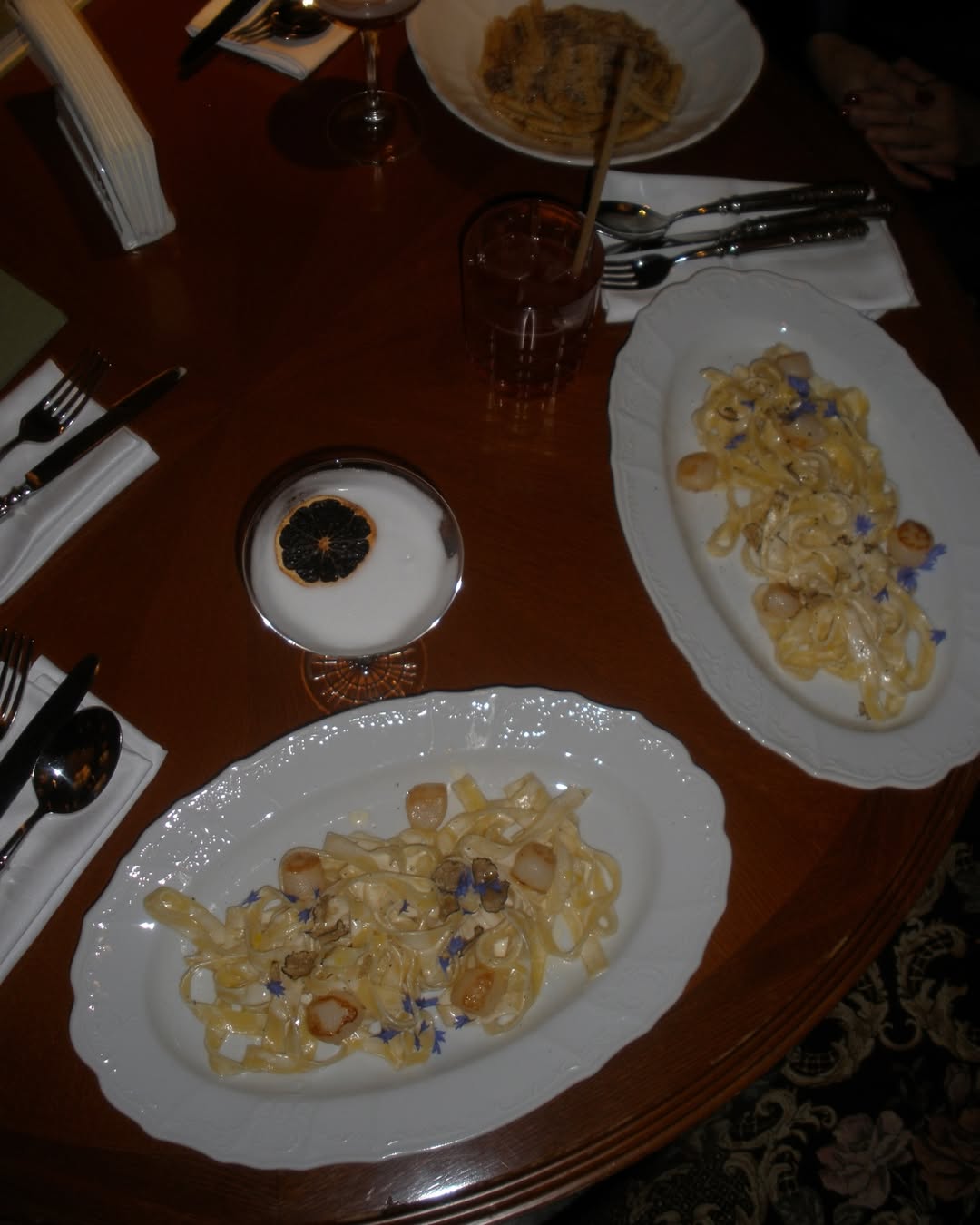 Помимо пасты очень советуем попробовать тартар со сливочным соусом, классический сан-себастьян и фирменные коктейли, они являются гордостью этого места.